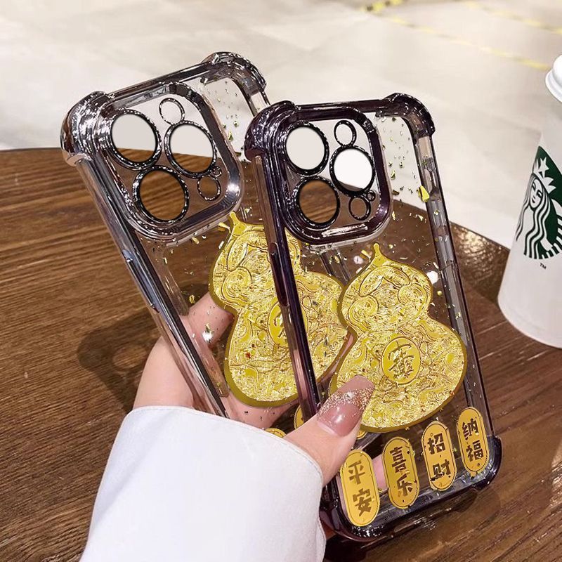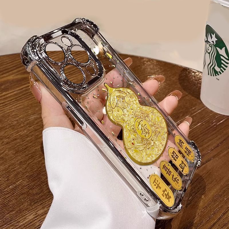 金色葫芦适用苹果16/15/14Promax手机壳13/12电镀x/xs爆款8/7防