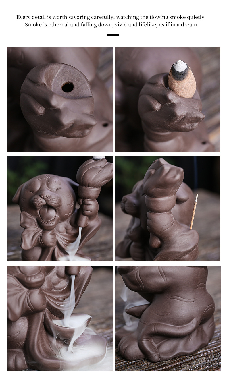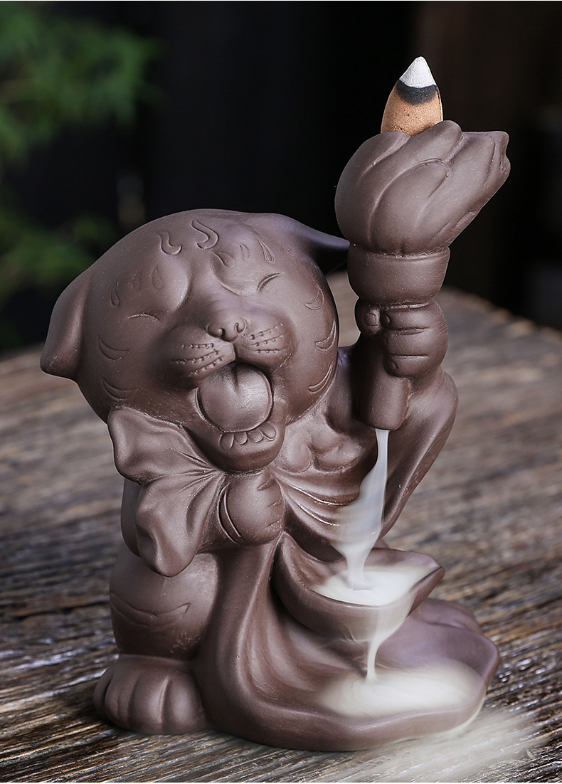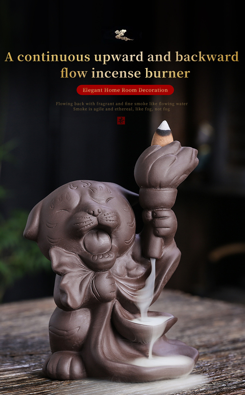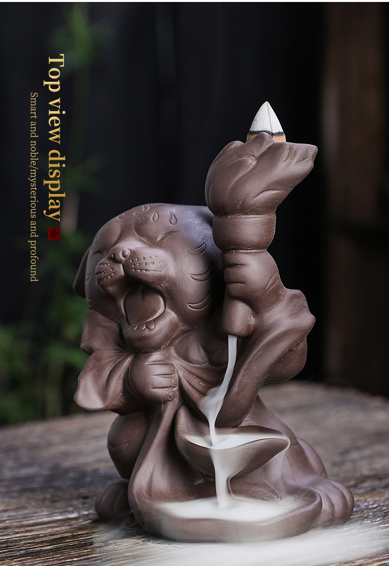 跨境紫砂家用桌面摆件倒流香炉创意老虎回流瀑布香薰炉工艺品摆件