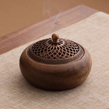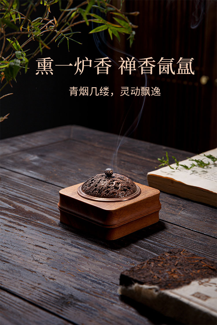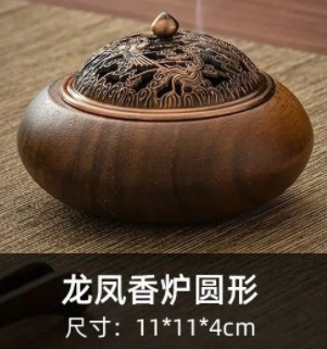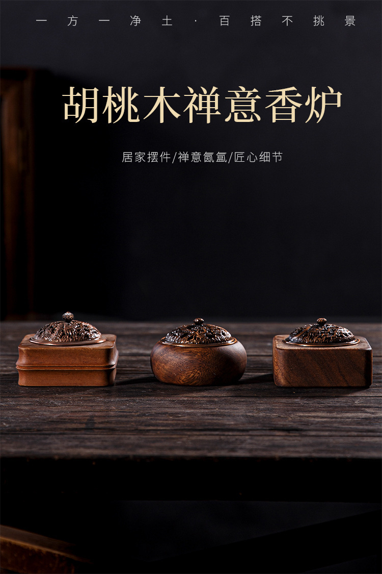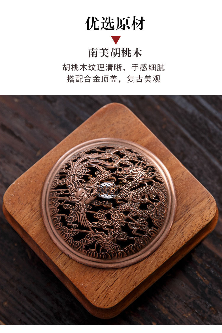 胡桃木香炉实木圆形线香器家用室内檀香沉香熏炉方形香炉茶室摆件
