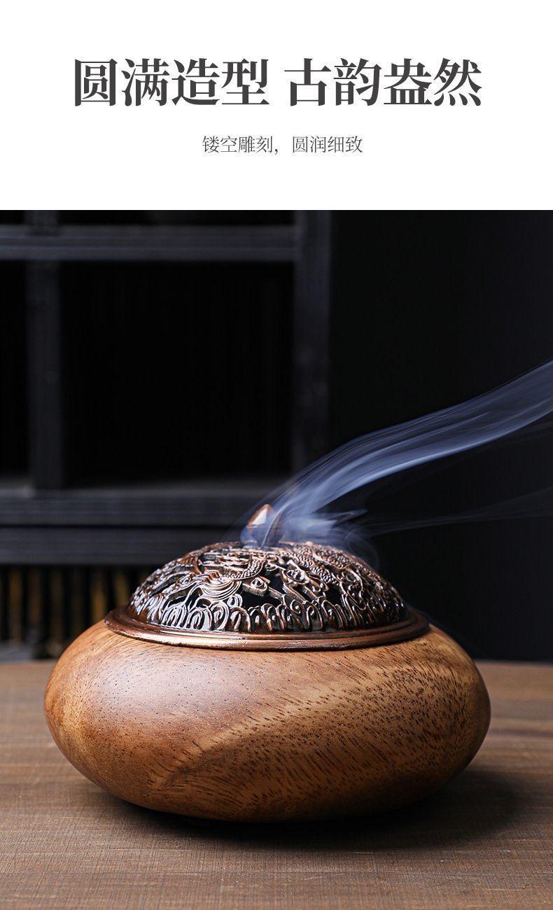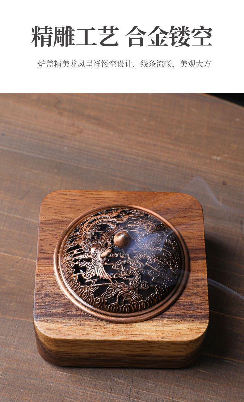 胡桃木香炉家用禅意熏香炉茶室摆件轻奢简约四方形香炉茶具配件