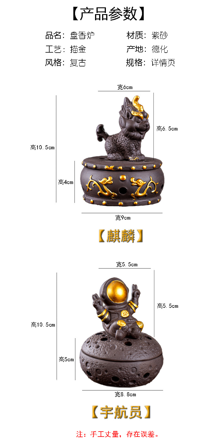 麒麟盘香炉紫砂创意香薰炉家用室内香道沉香檀香炉文创宇航员摆件