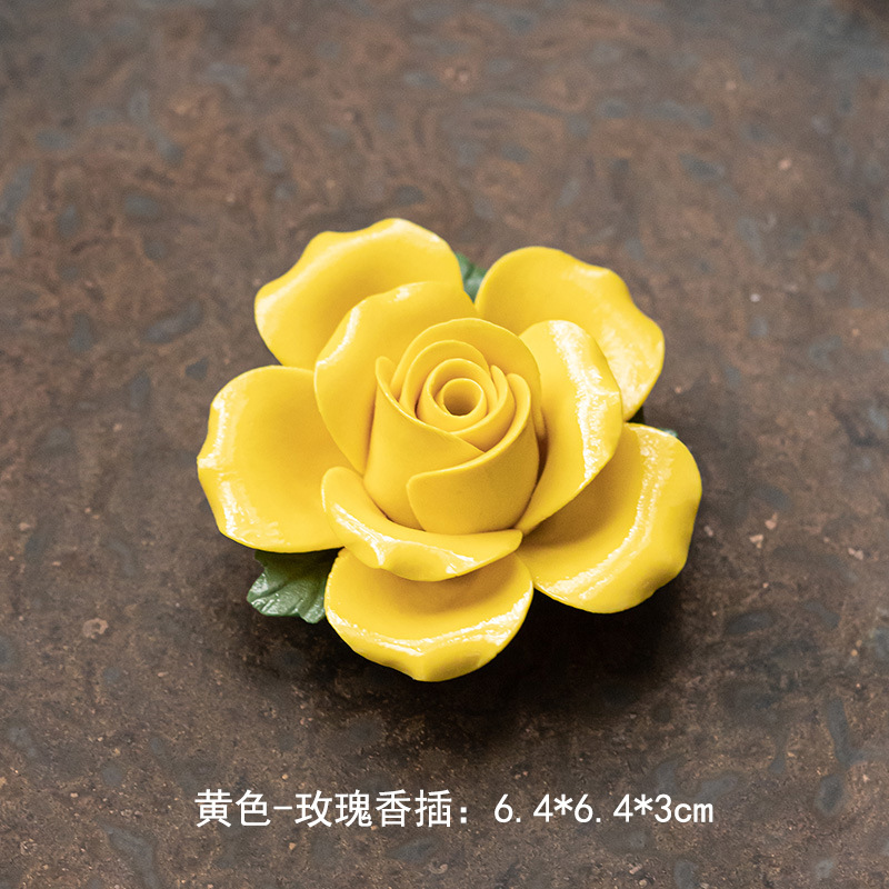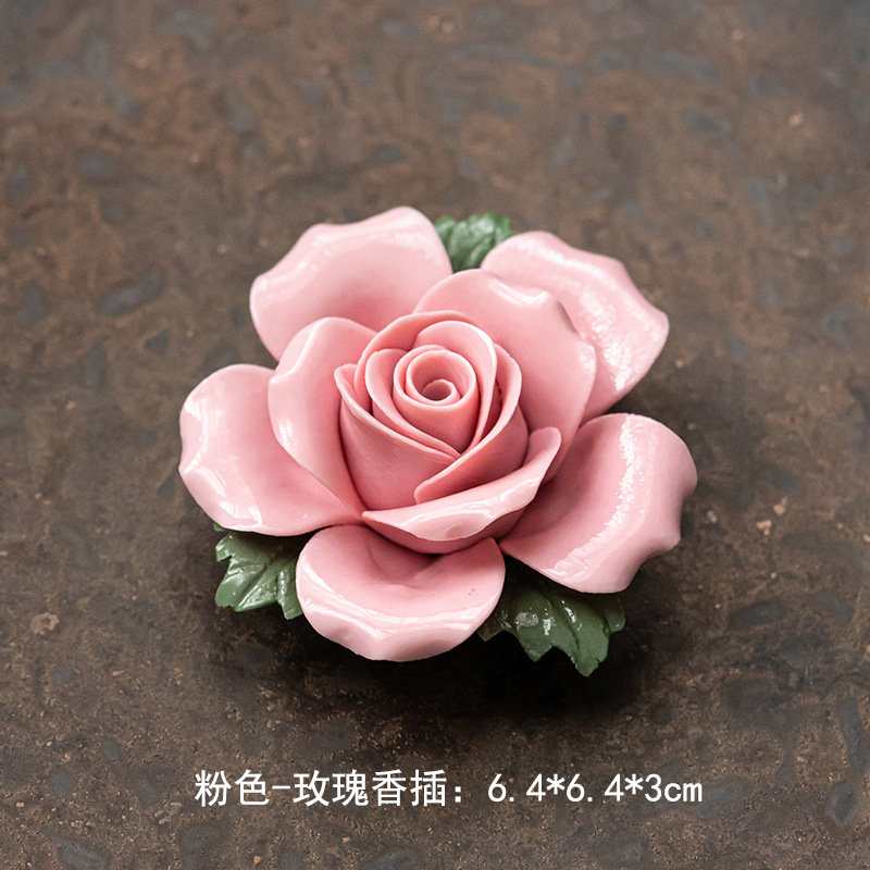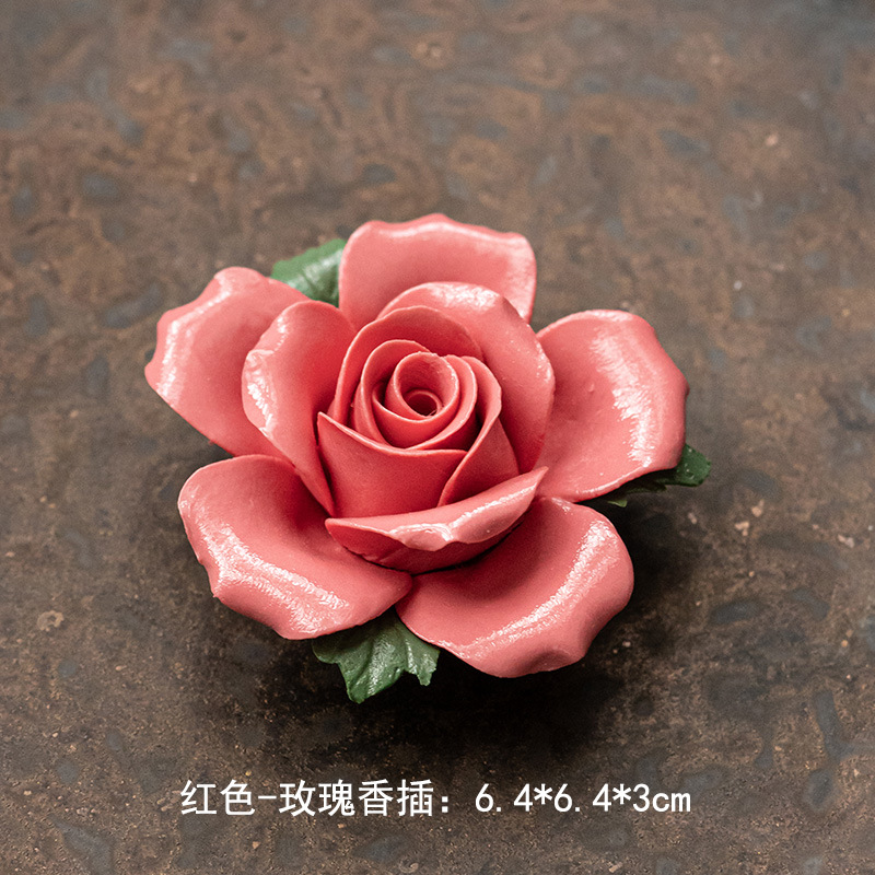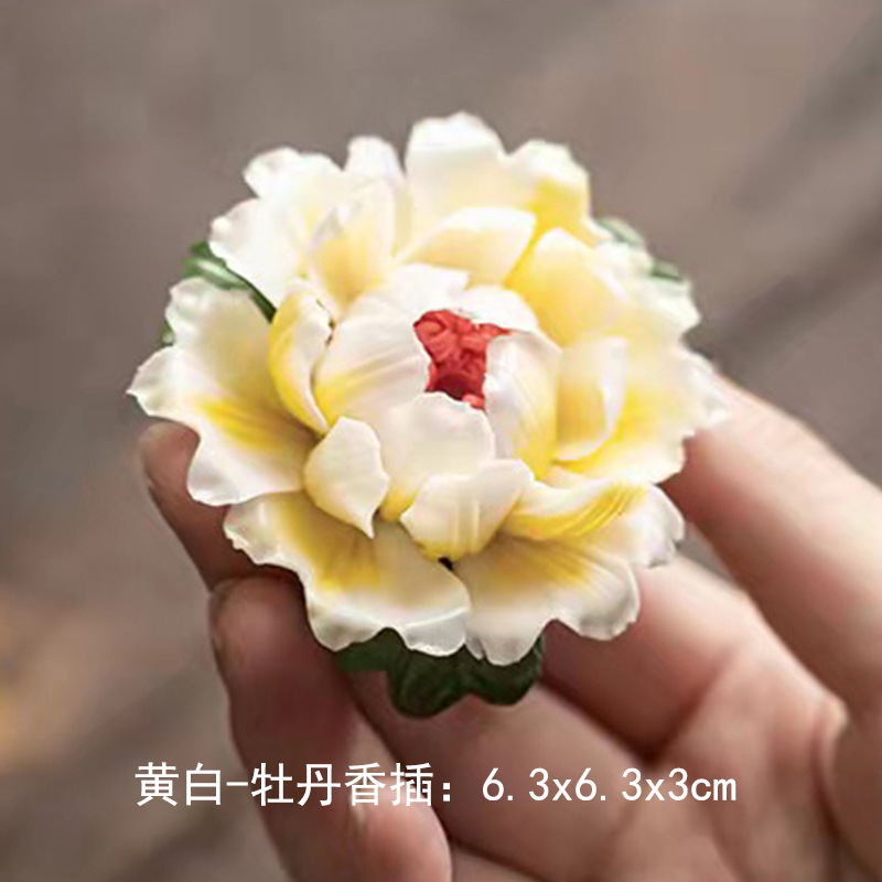 手捏陶瓷牡丹香插摆件 陶瓷牡丹花线香插 牡丹花玫瑰香插工艺品