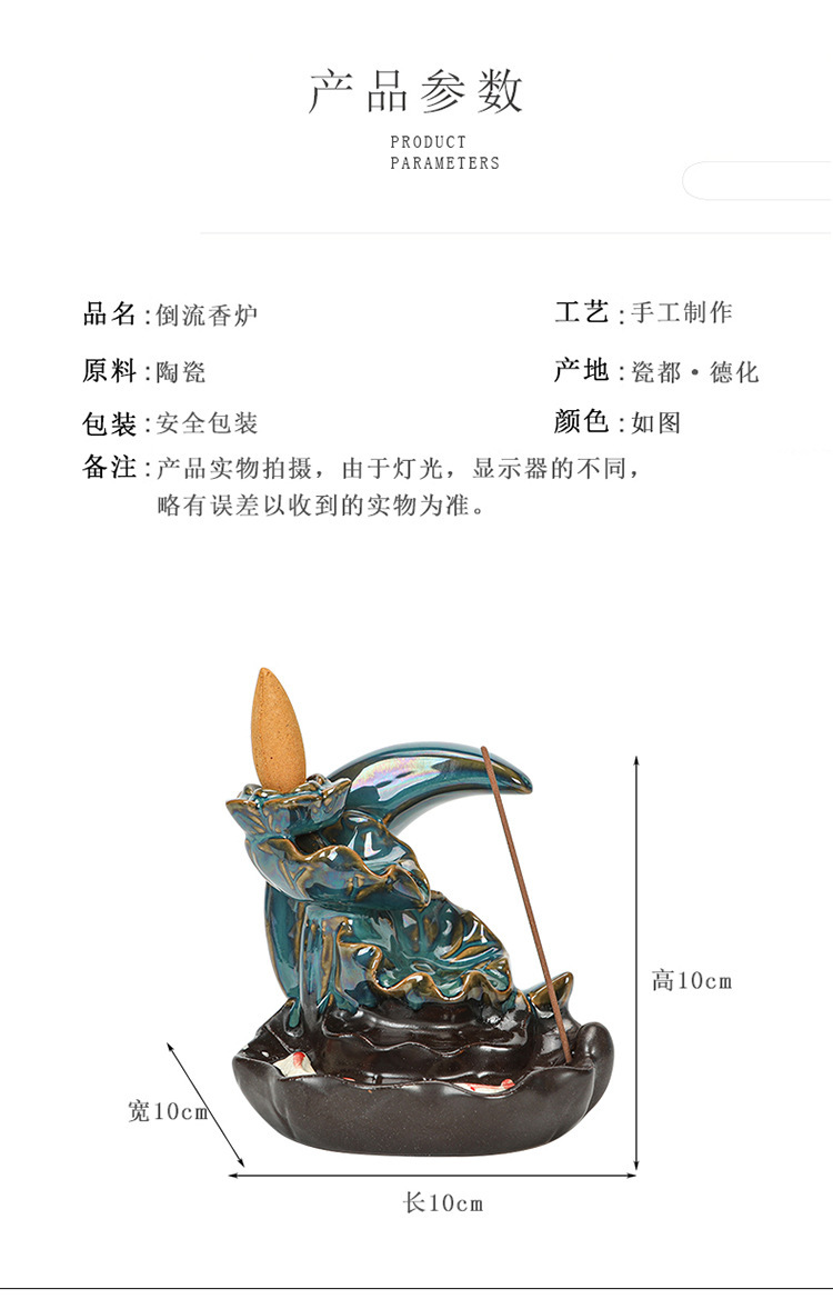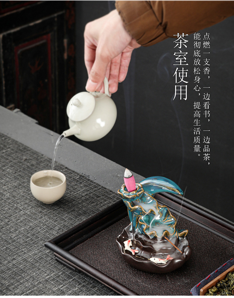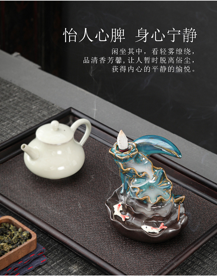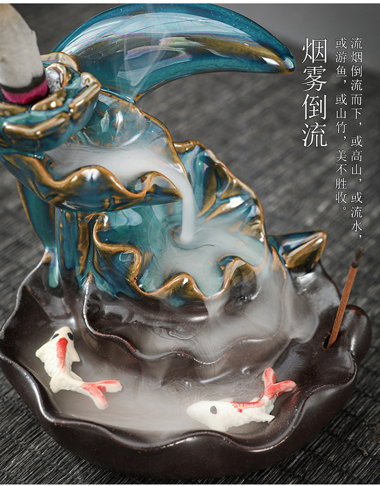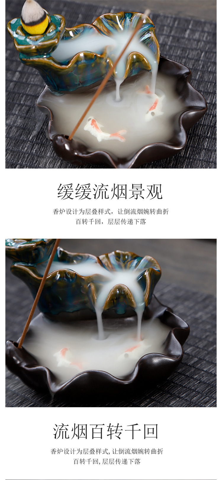 新款倒流香炉创意家居摆件陶瓷炉工艺品双鱼回流窑变观赏跨境专供