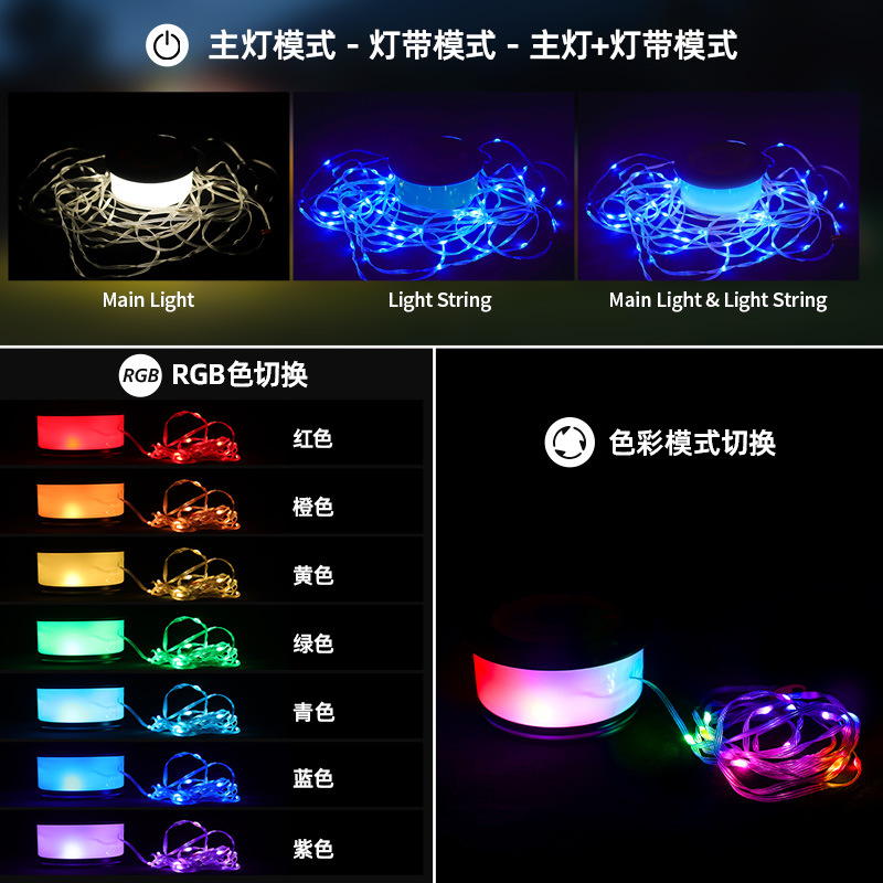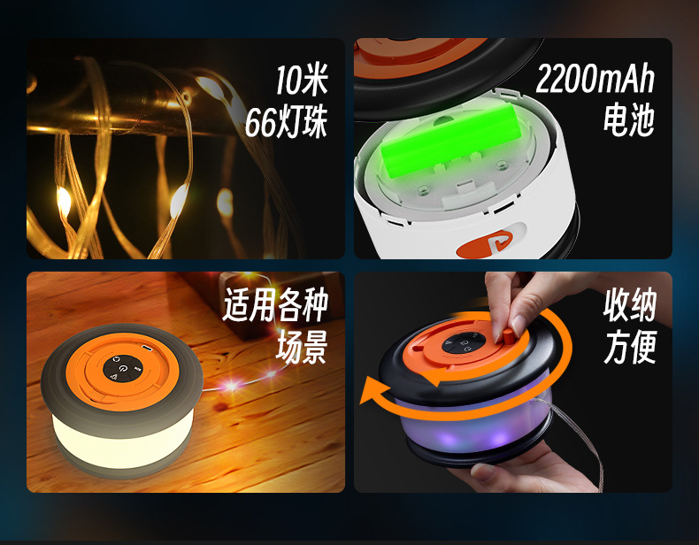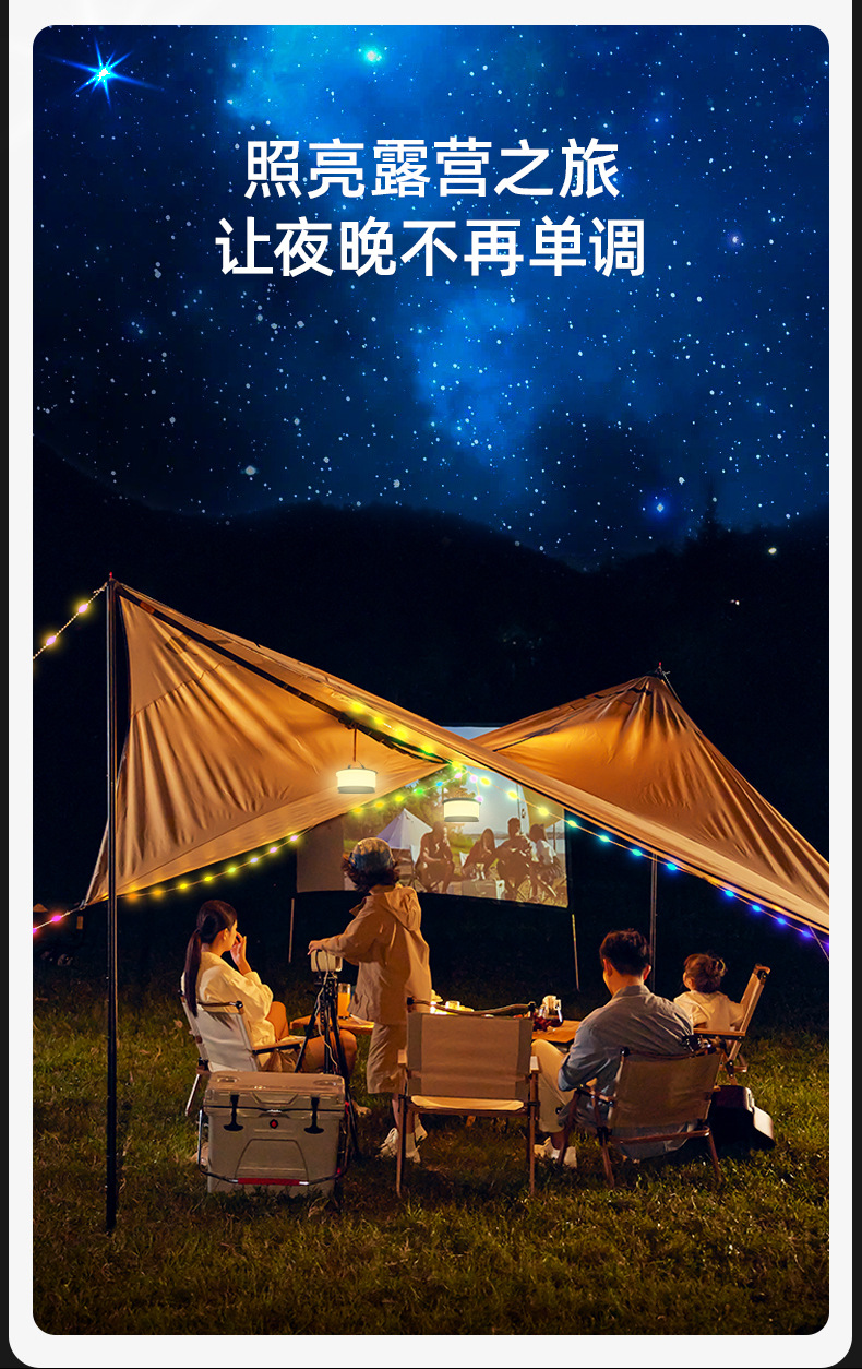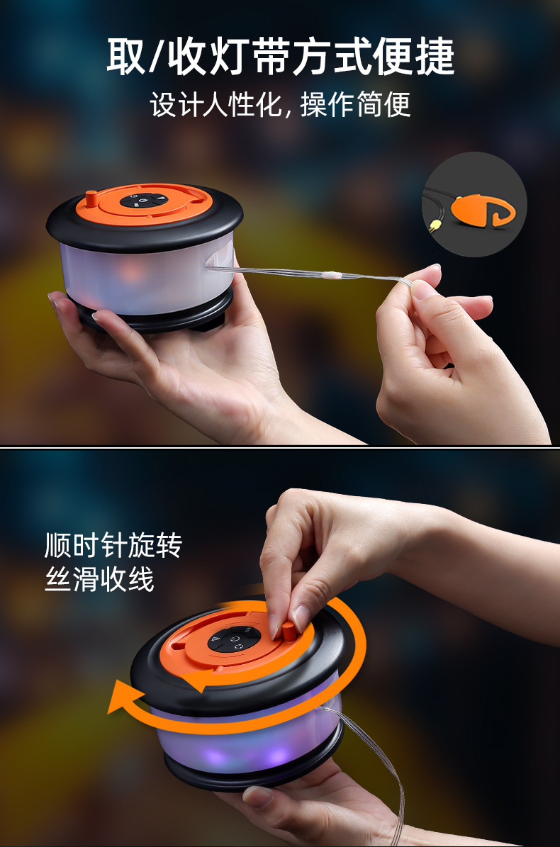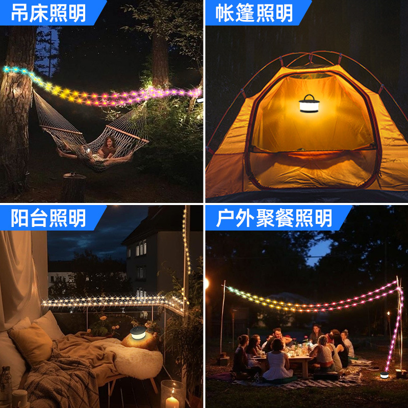新款RGB皮线灯露营灯串户外LED装饰灯长续航便捷收纳卷尺灯节日