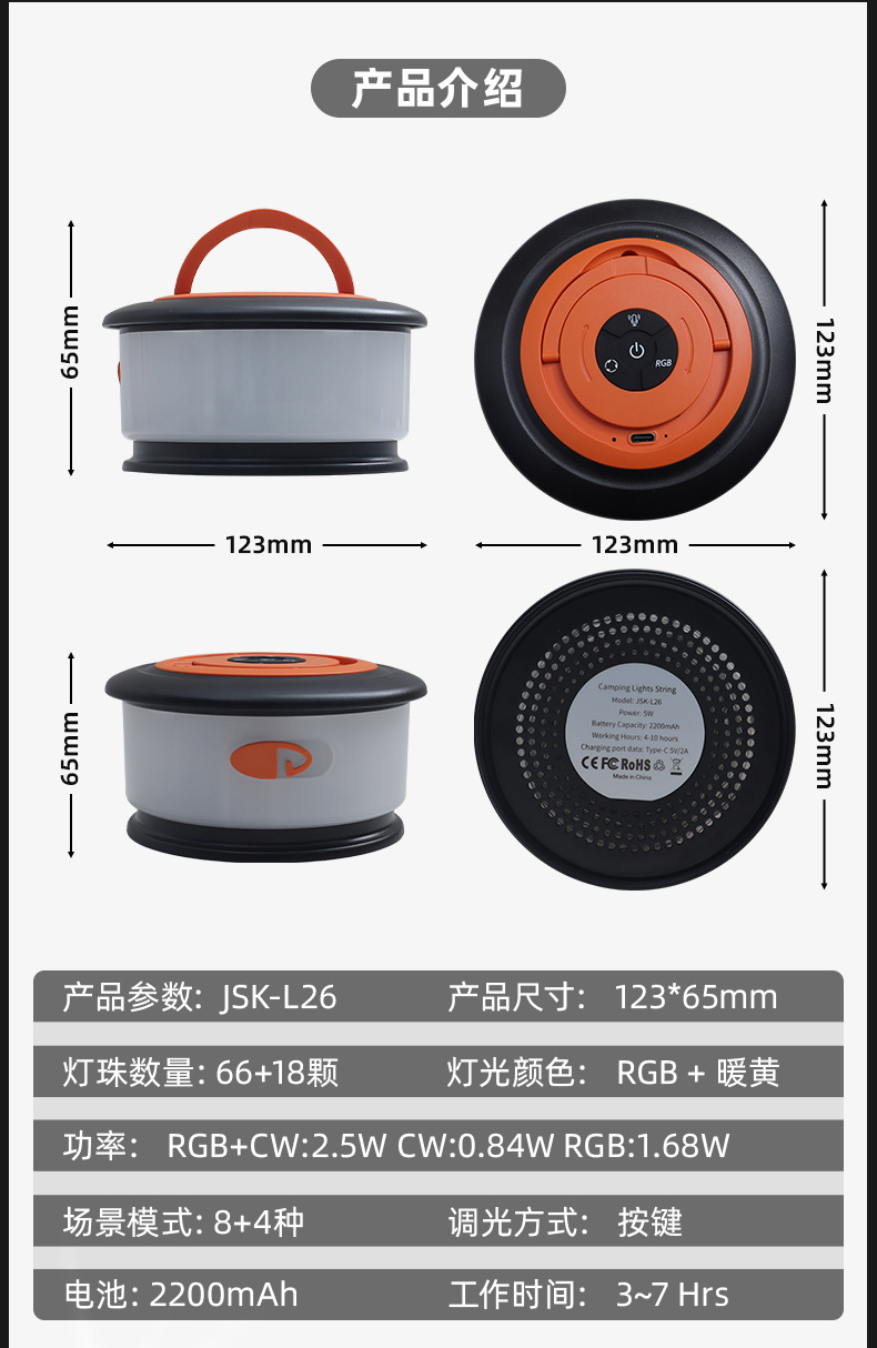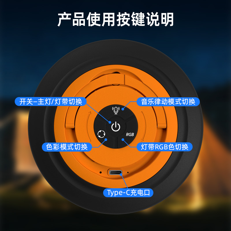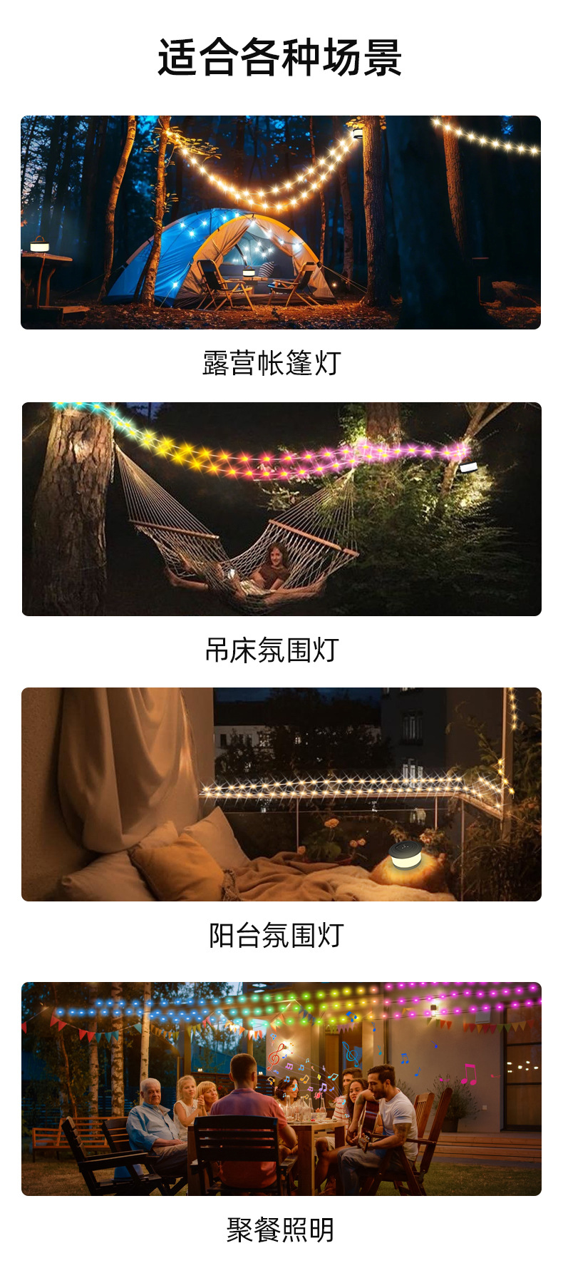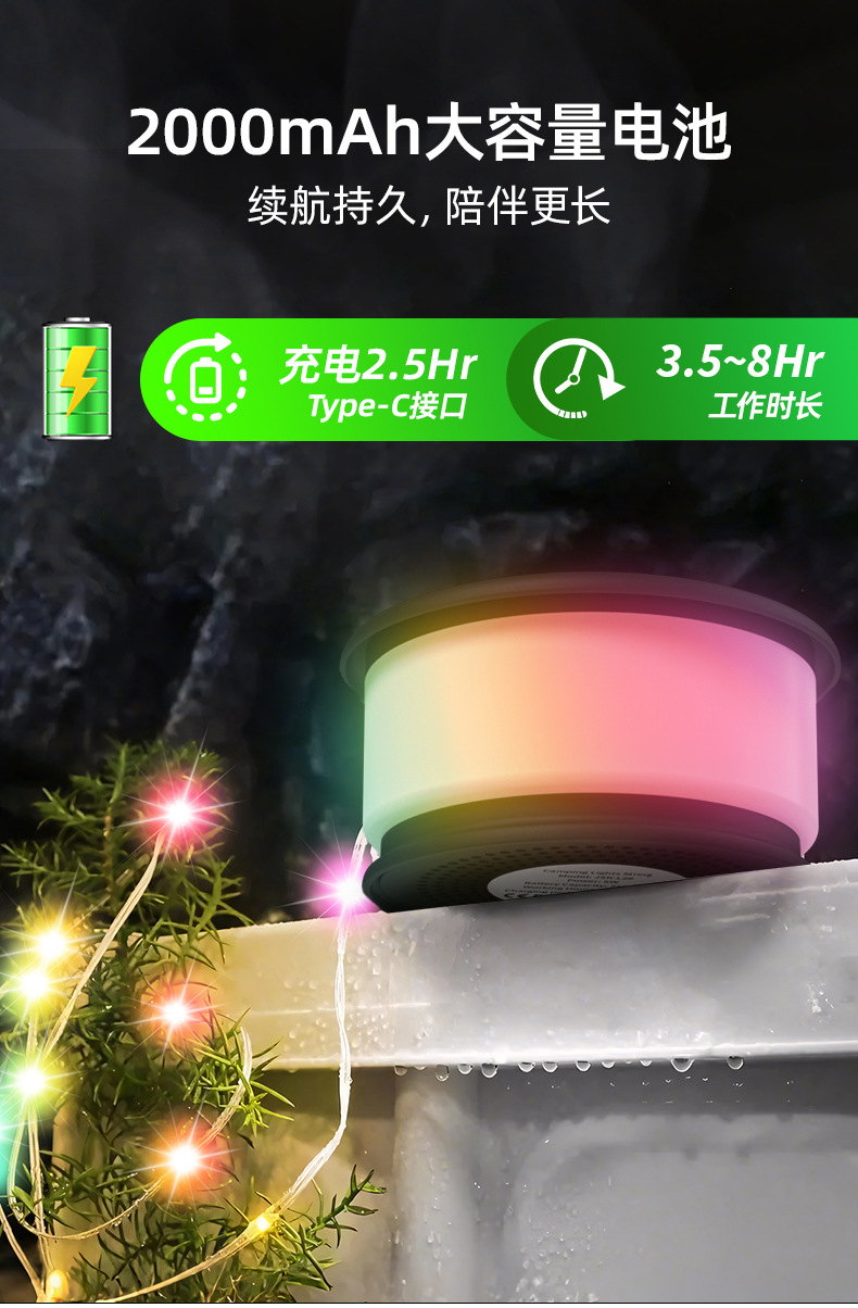 新款RGB皮线灯露营灯串户外LED装饰灯长续航便捷收纳卷尺灯节日