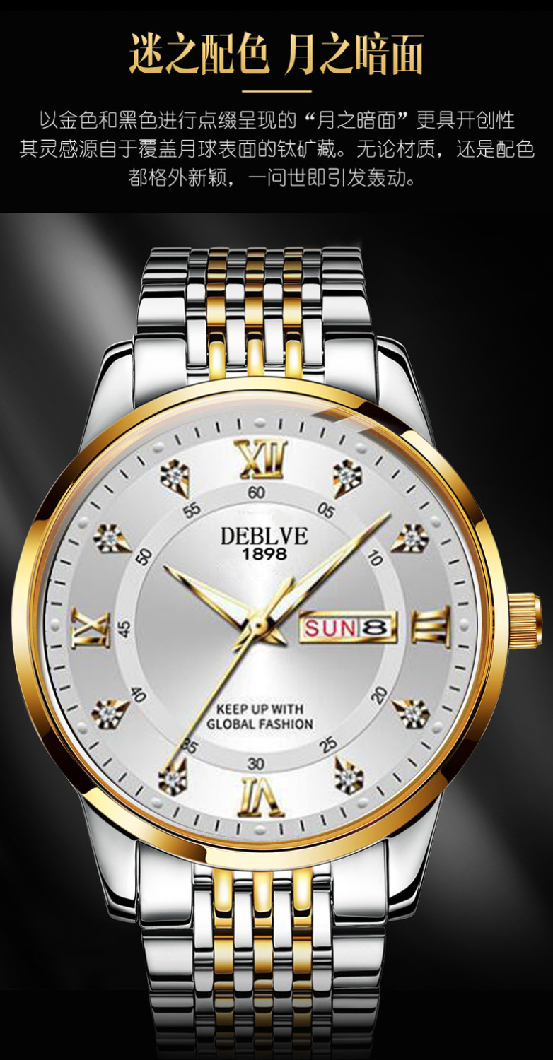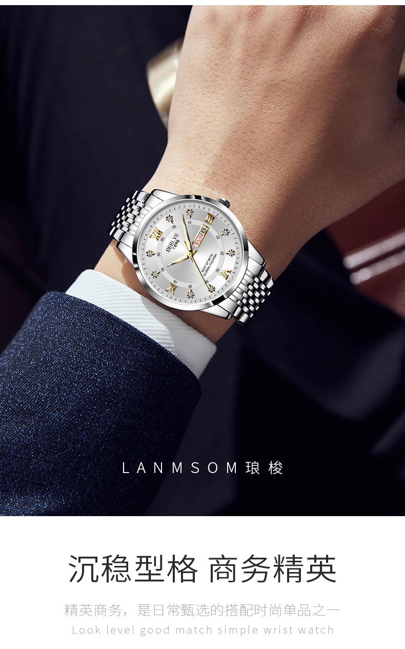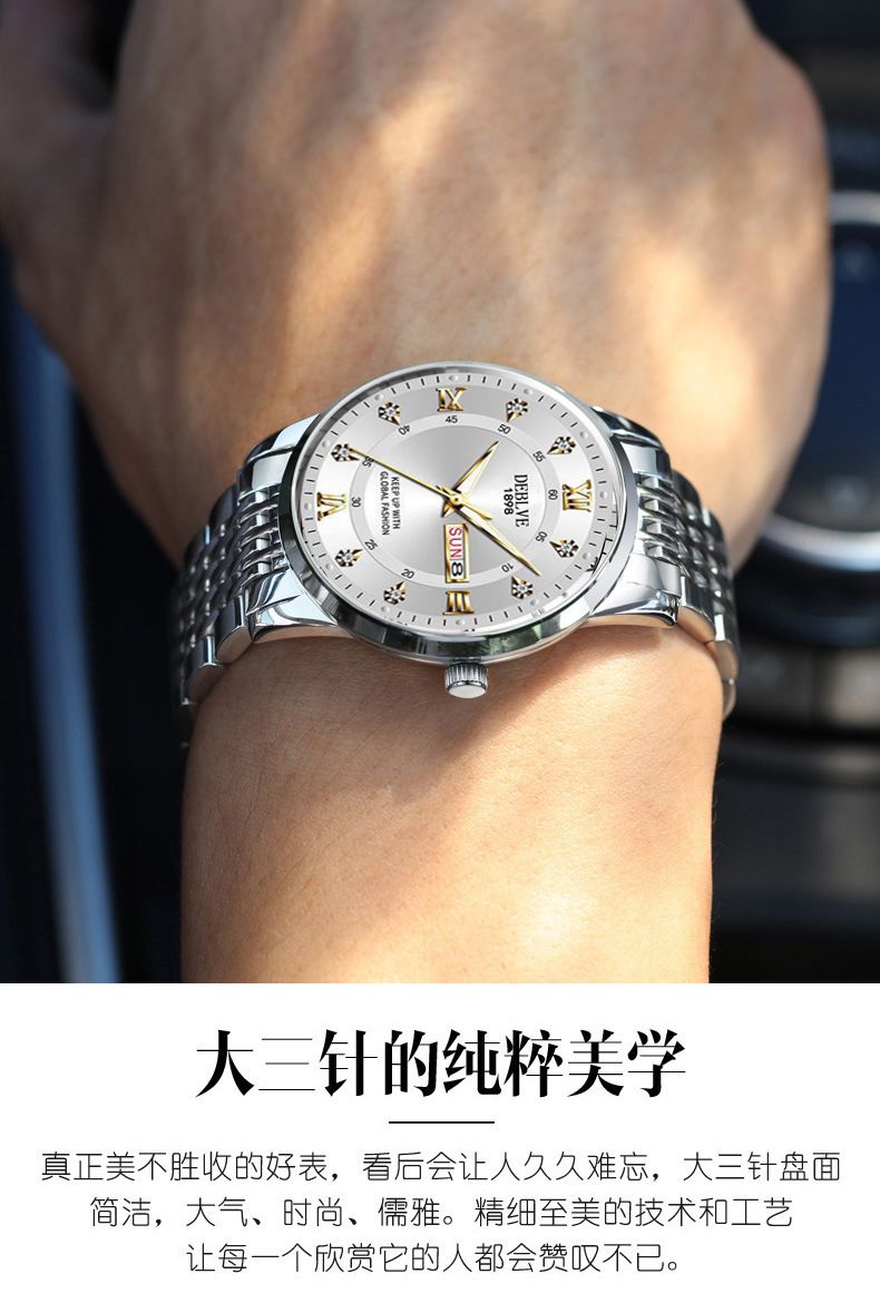 正品瑞士金表全自动石英表大气商务防水夜光日历腕表男士手表
