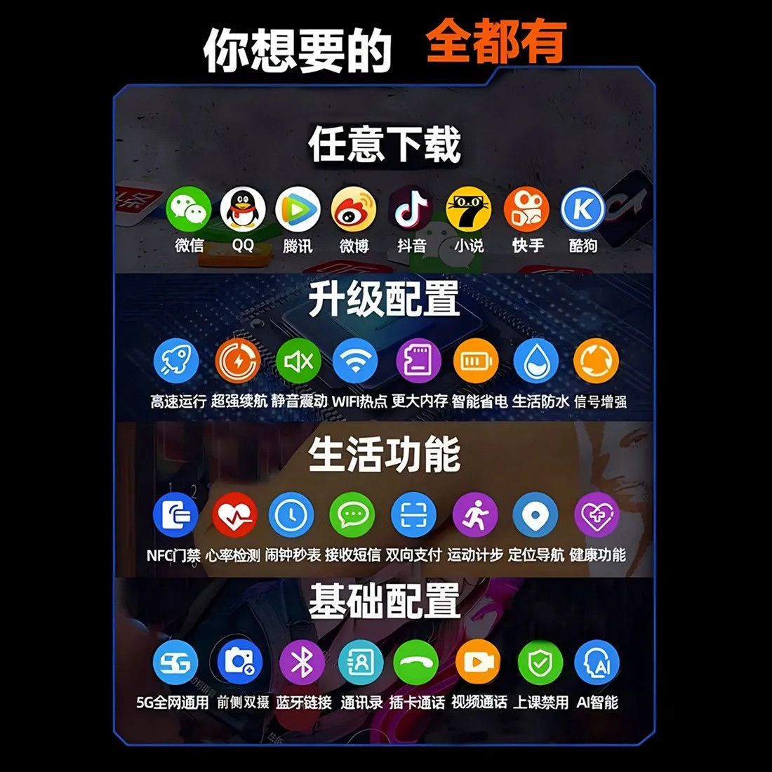 5G全网通智能电话手表儿童中小学生可插卡多功能初高中生软件下载