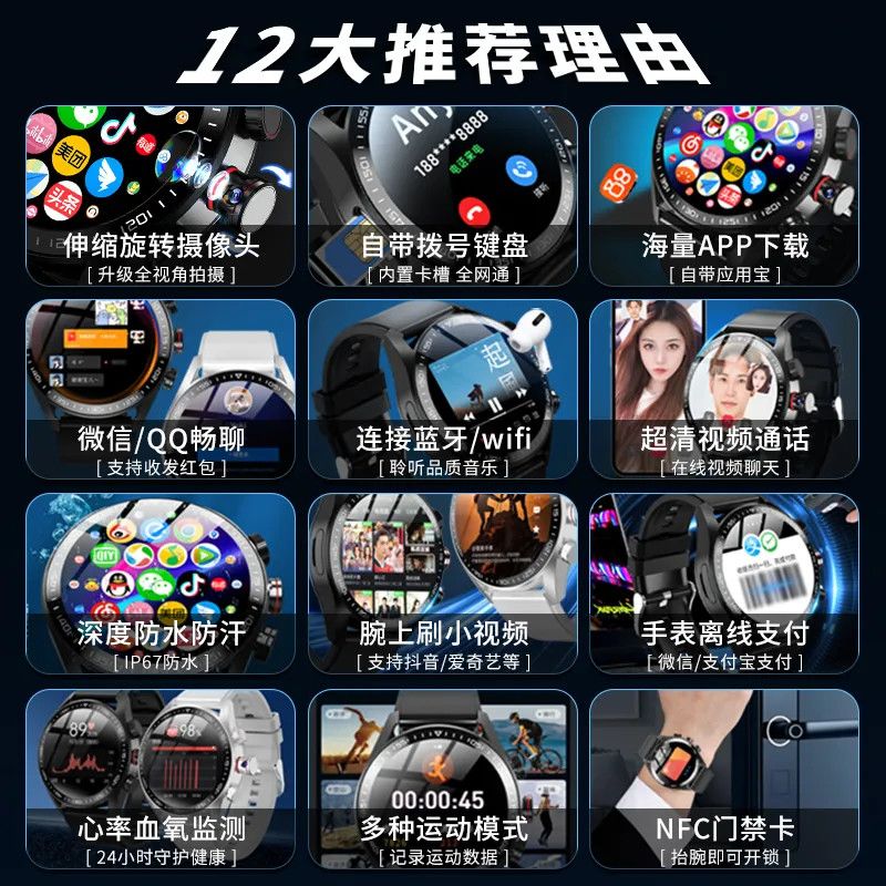 【双系统】华强北WATCH GT5插卡蜂窝版智能手表多功能WIF下载成人