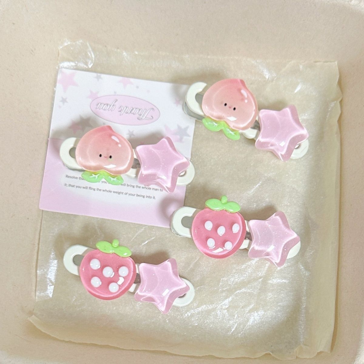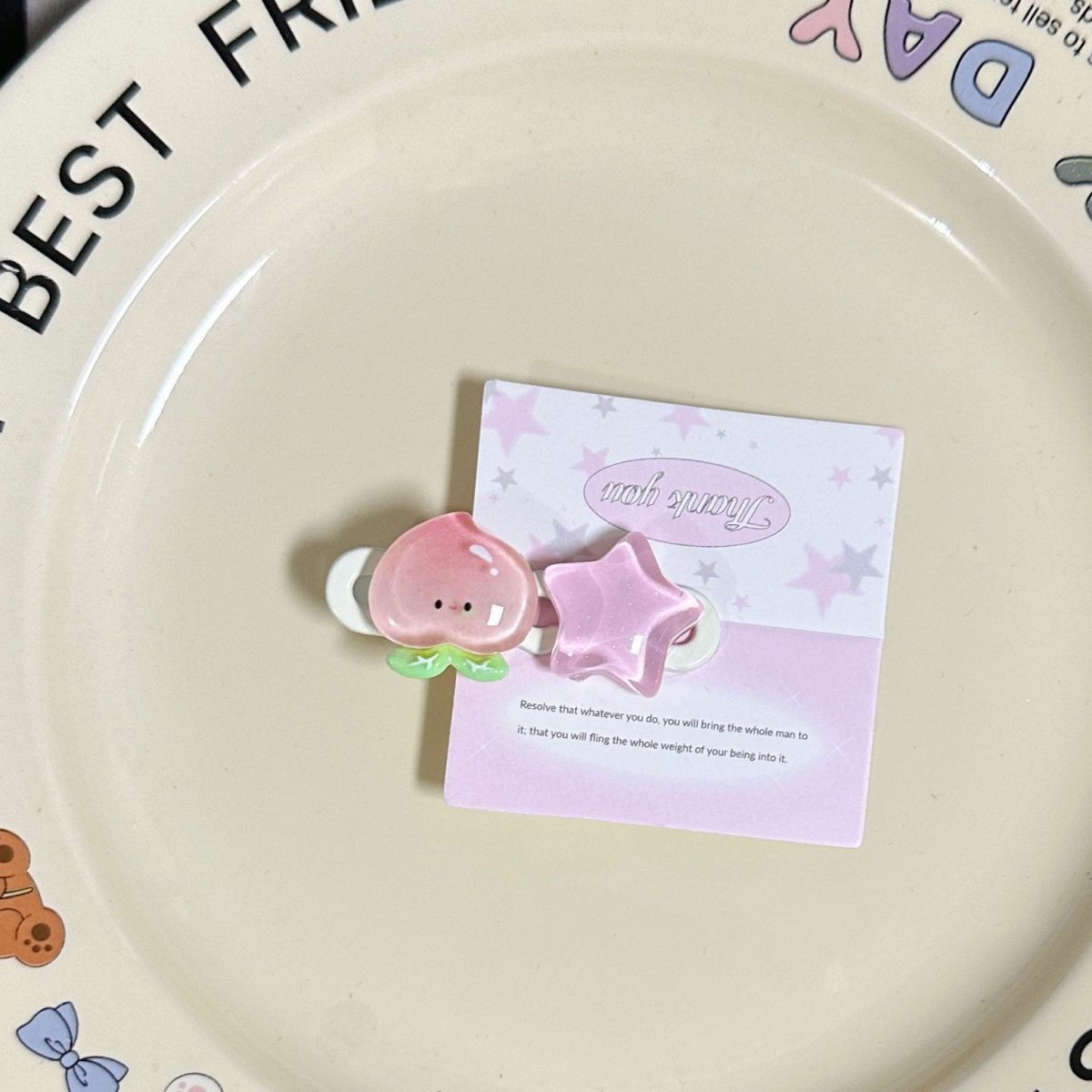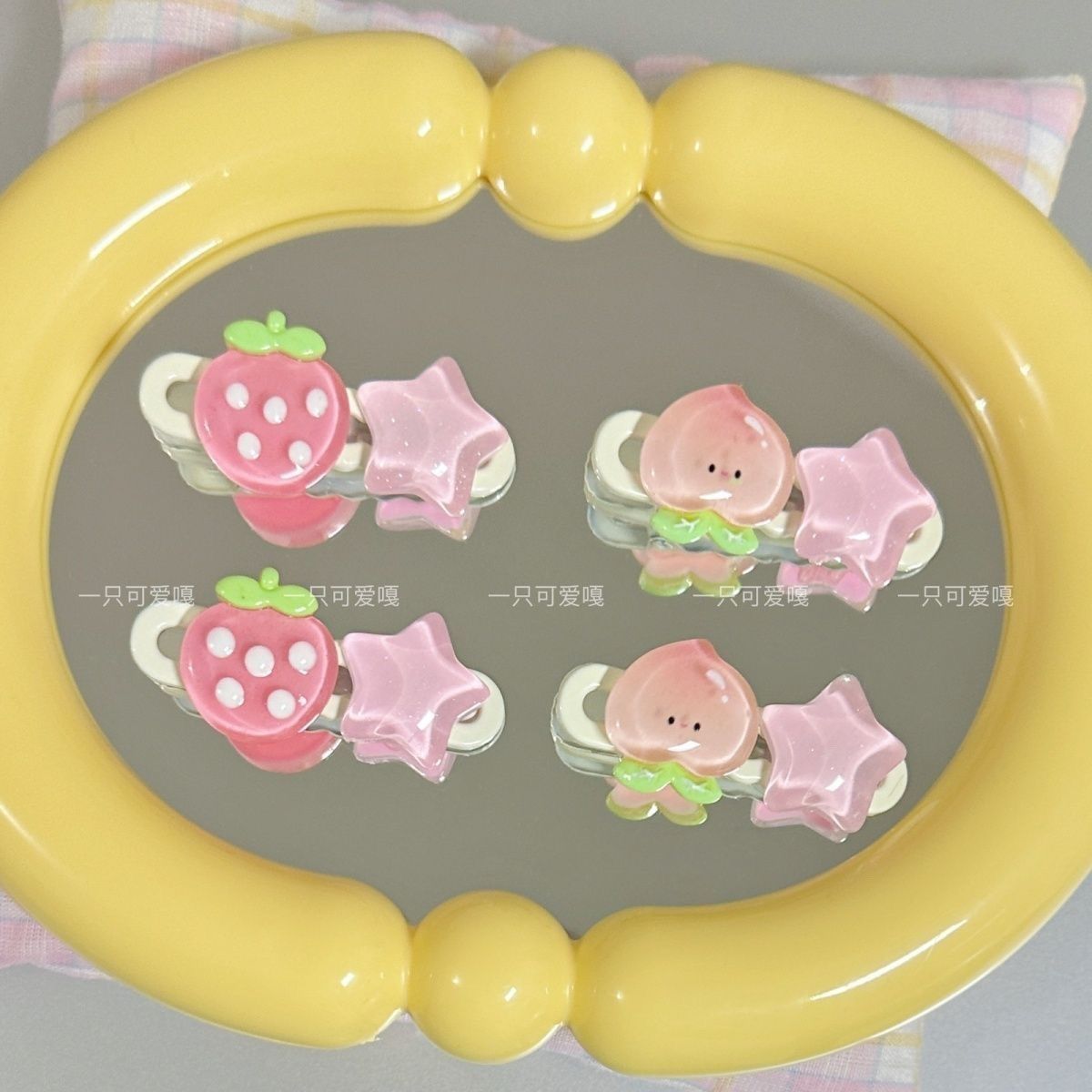 屁桃草莓星星发夹 可爱透明少女心甜美卡通鸭嘴夹刘海边夹头饰女