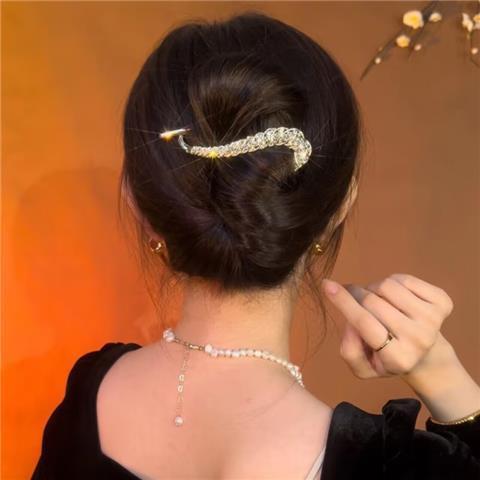 高级感闪闪锆石发夹女后脑勺盘发一字夹发卡气质扭扭夹子头饰发饰
