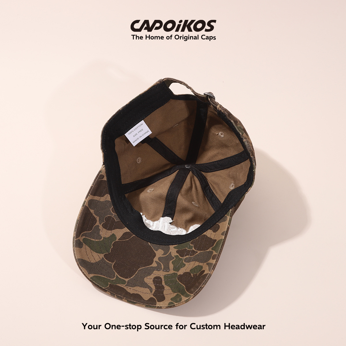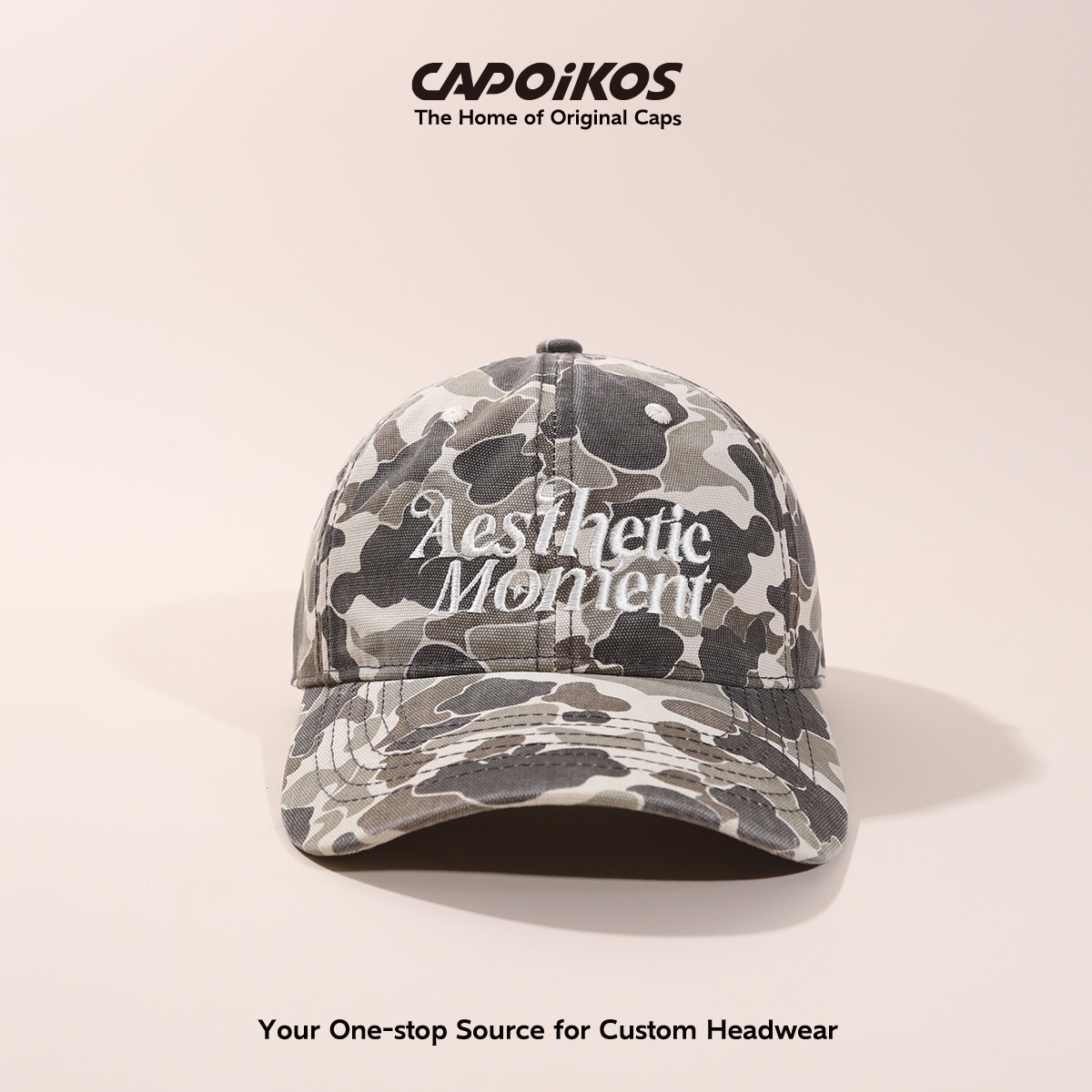 原创街头复古迷彩做旧水洗字母刺绣棒球帽女软顶显脸小鸭舌帽情侣