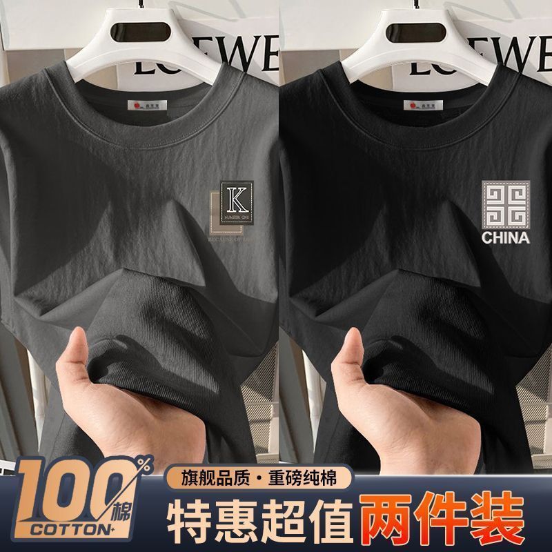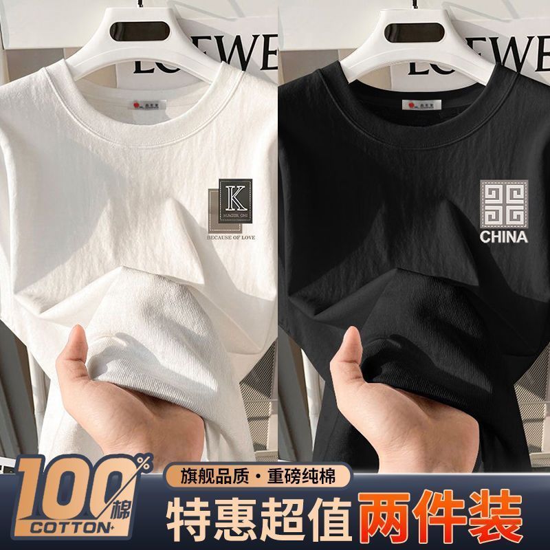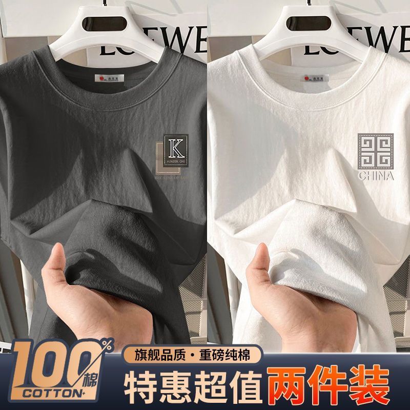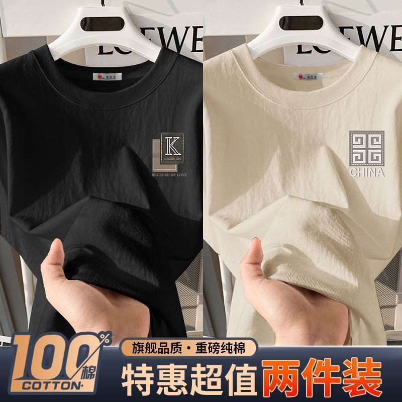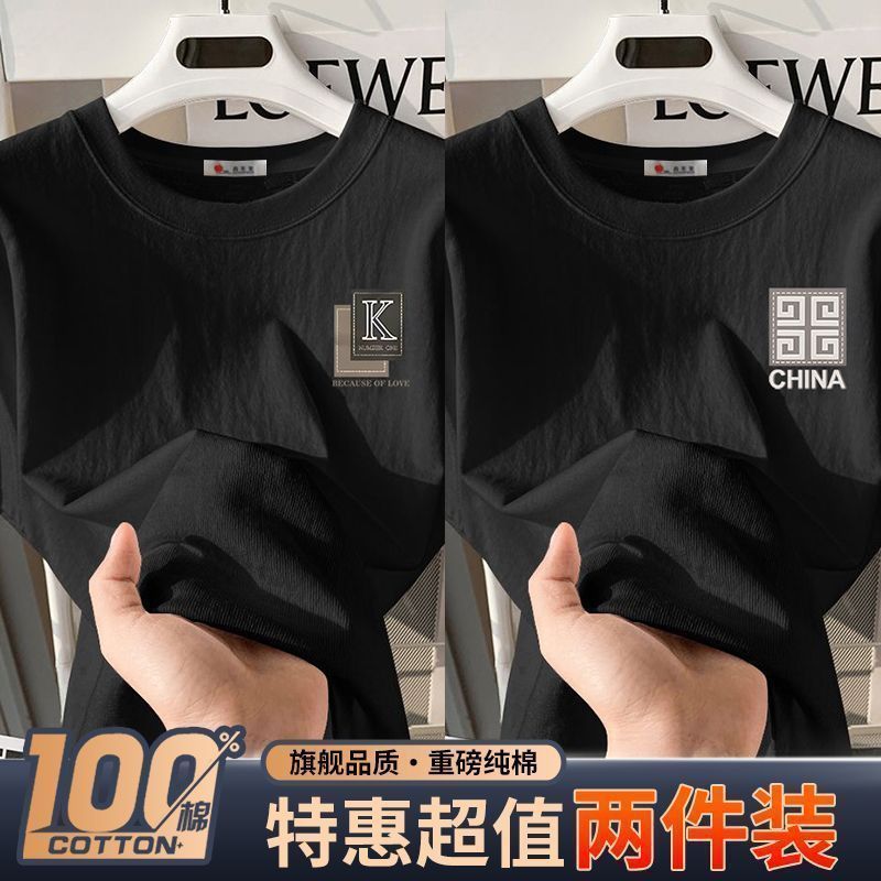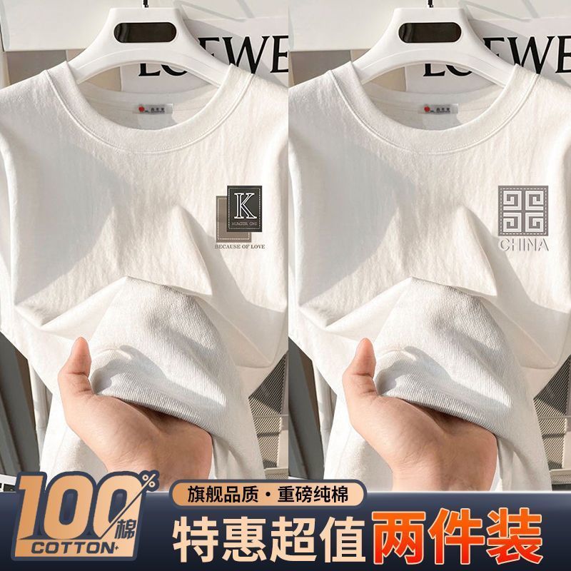 100%纯棉青少年潮牌潮流上衣男港风半袖宽松休闲百搭男士t恤ins男