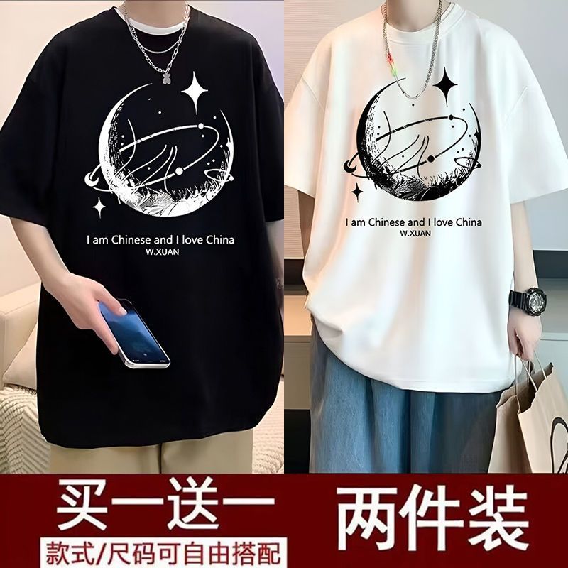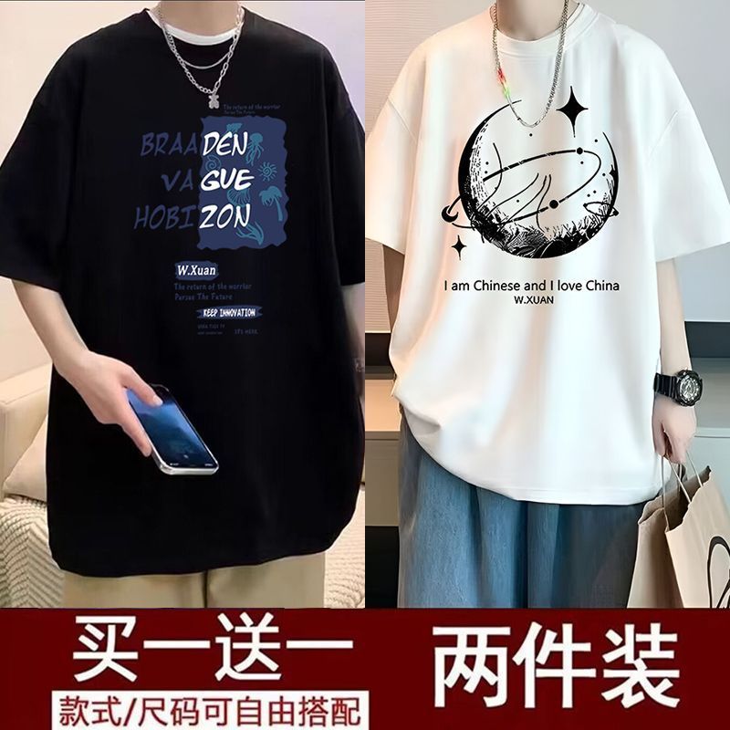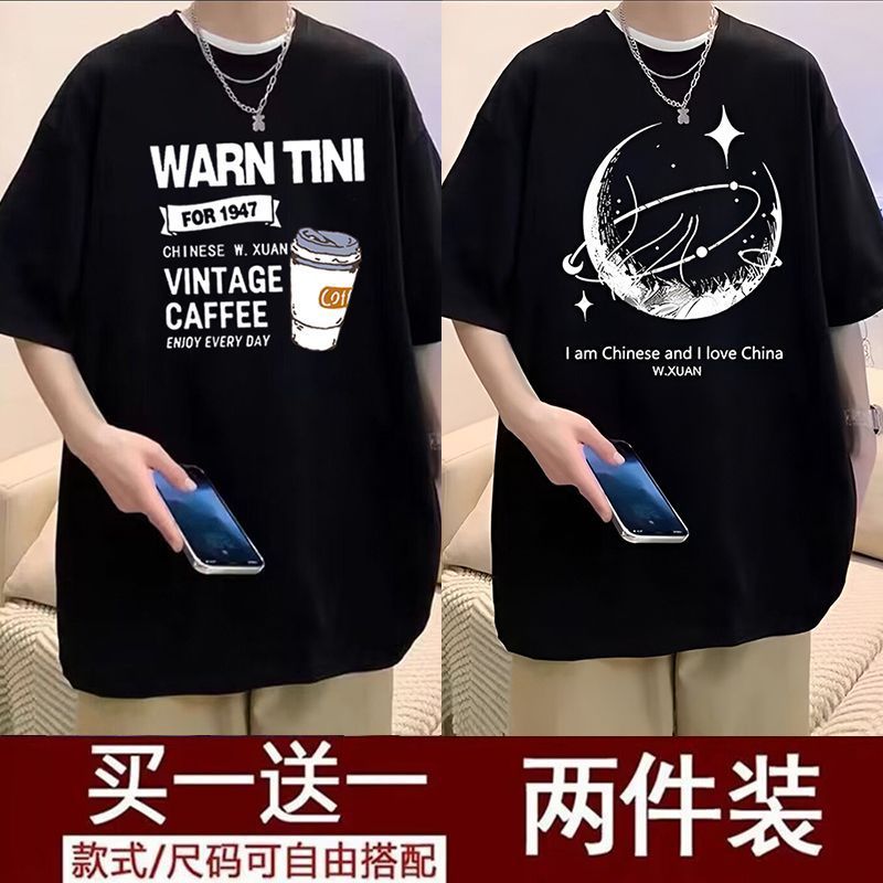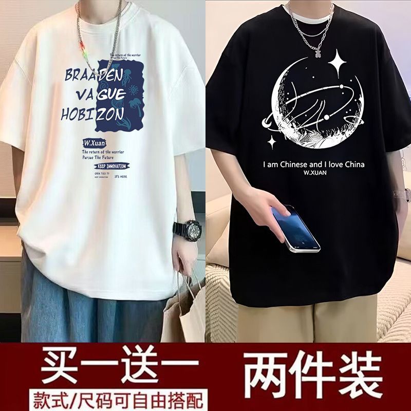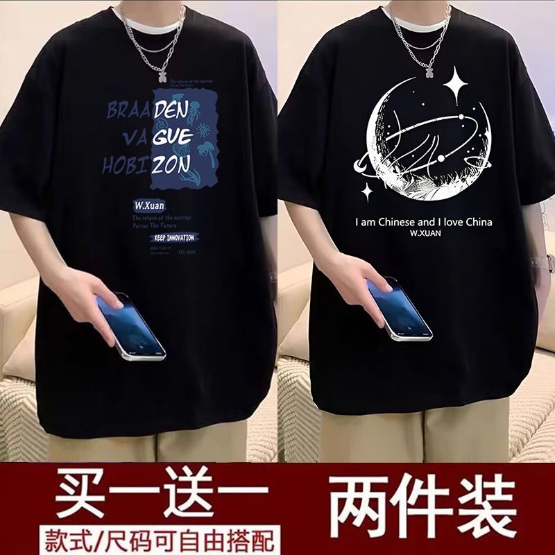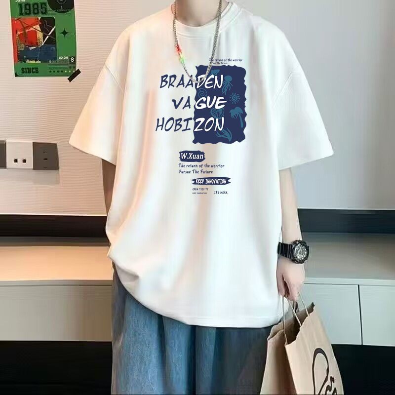 冰丝短袖t恤男夏季新款五分袖t恤男装衣服港风潮牌半袖速干体恤