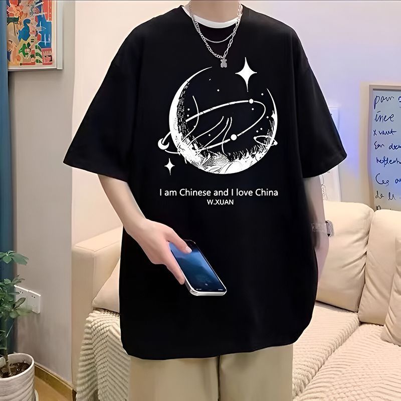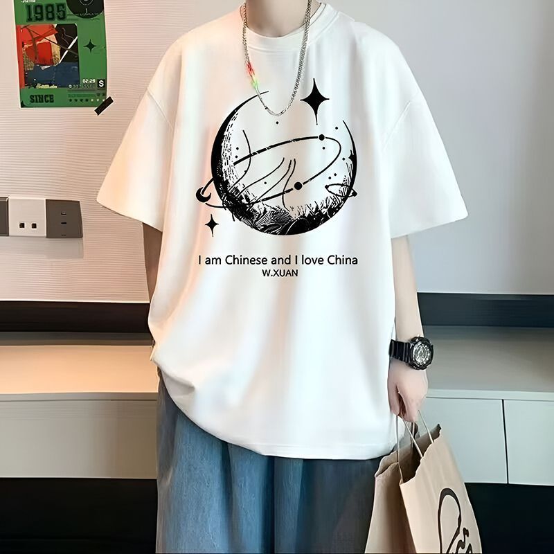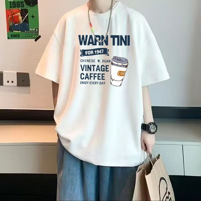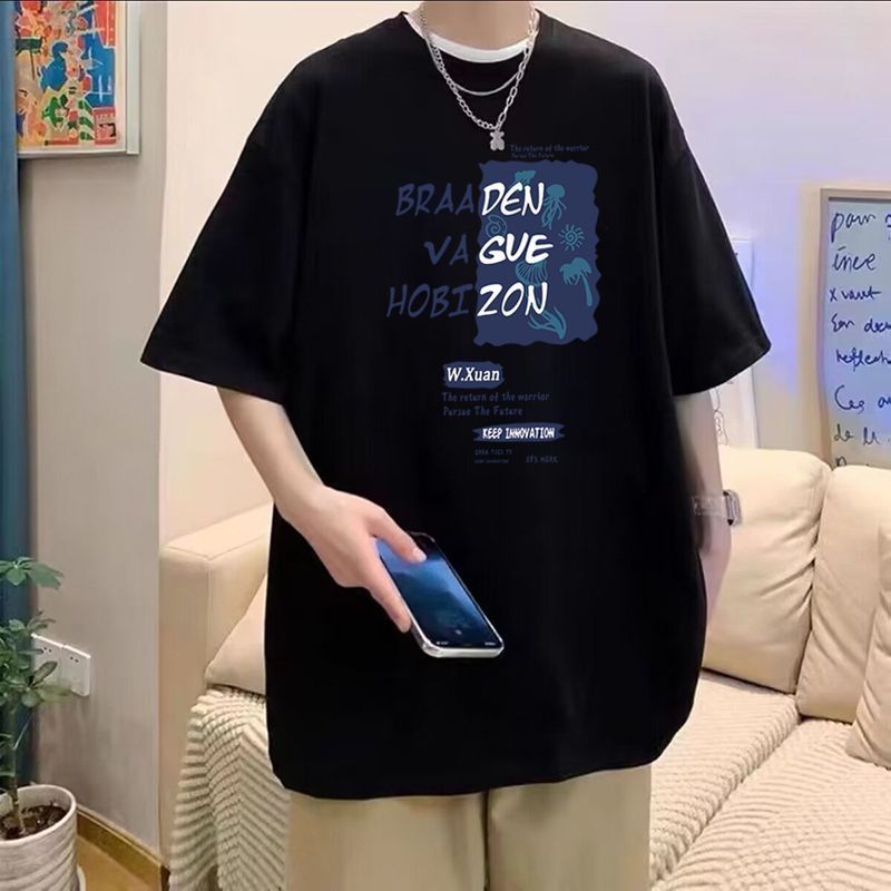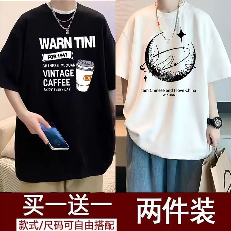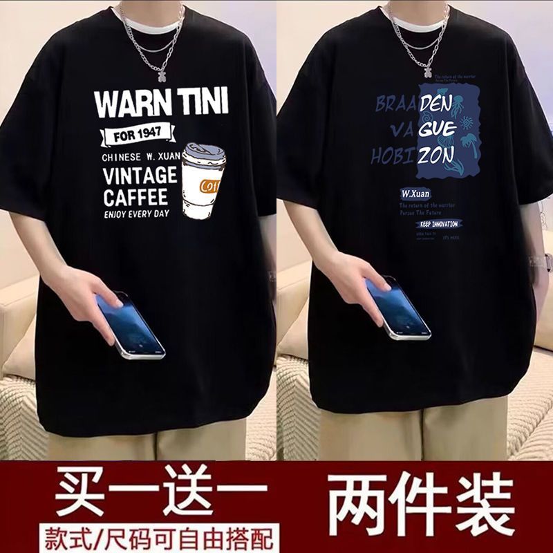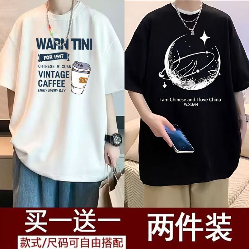 冰丝短袖t恤男夏季新款五分袖t恤男装衣服港风潮牌半袖速干体恤