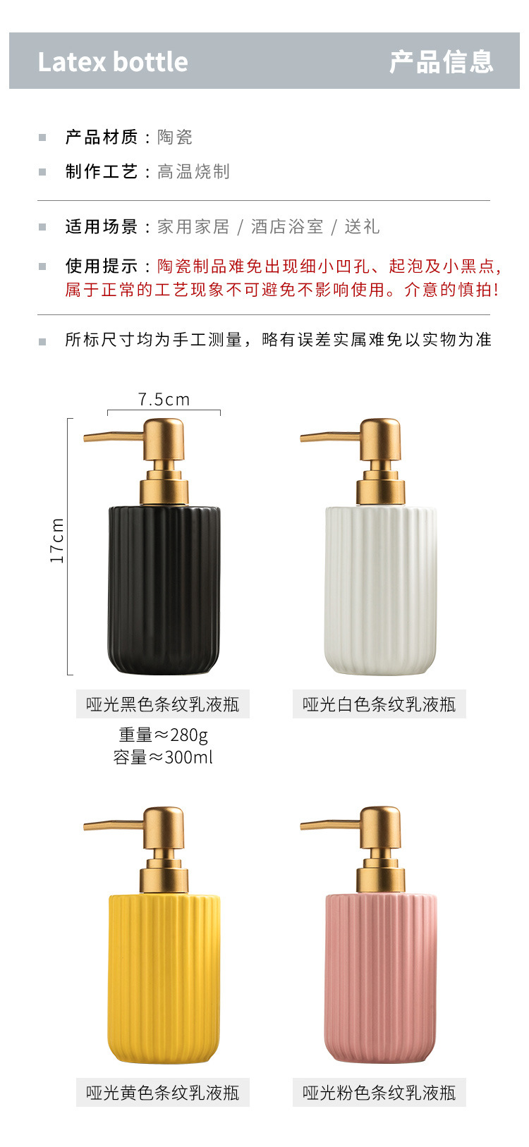 简约陶瓷乳液分装瓶洗手液沐浴露洗发水按压瓶酒店家居用品瓶子