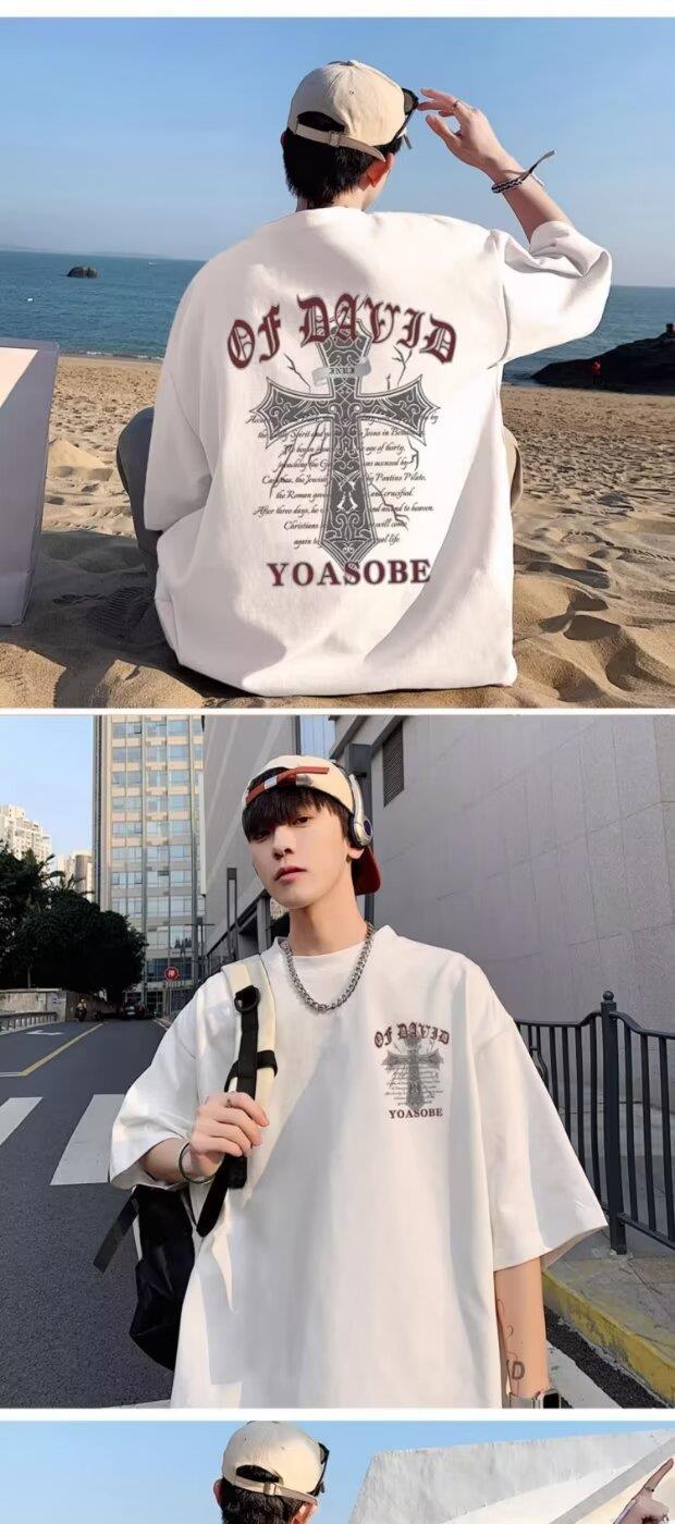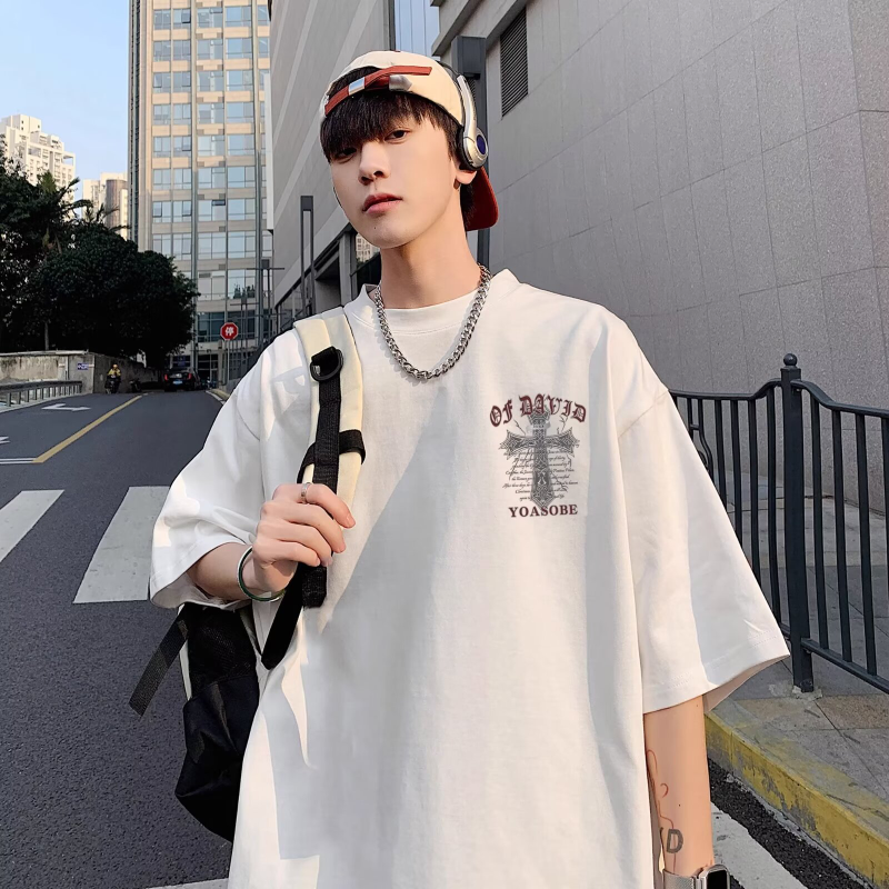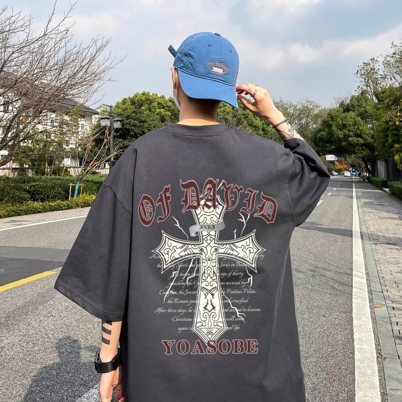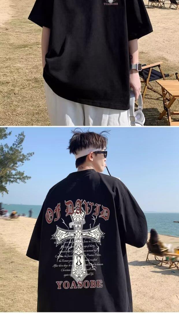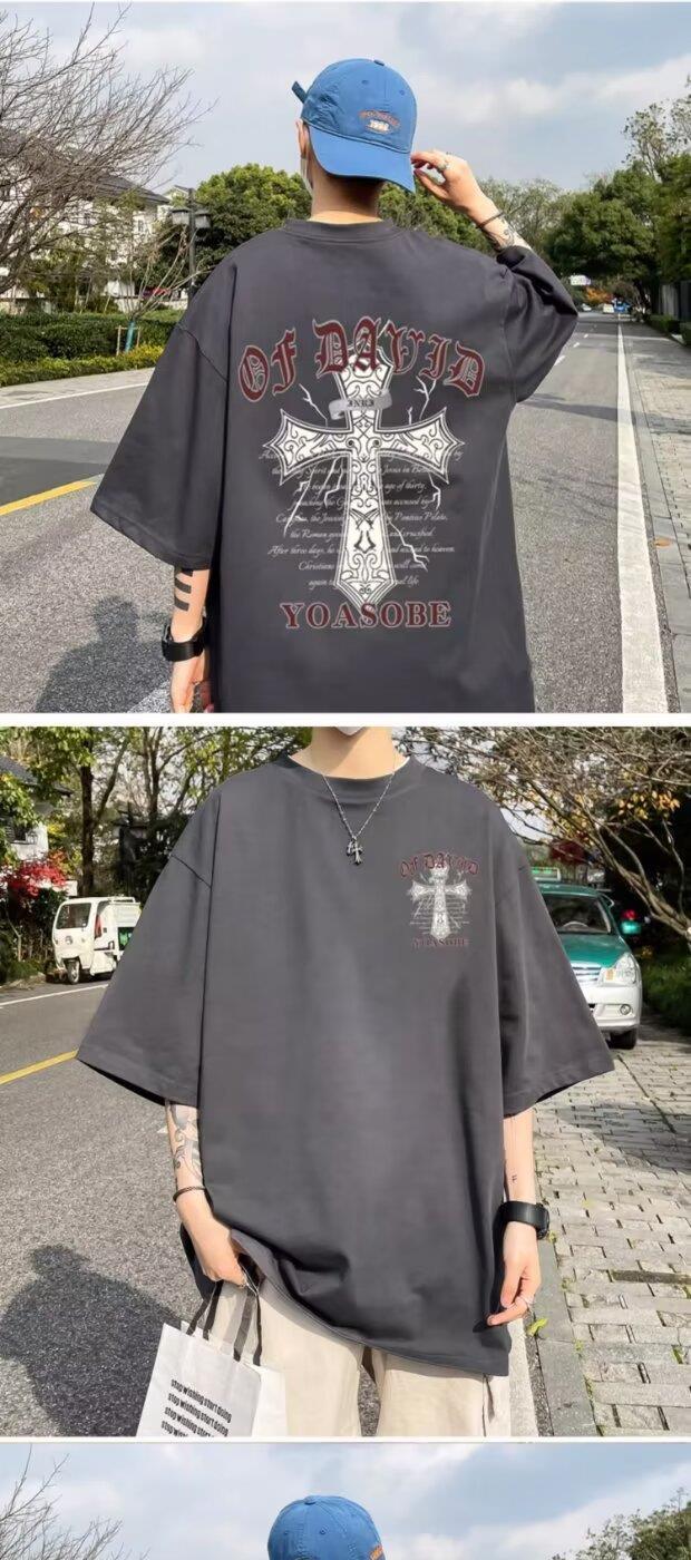 100%纯棉美式t恤短袖男士夏季ins宽松简约圆领情侣装体恤上衣男潮