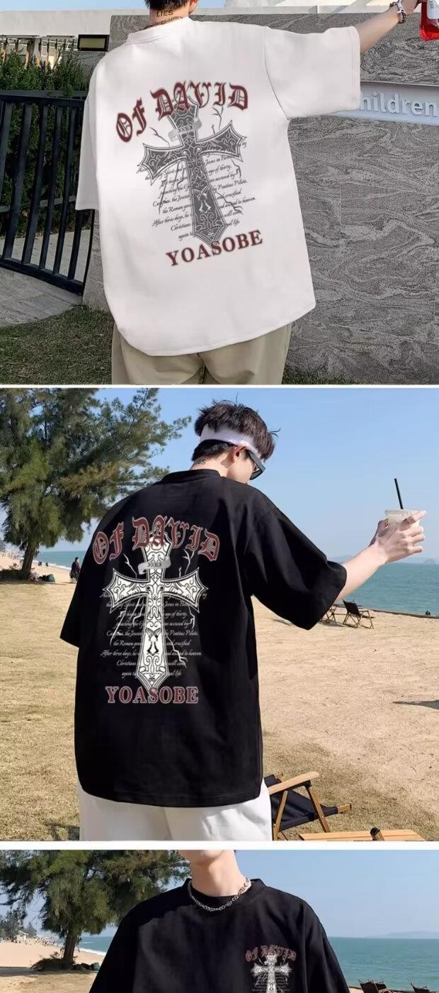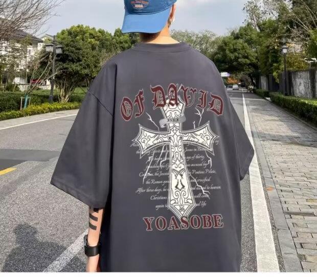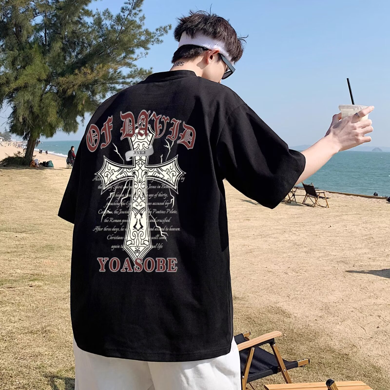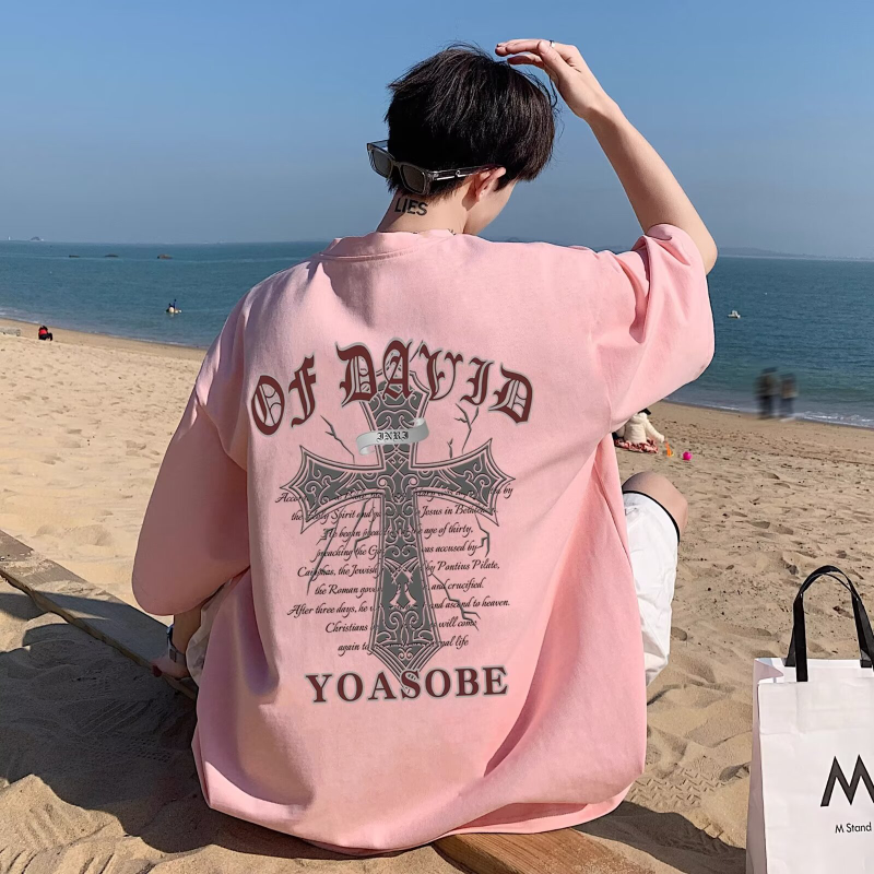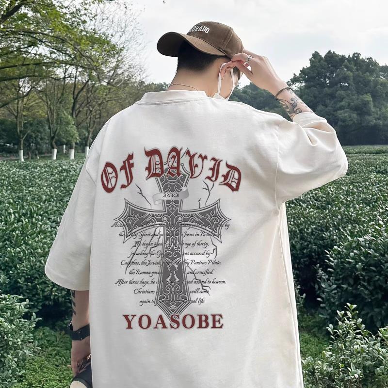 100%纯棉美式t恤短袖男士夏季ins宽松简约圆领情侣装体恤上衣男潮