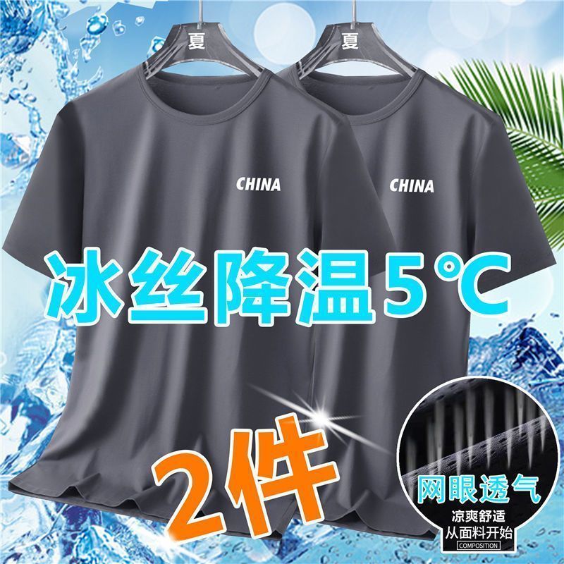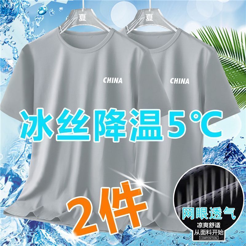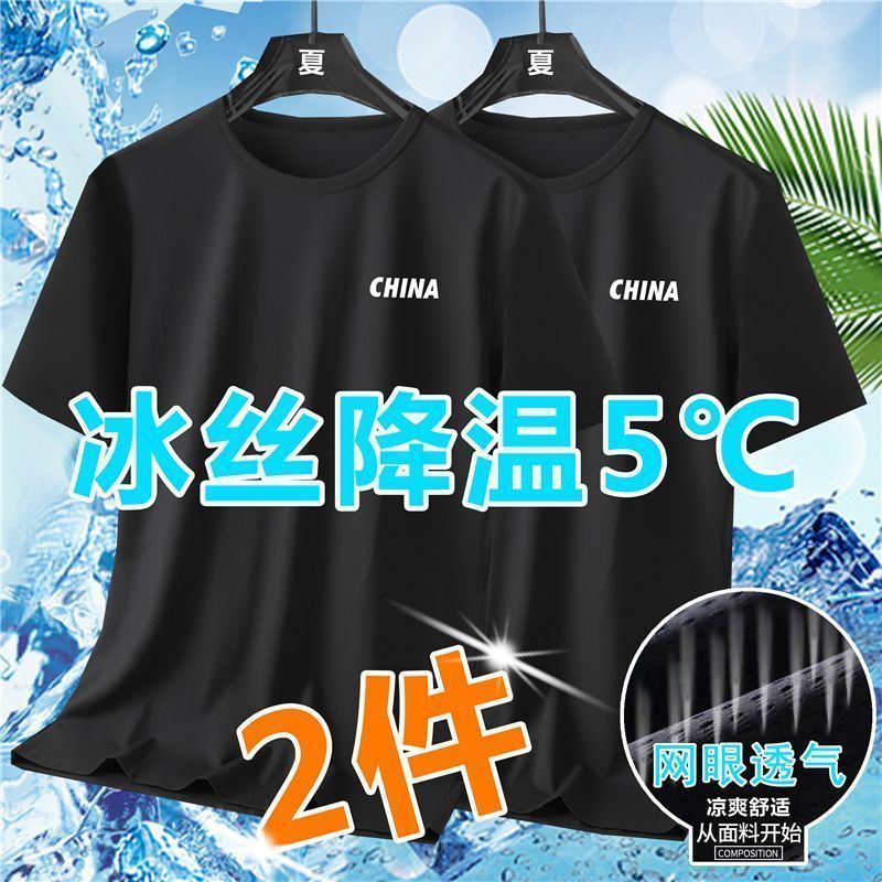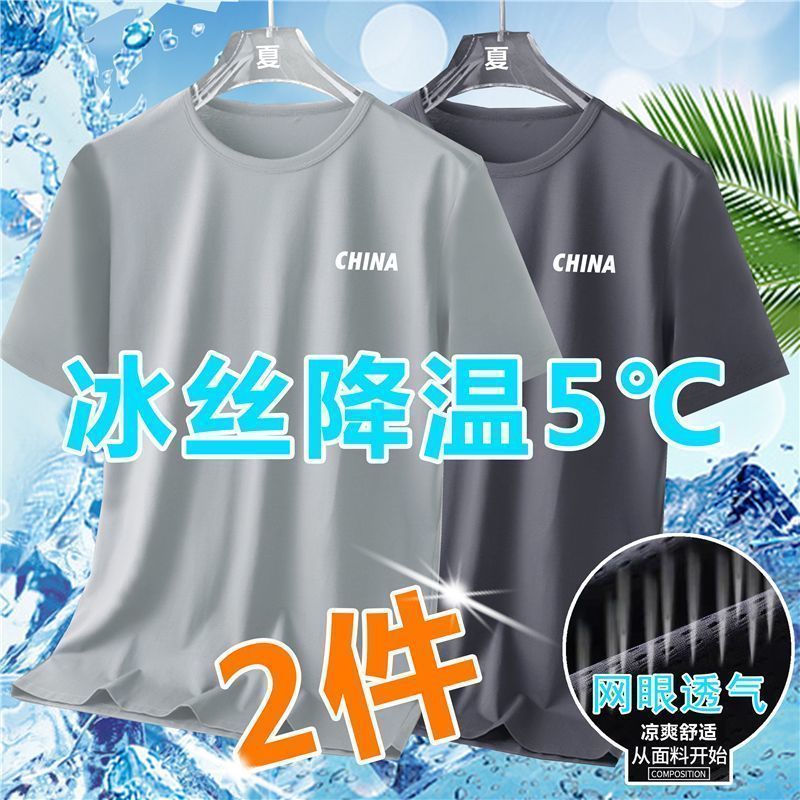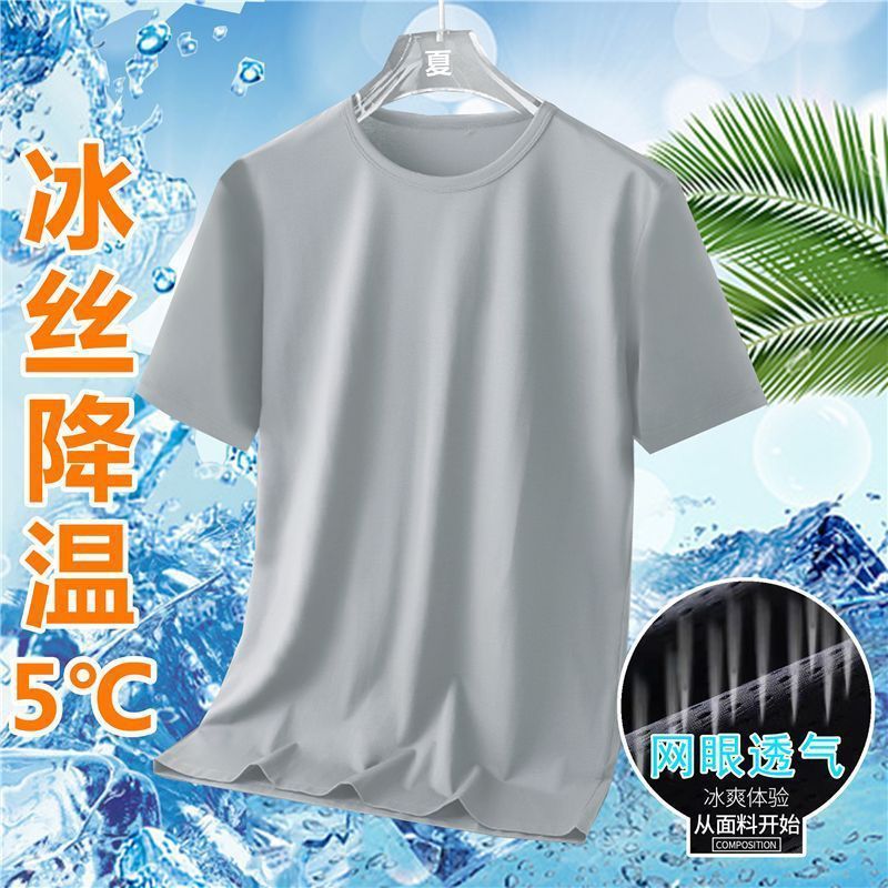男士真冰丝速干t恤男短袖夏季潮牌网眼透气大码宽松半袖体恤1/2件