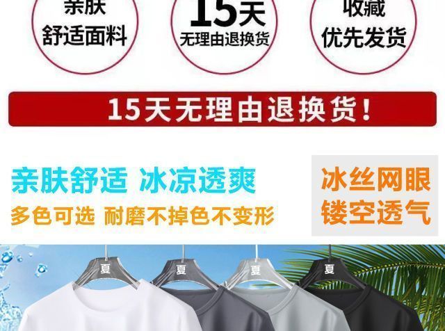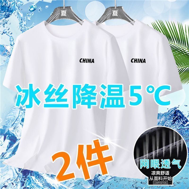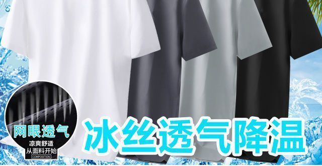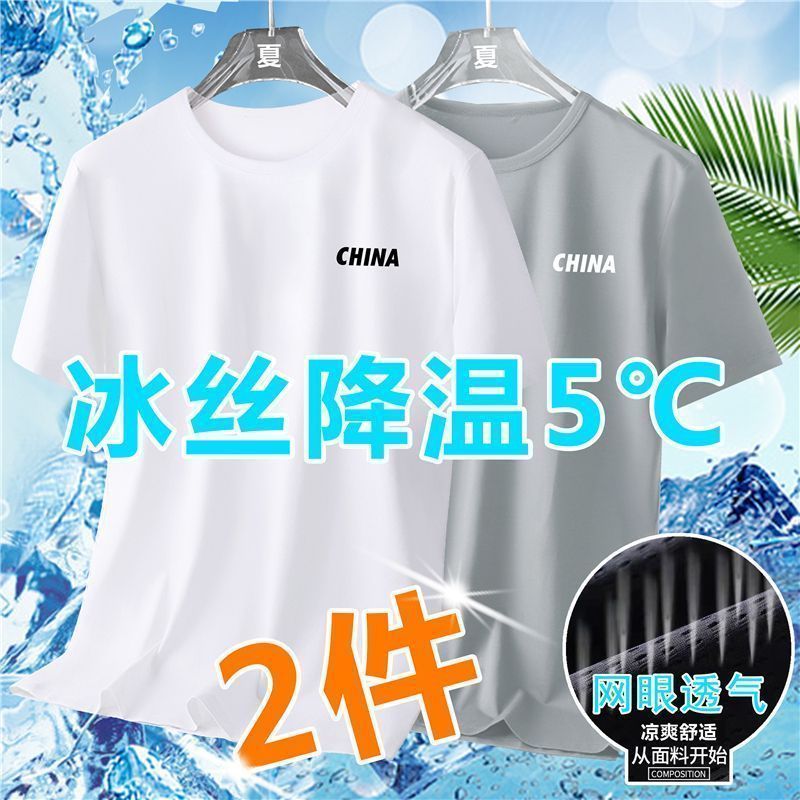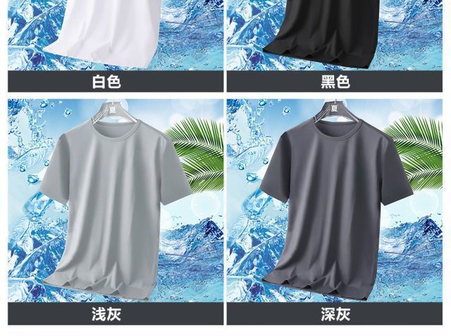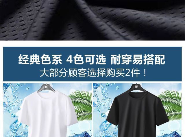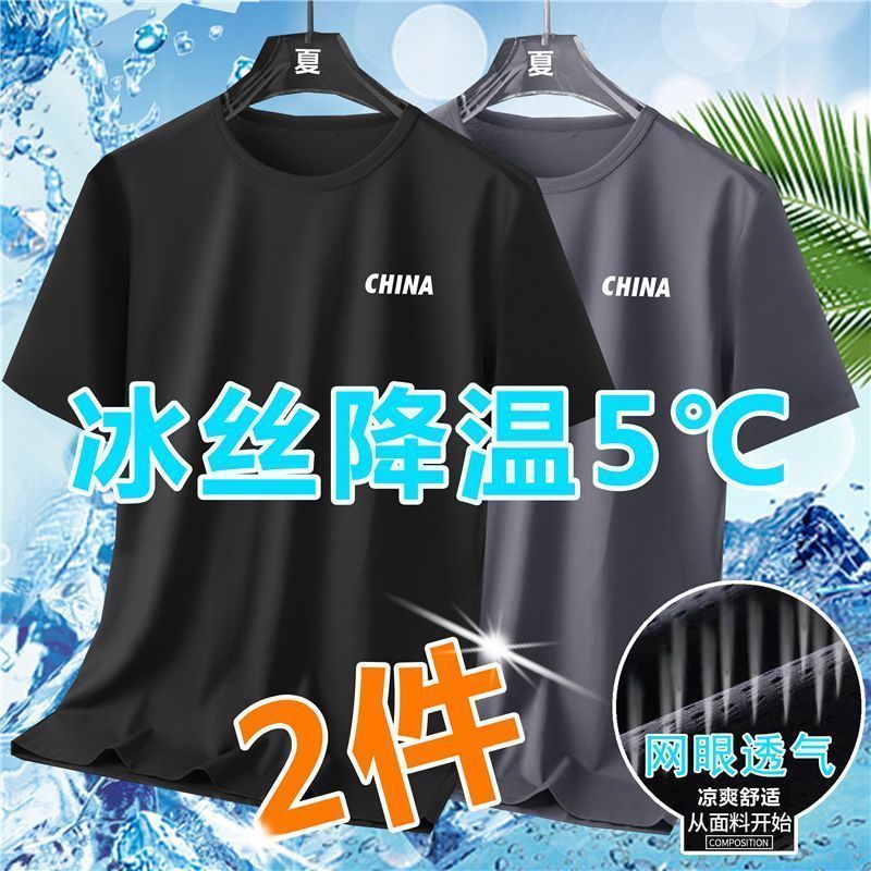 男士真冰丝速干t恤男短袖夏季潮牌网眼透气大码宽松半袖体恤1/2件