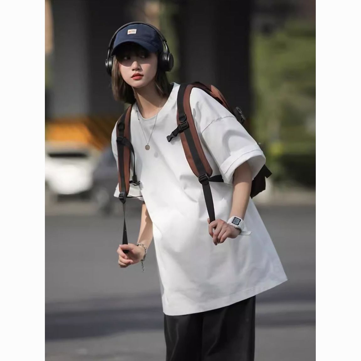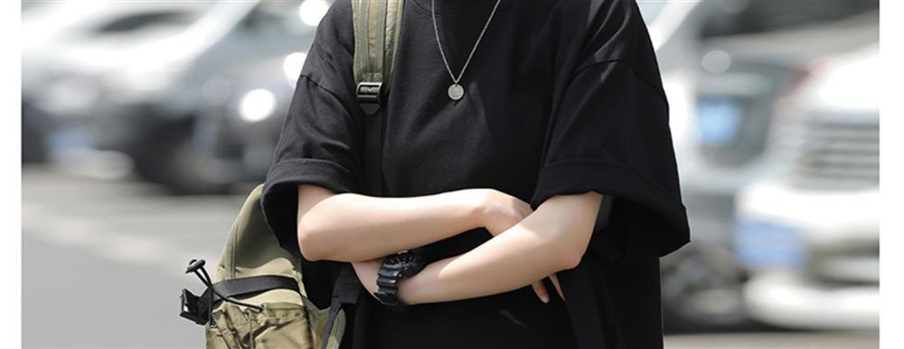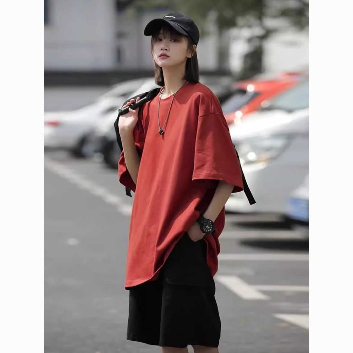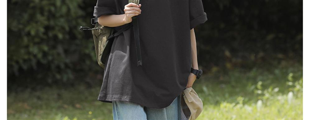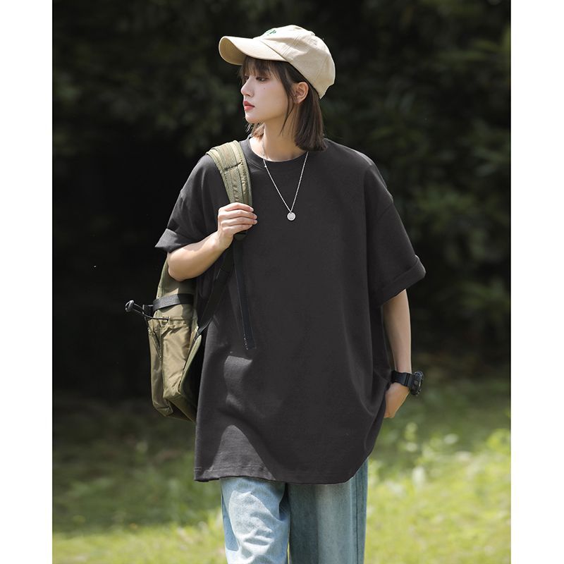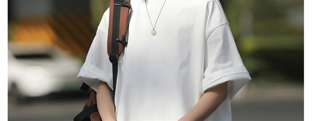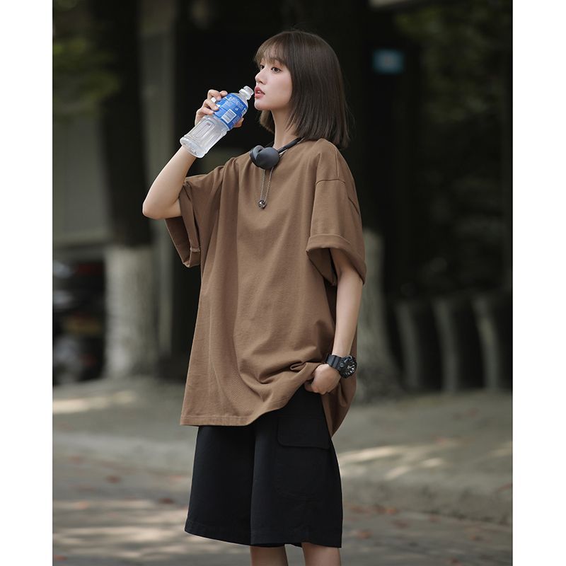 深咖色日系风男装t恤高克重廓形纯棉短袖男夏季落肩五分袖高质量