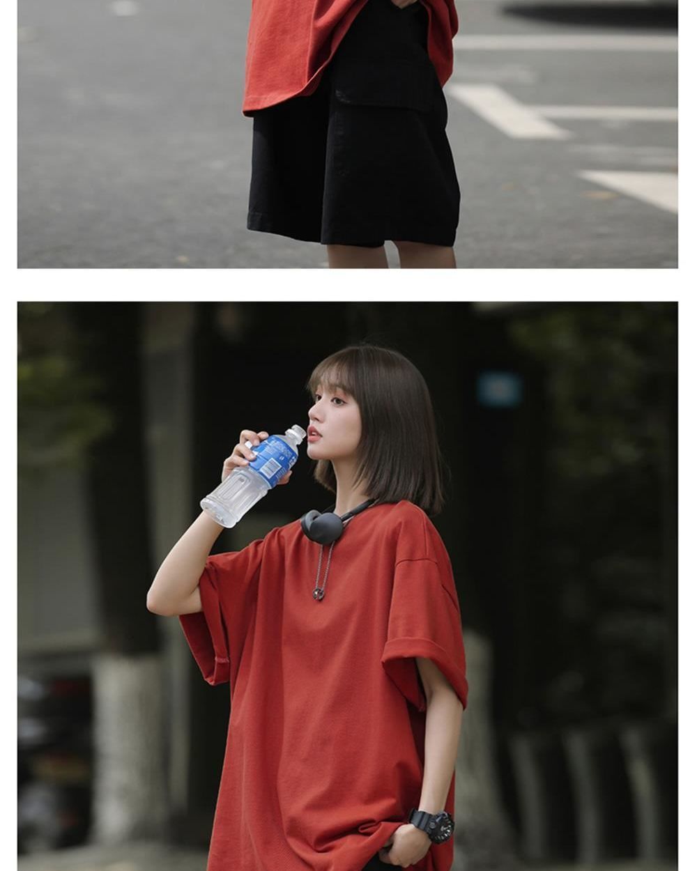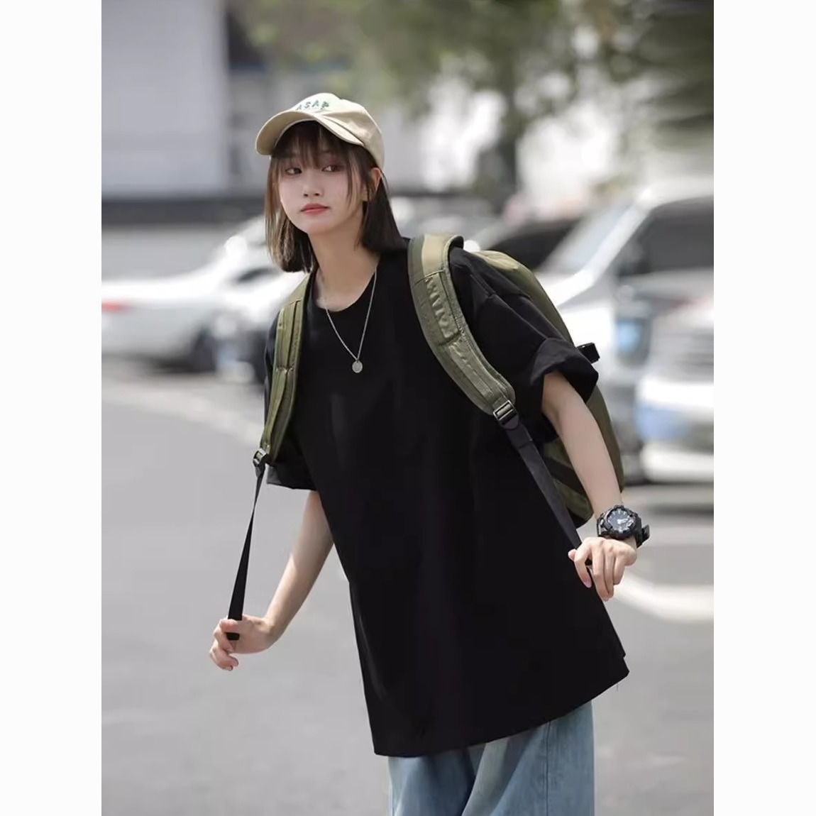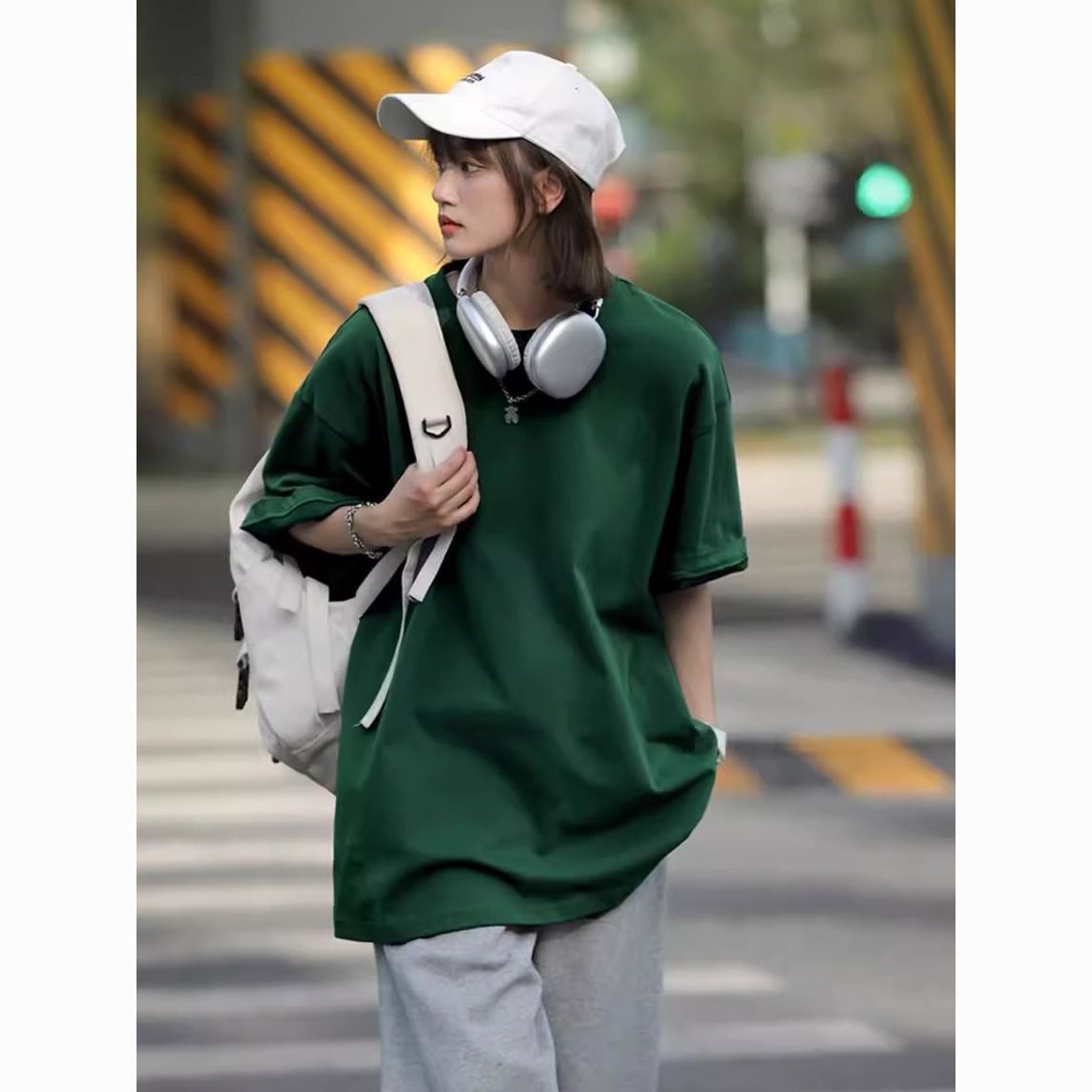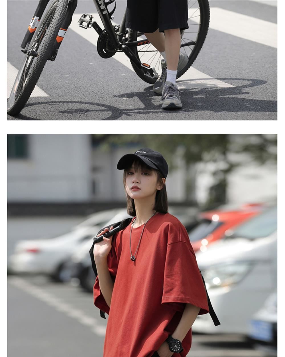 深咖色日系风男装t恤高克重廓形纯棉短袖男夏季落肩五分袖高质量