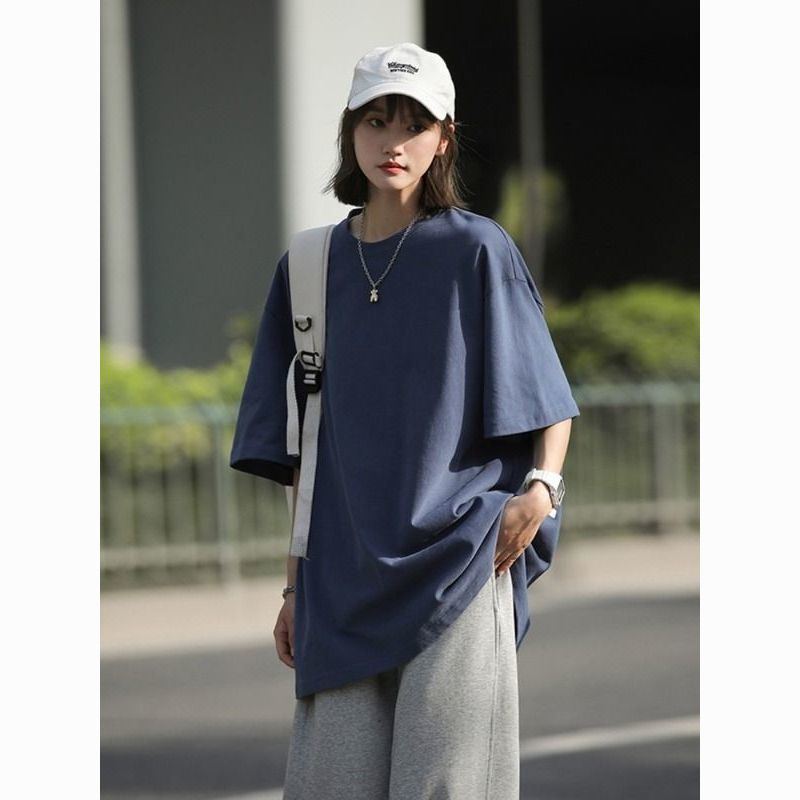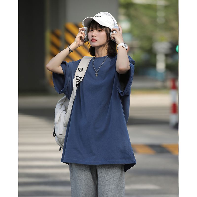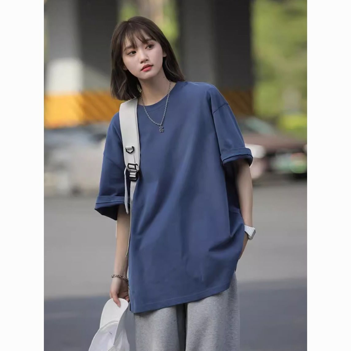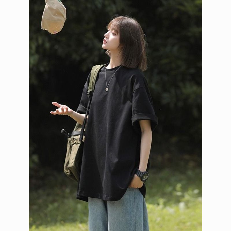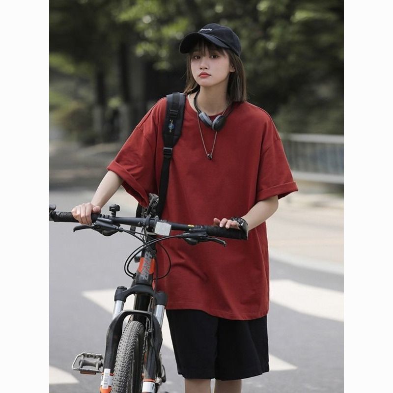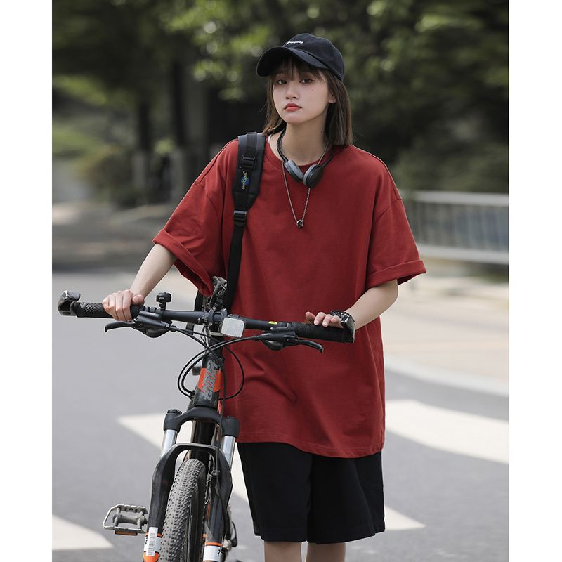 深咖色日系风男装t恤高克重廓形纯棉短袖男夏季落肩五分袖高质量