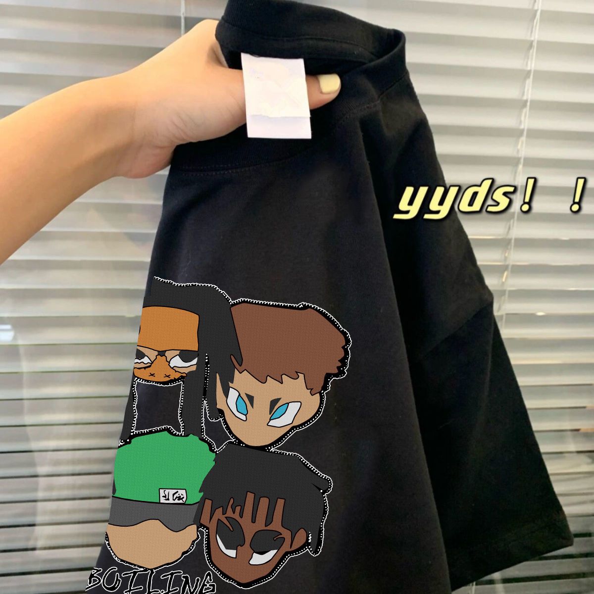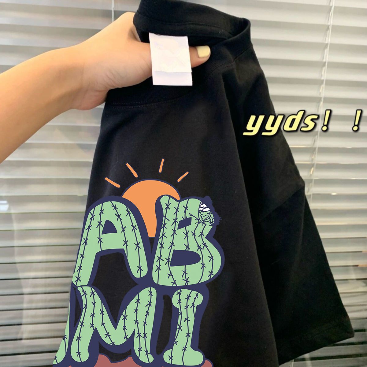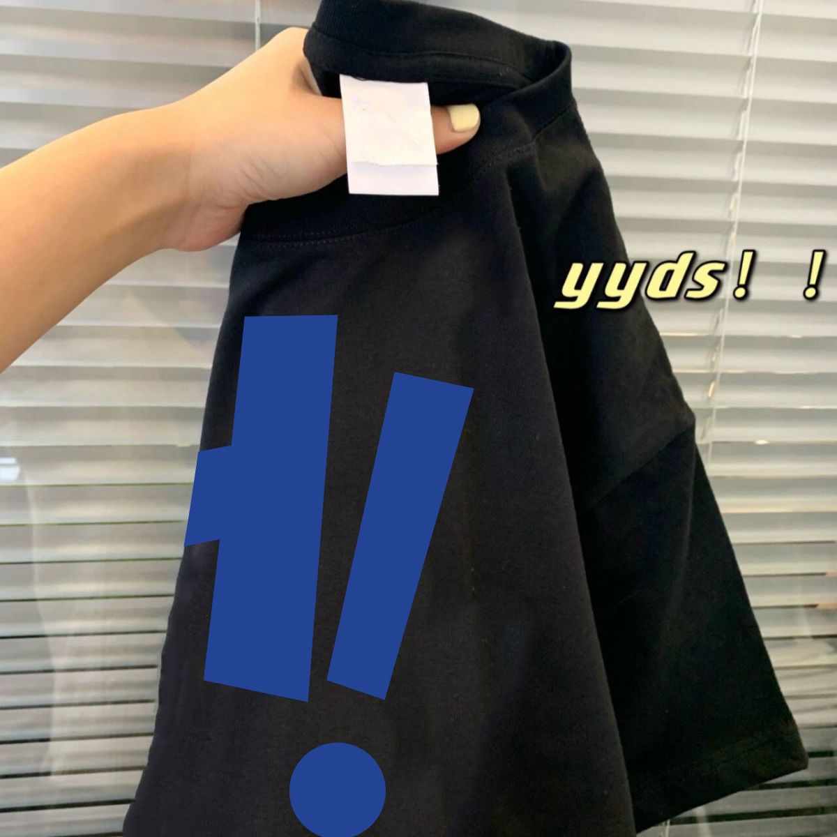显瘦黑色冰丝港风ins草莓熊印花体恤衫圆领短袖T恤男女同款情侣装
