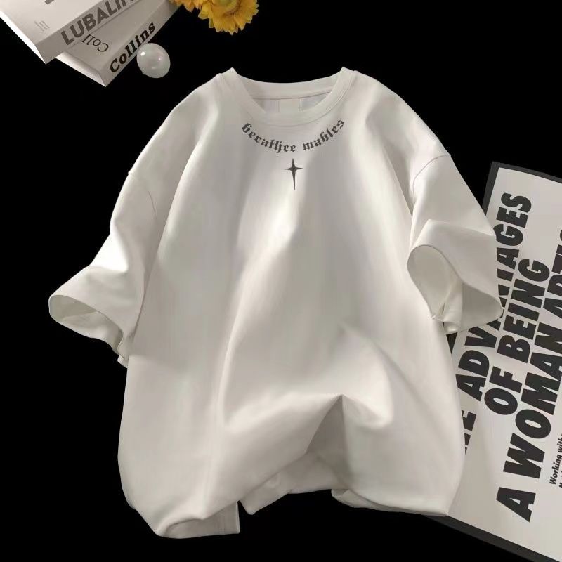 100纯棉美式T恤短袖男港风新款夏季潮牌半袖宽松百搭帅气休闲衣服