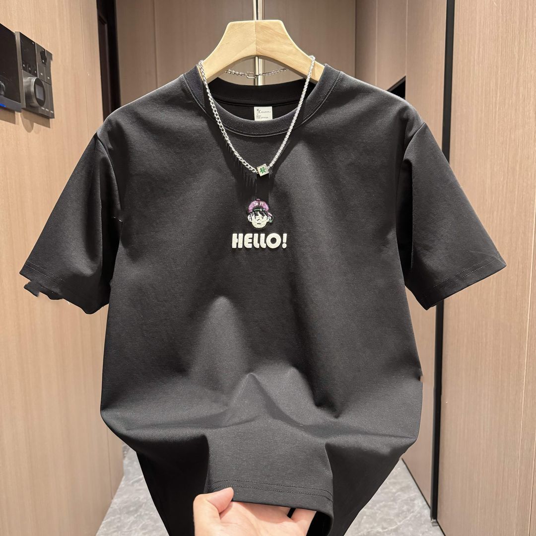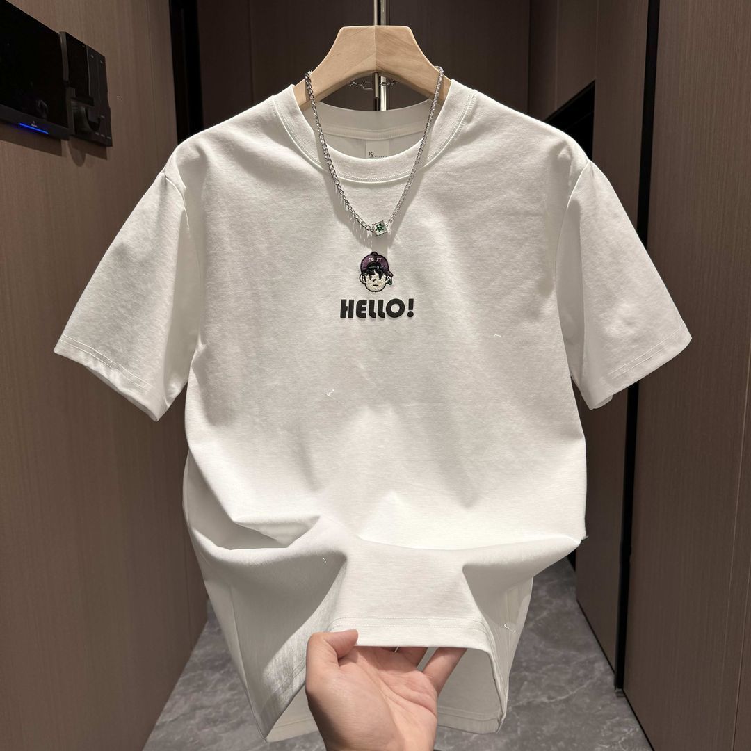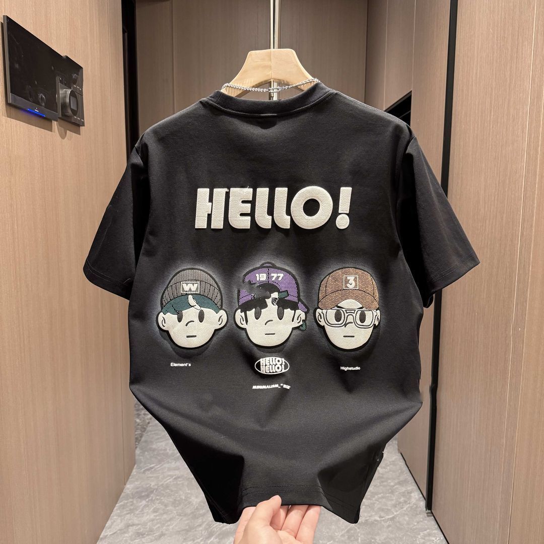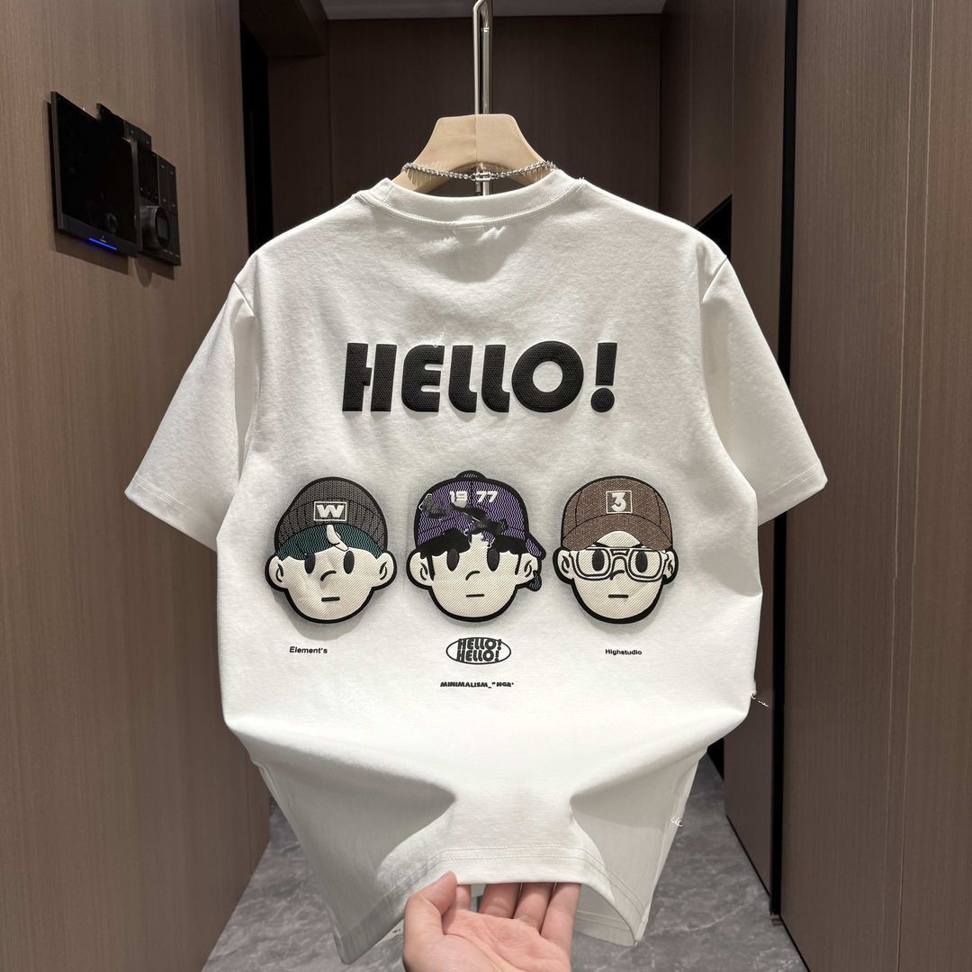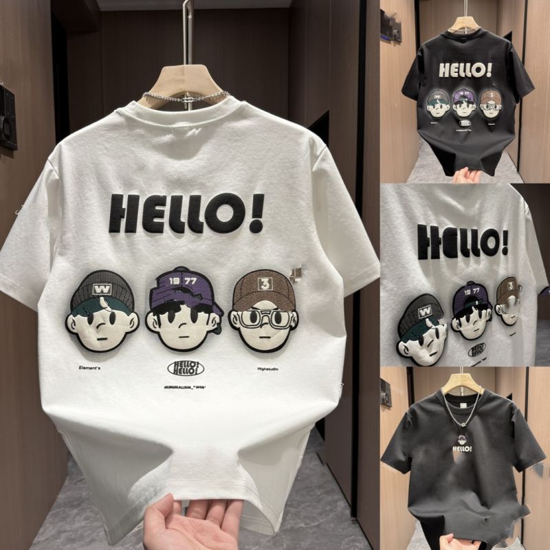 2024夏季新款潮流时尚百搭休闲男士半袖卡通印花宽松圆领短袖T恤