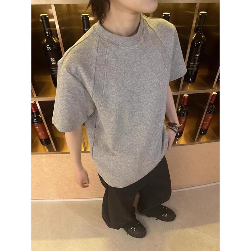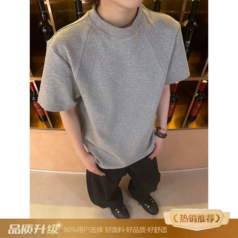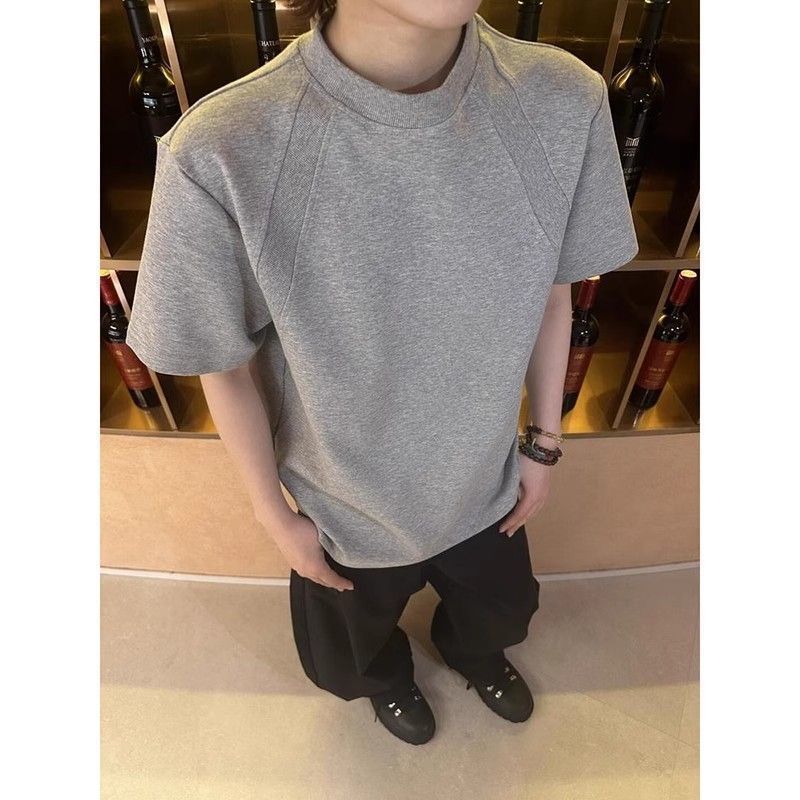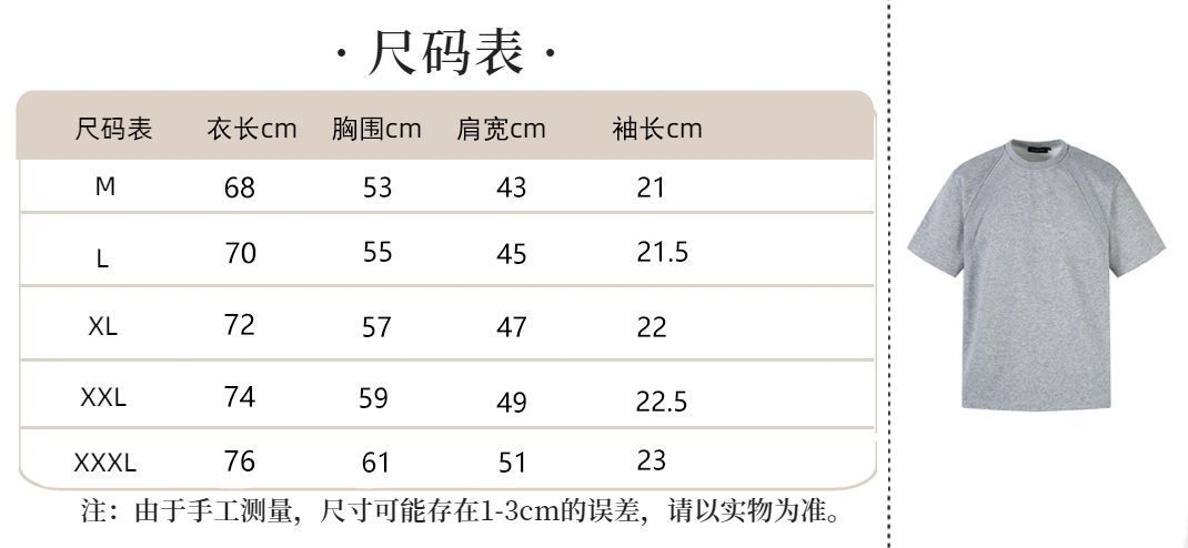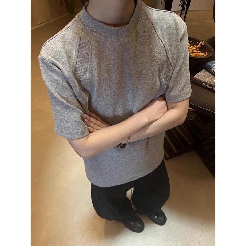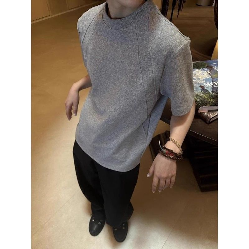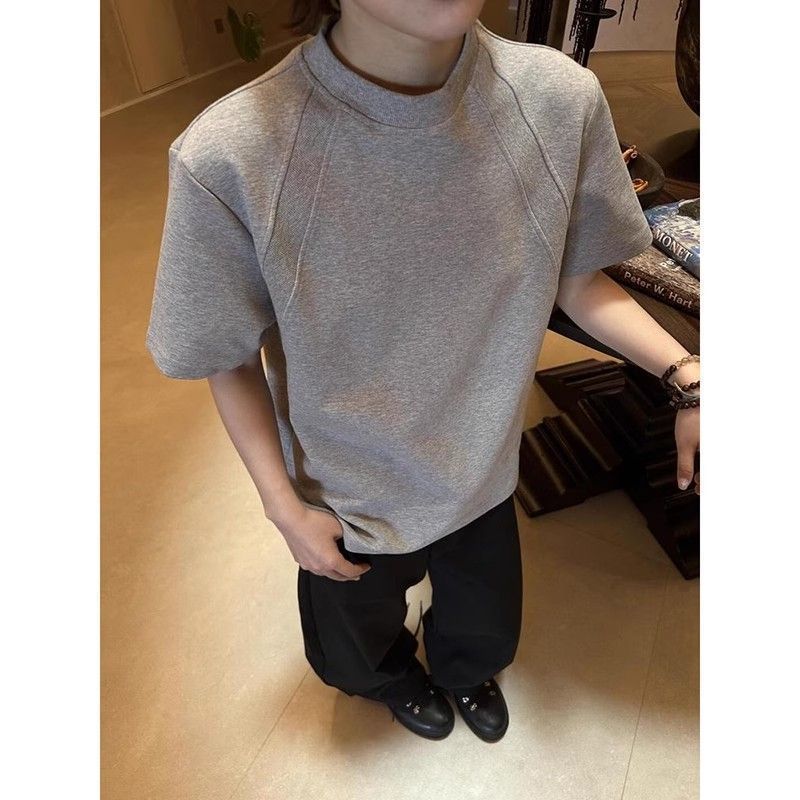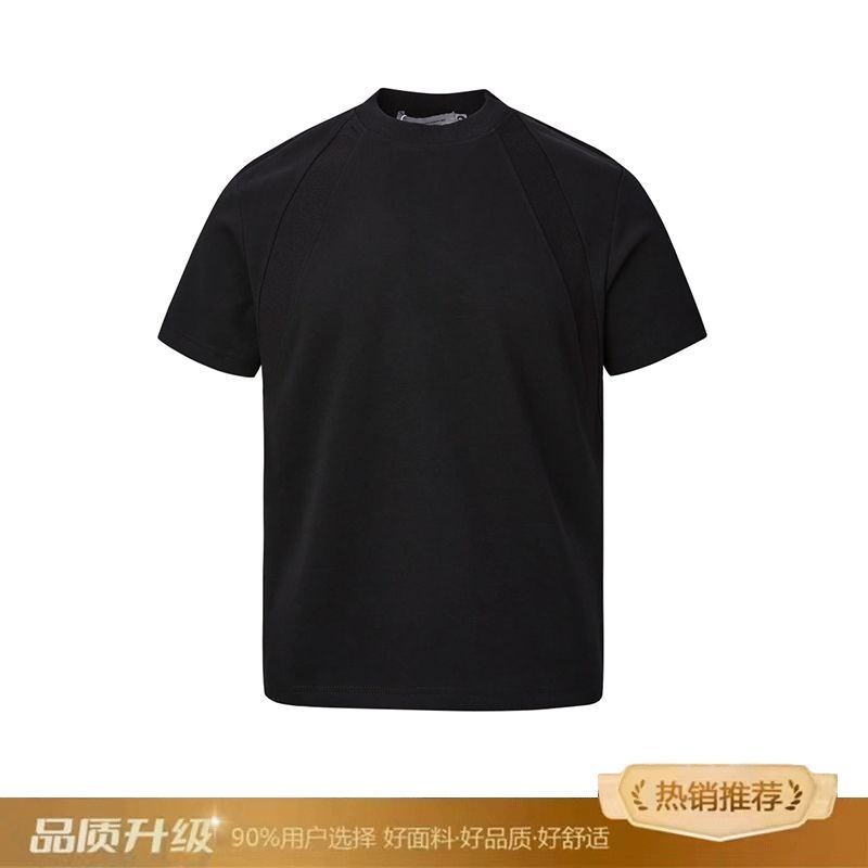 EXLUX新款重磅空气层拼接短袖T恤夏季短款boxy抗皱版型美式上衣