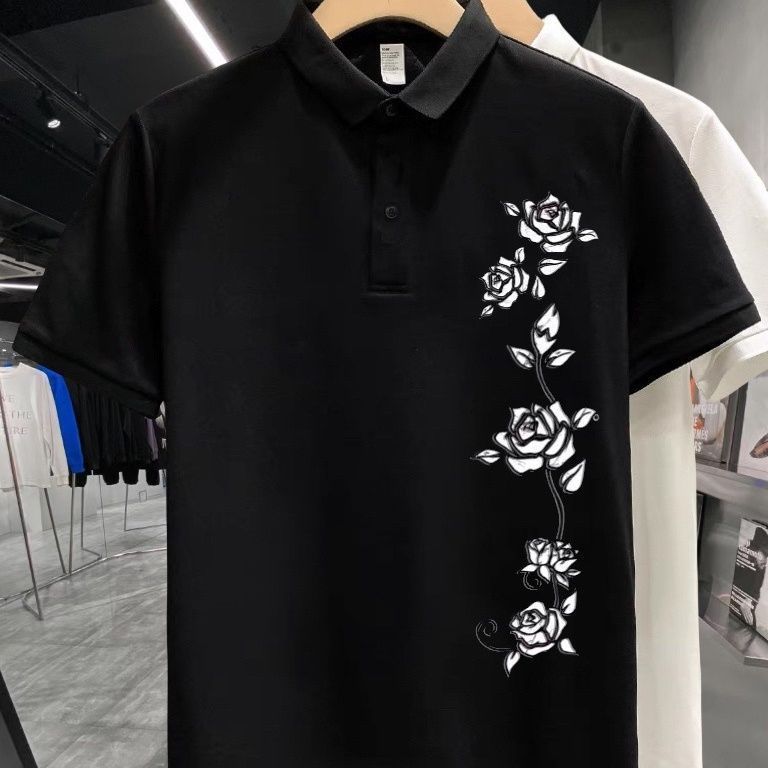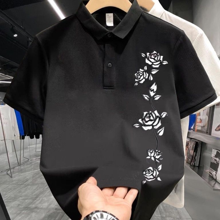 夏季2025短袖翻领polo衫潮牌新款潮流T恤印花精神小伙男半袖上衣