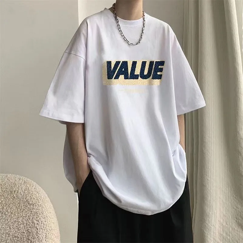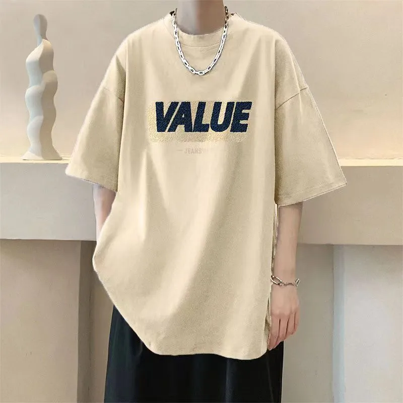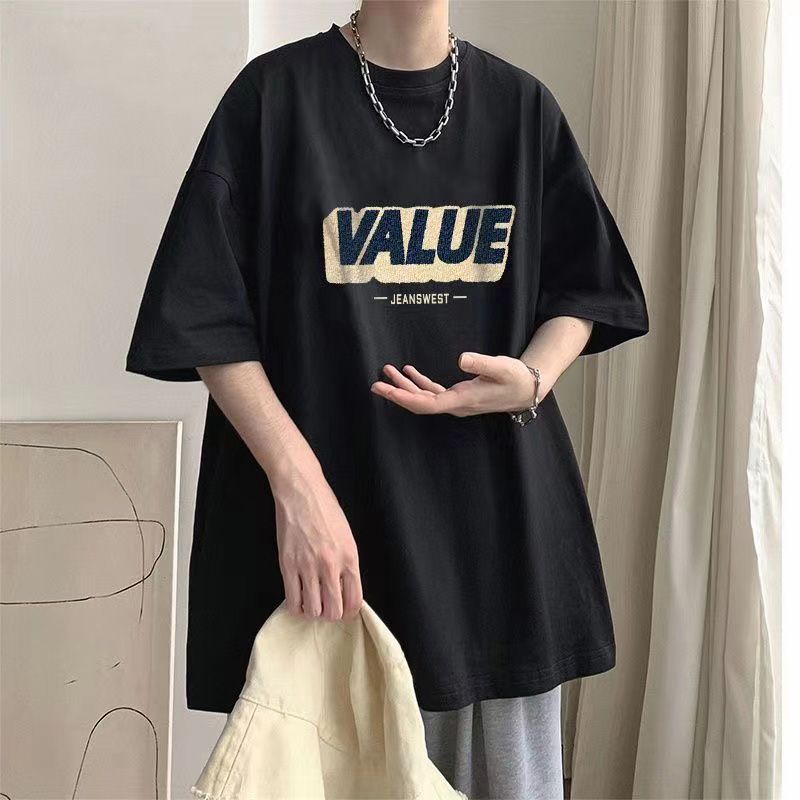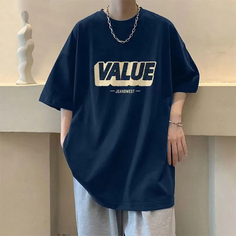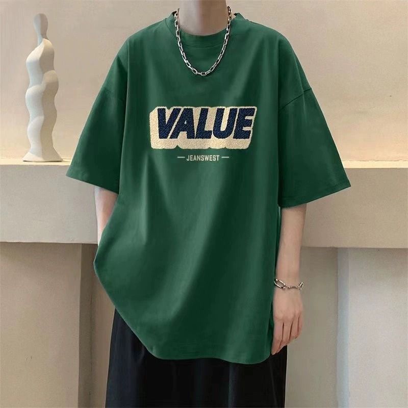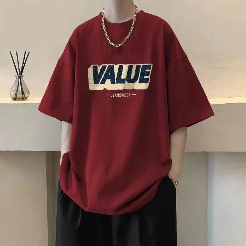 速干简约酒红色美式重磅短袖T恤oversize潮牌男夏季宽松ins半袖
