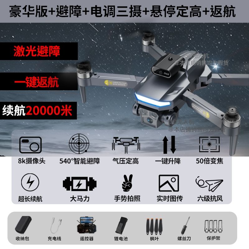 自动避障无刷无人机8K高清航拍折叠遥控飞机男女孩儿童玩具飞行器