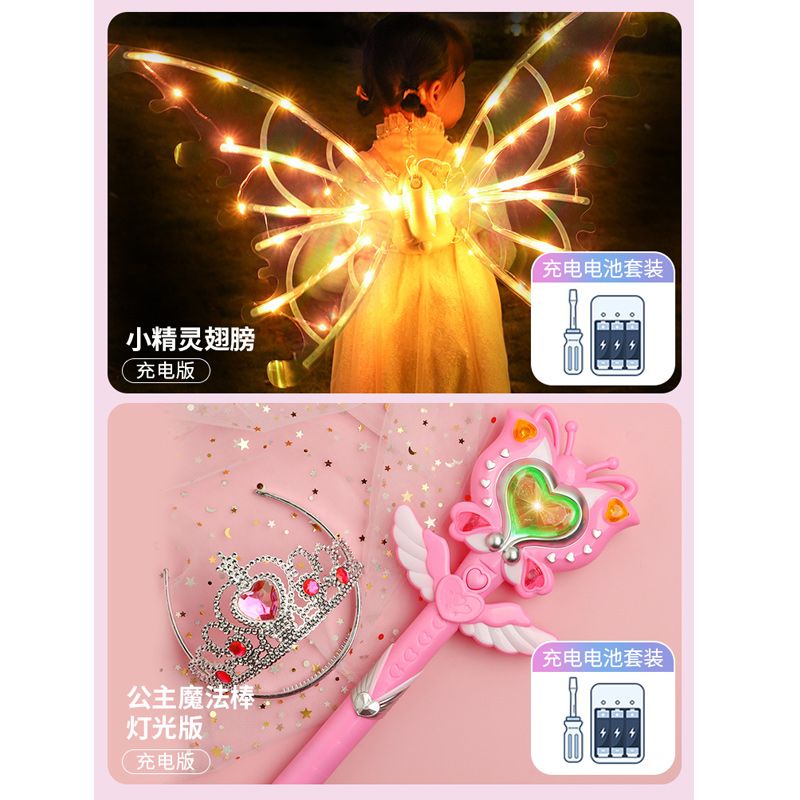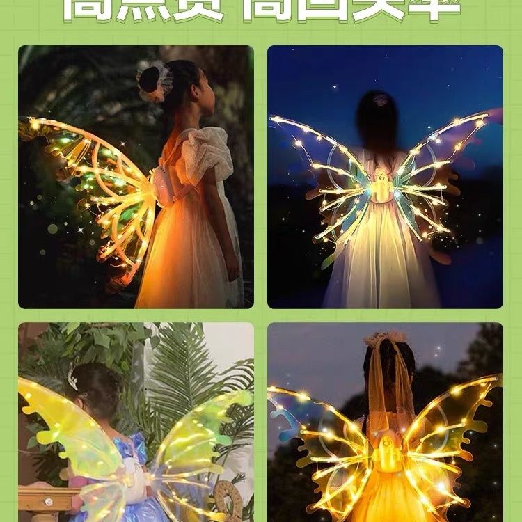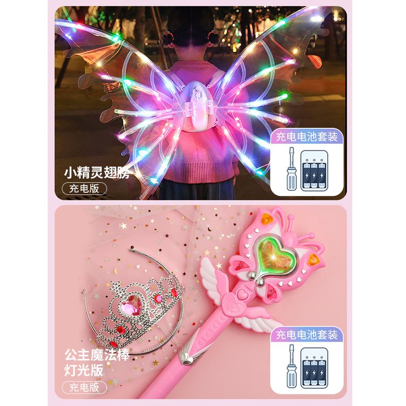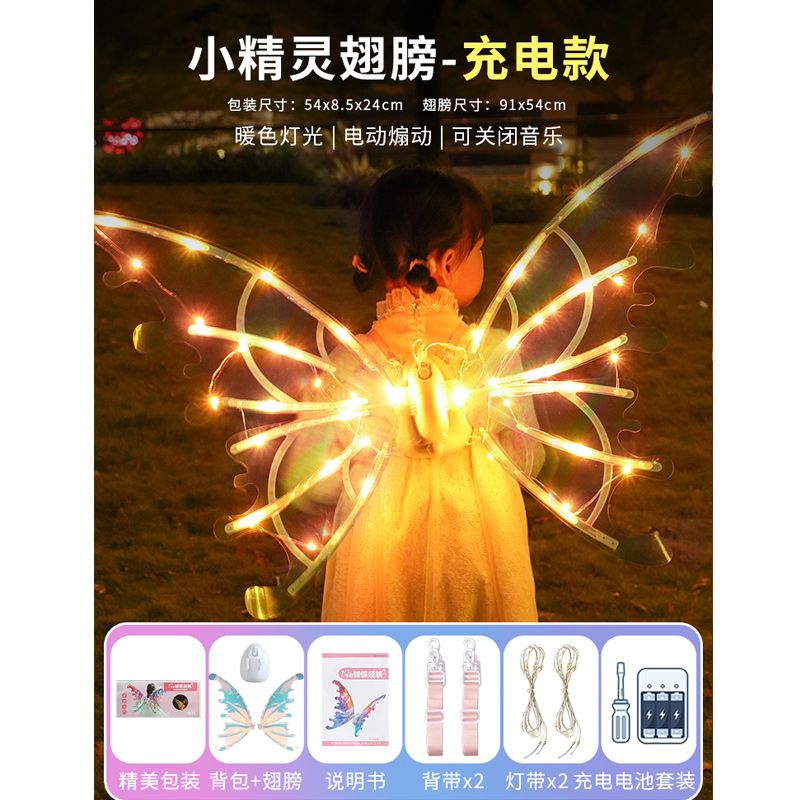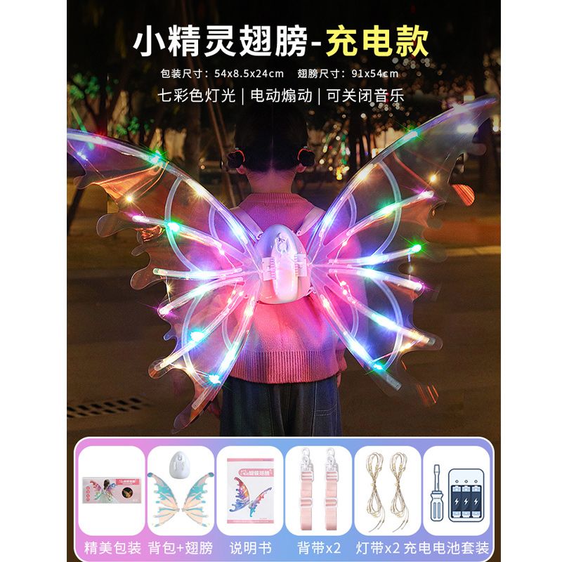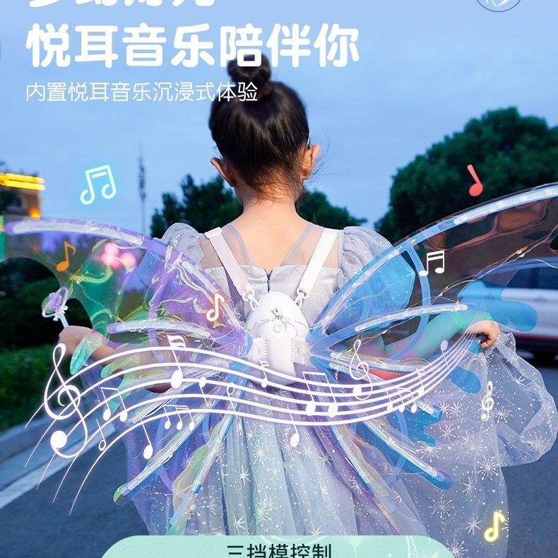 电动精灵翅膀儿童背饰天使羽翼发光会动的玩具小女孩礼物抖音同款