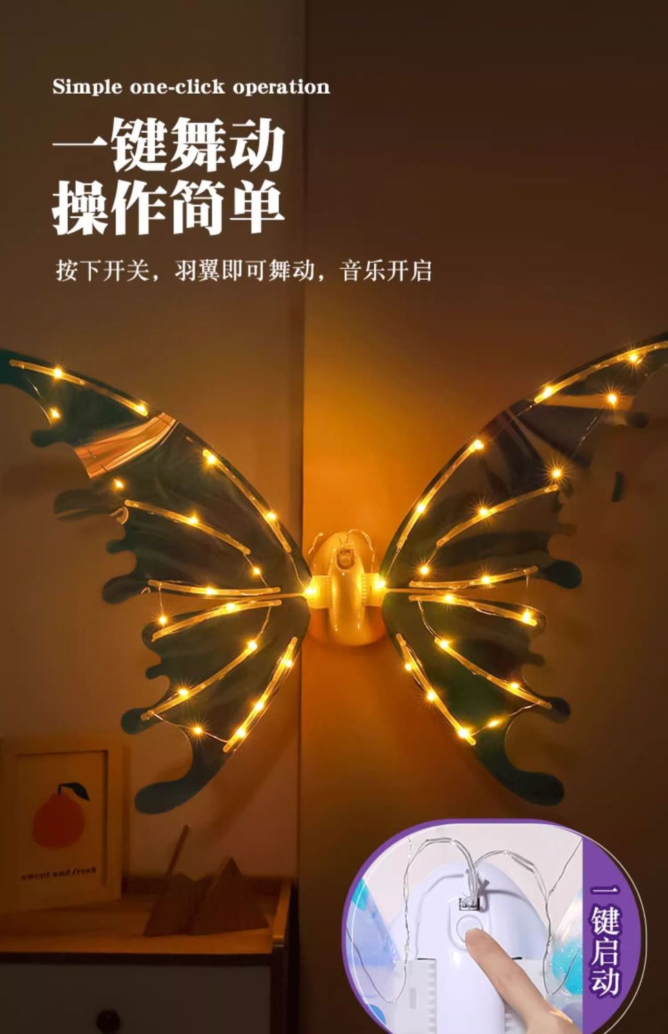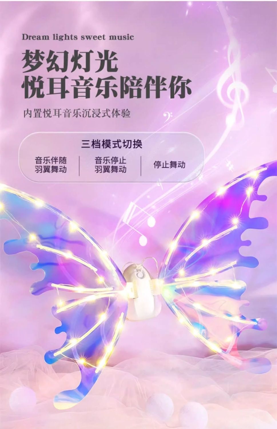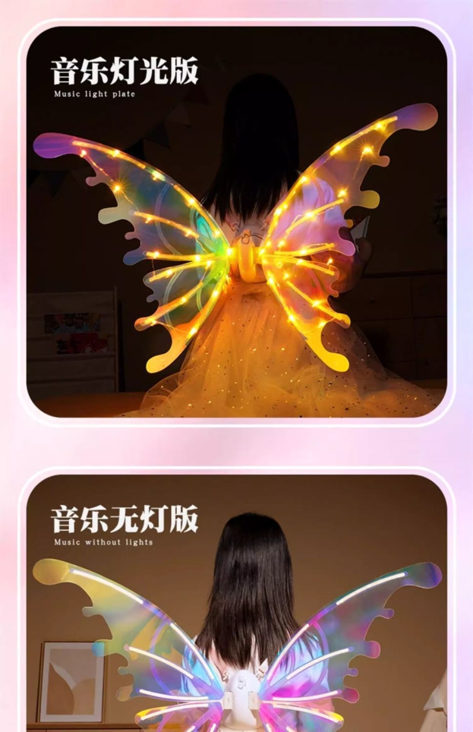 电动精灵翅膀儿童背饰天使羽翼发光会动的玩具小女孩礼物抖音同款