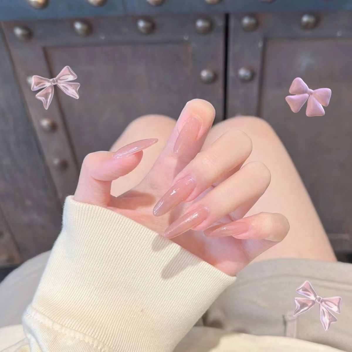纯手工美甲纯色穿戴甲裸色显白纯欲可拆卸重复使用指甲贴孕妇可用
