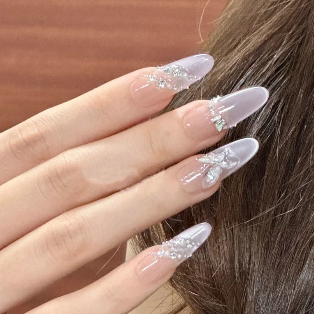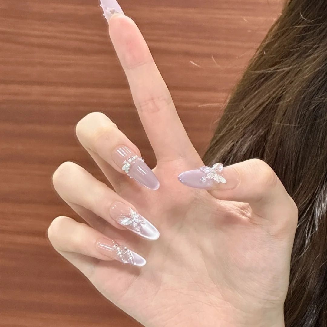 纯手工穿戴甲仙气淡紫猫眼美甲珍珠蝴蝶高级氛围感显白假指甲贴片