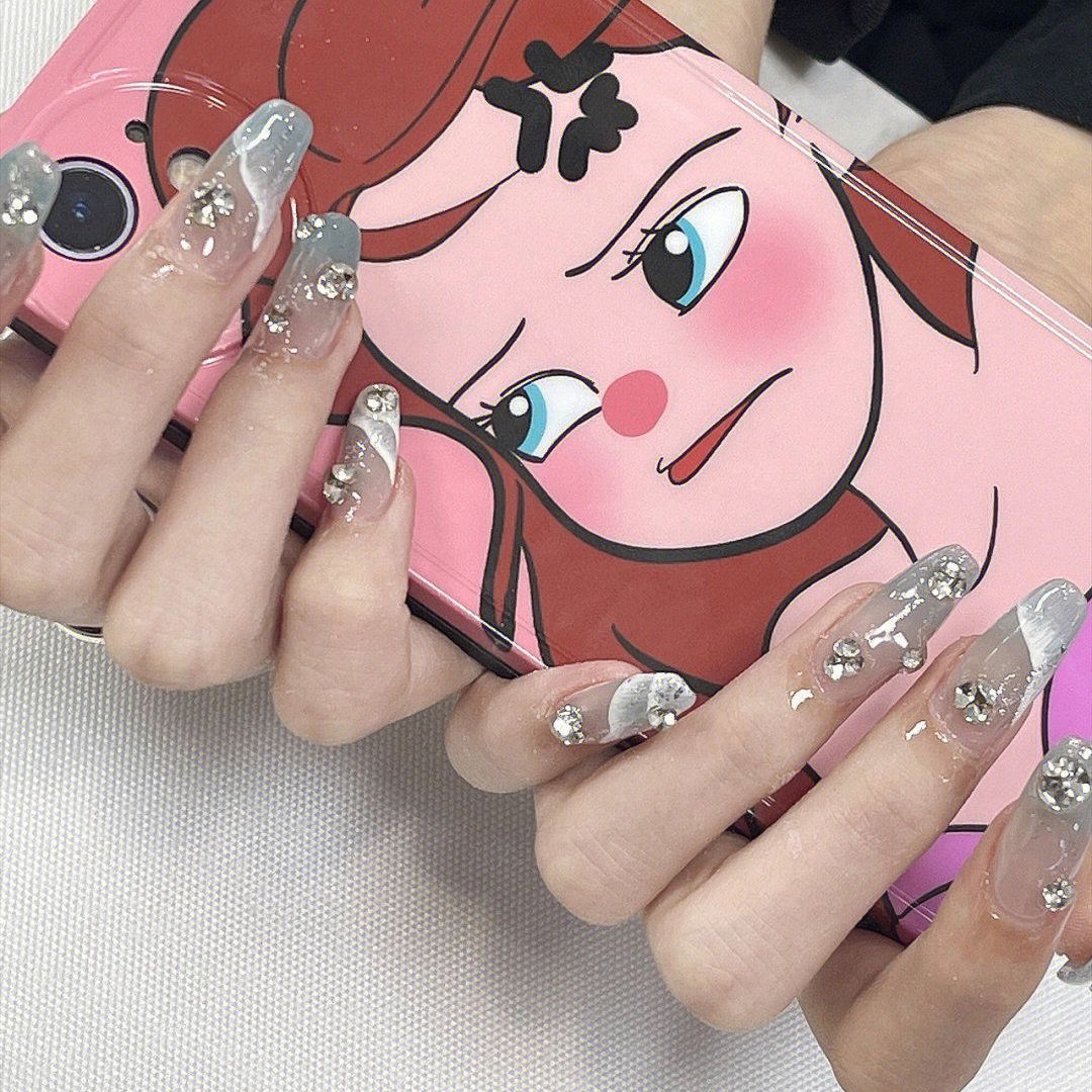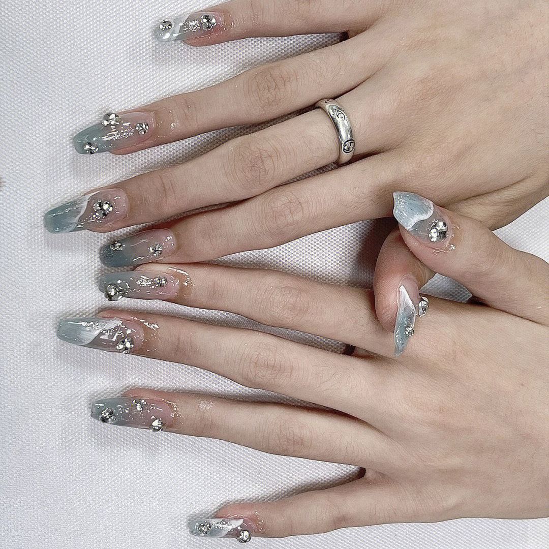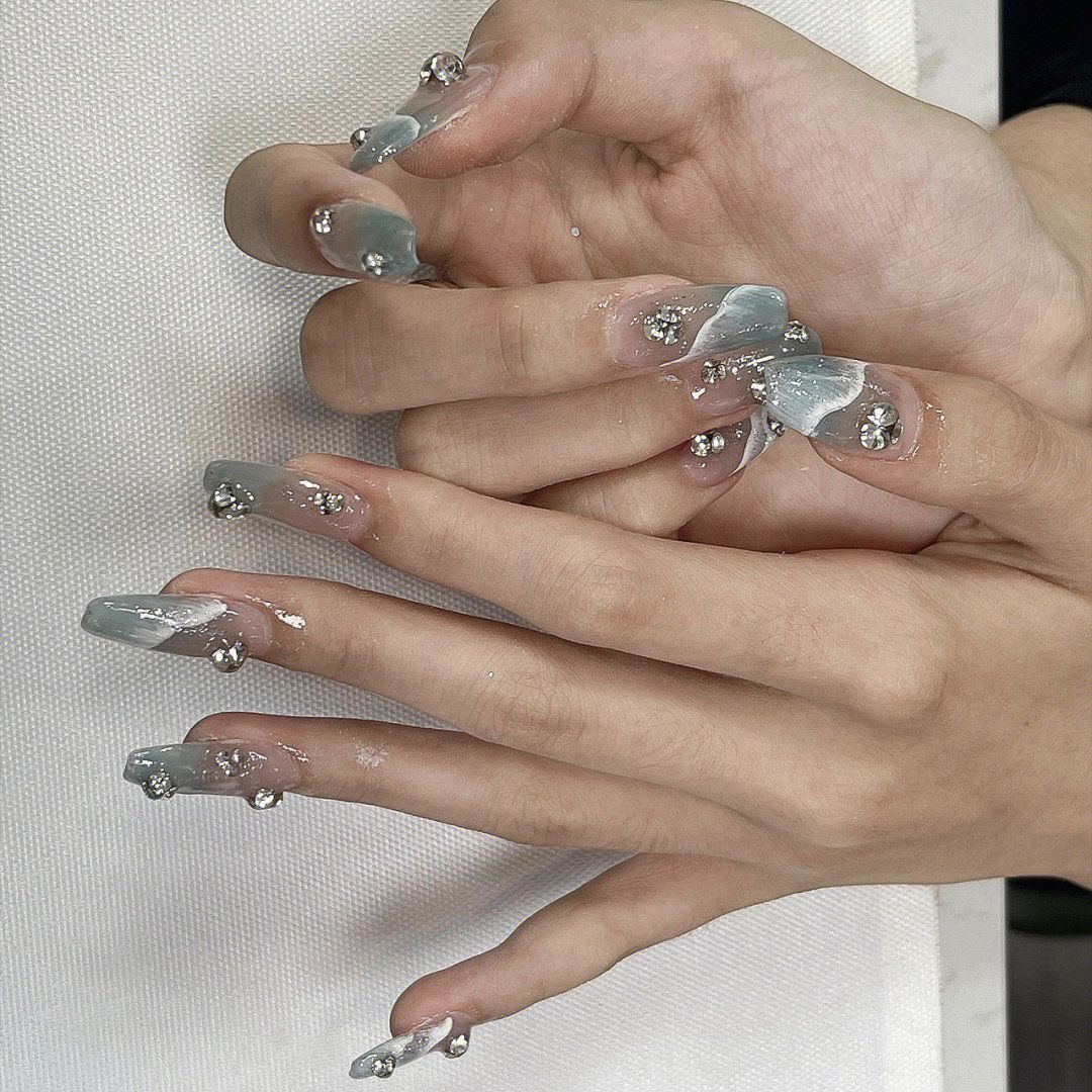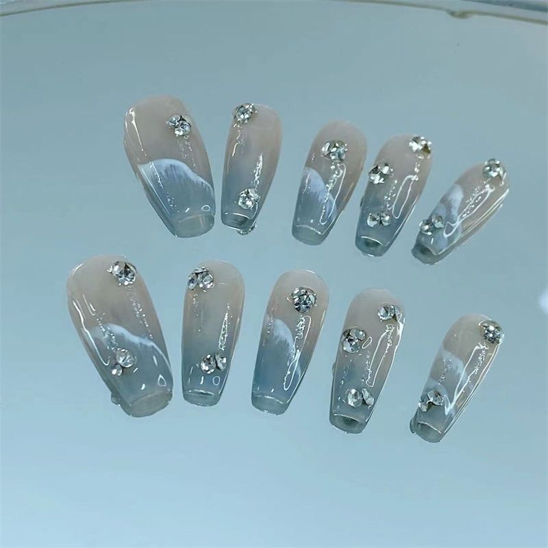 手工定制假指甲贴片成品蓝色渐变堆钻温柔显白美甲高级穿戴甲可拆