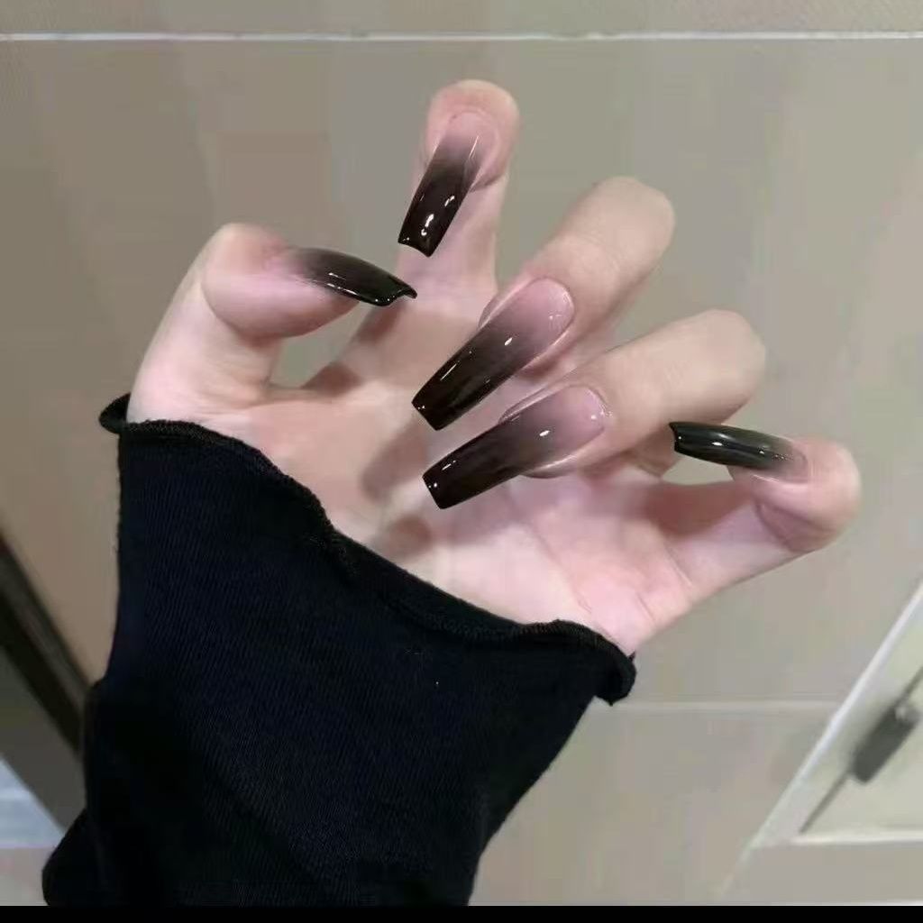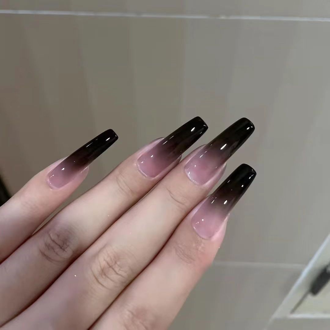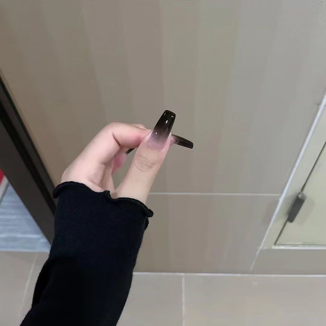 百搭黑色渐变美甲纯手工穿戴甲贴片成品美甲长t荧光甲显白美甲