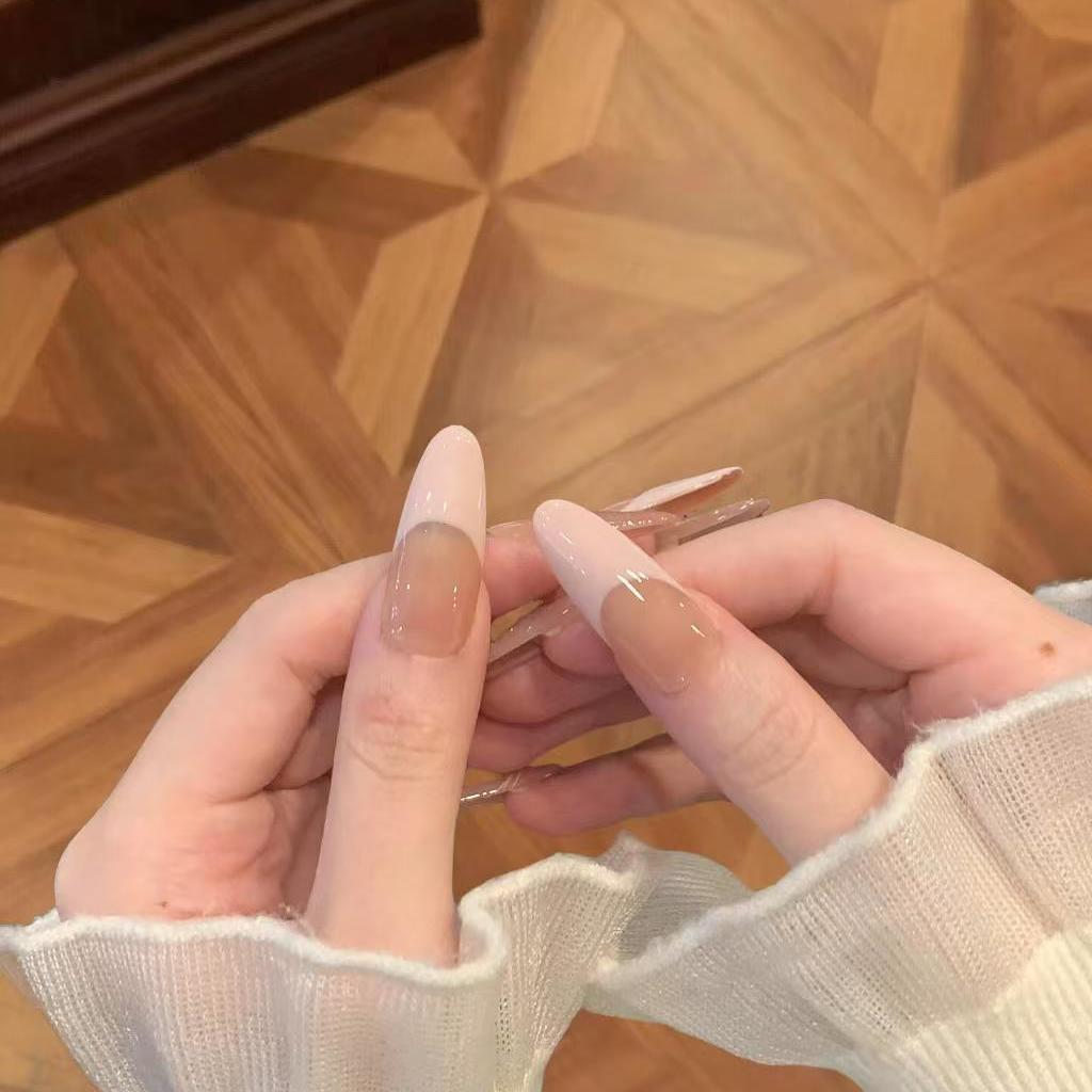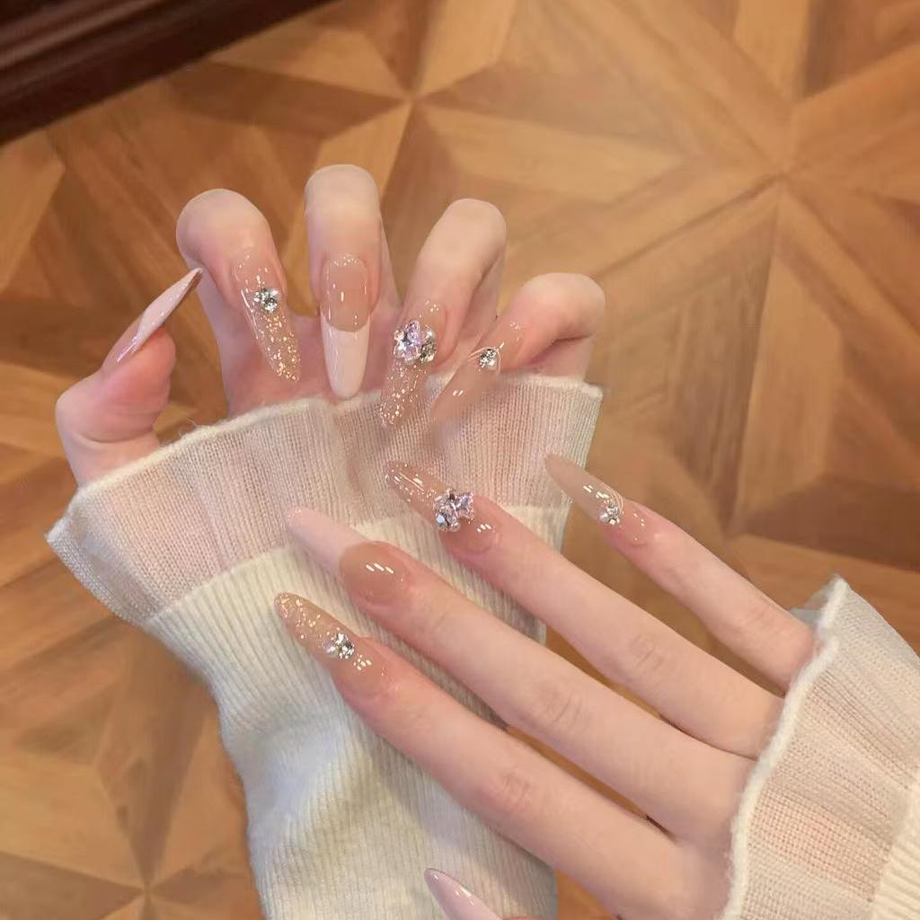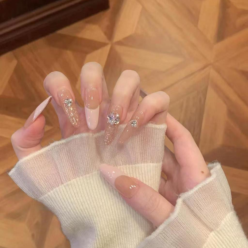 粉色法式温柔气质显白爆细闪粉钻可拆卸美甲高级半手工ins穿戴甲