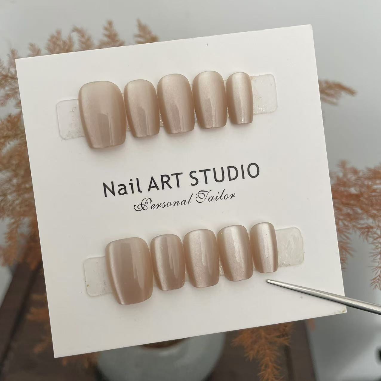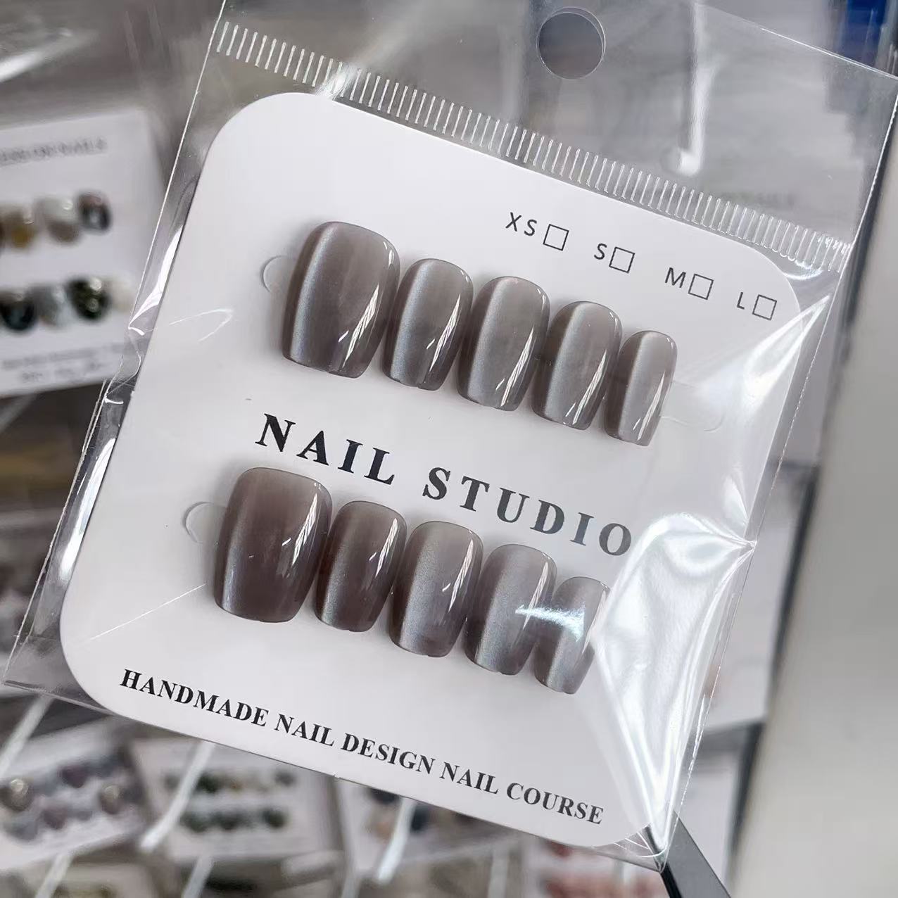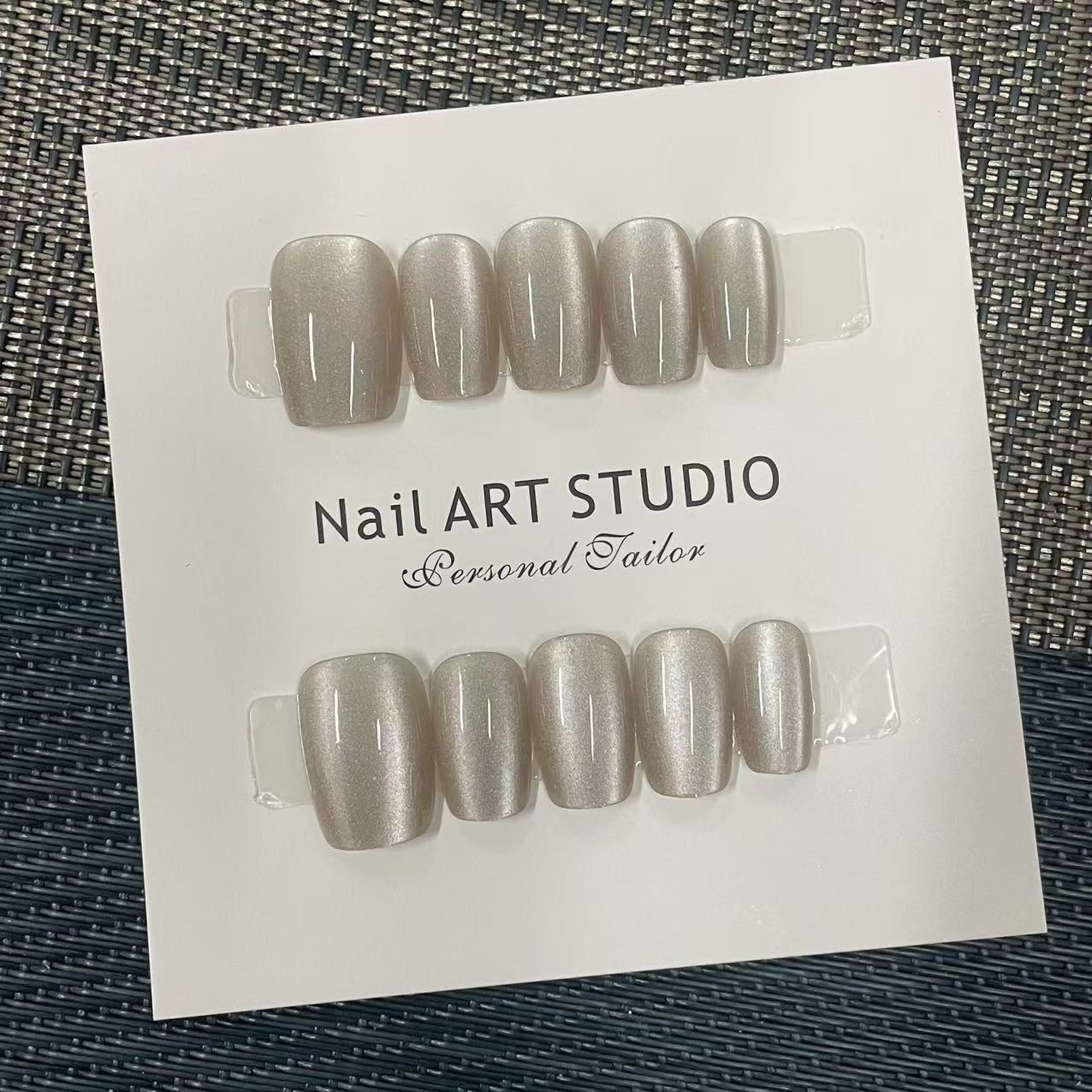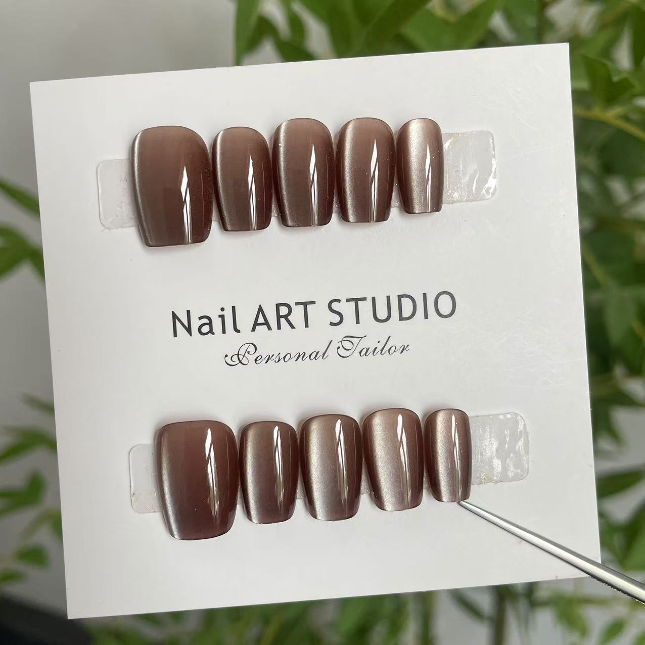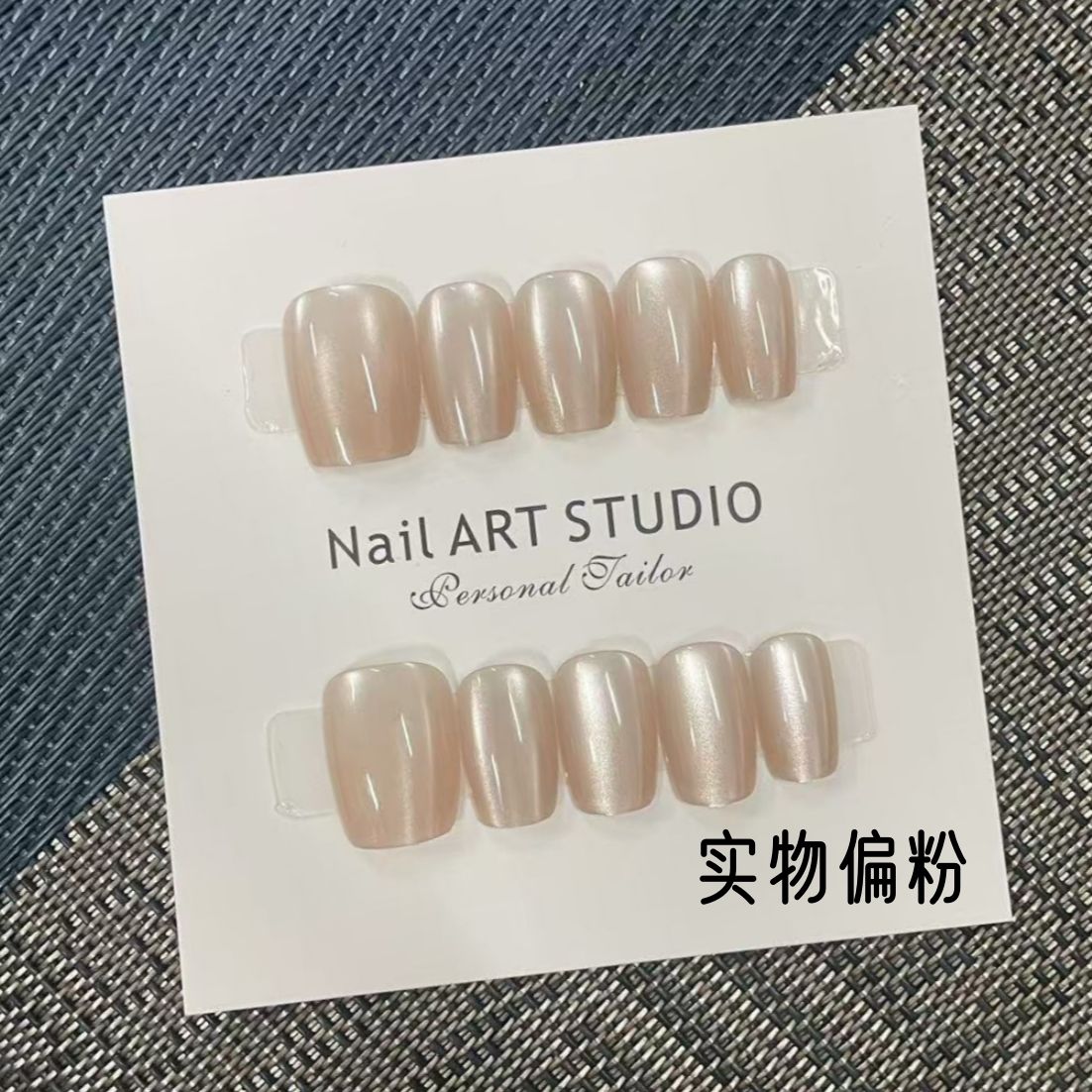 纯猫眼穿戴甲非纯手工可拆卸简约显白轻奢纯色超短梯甲型秋冬短款