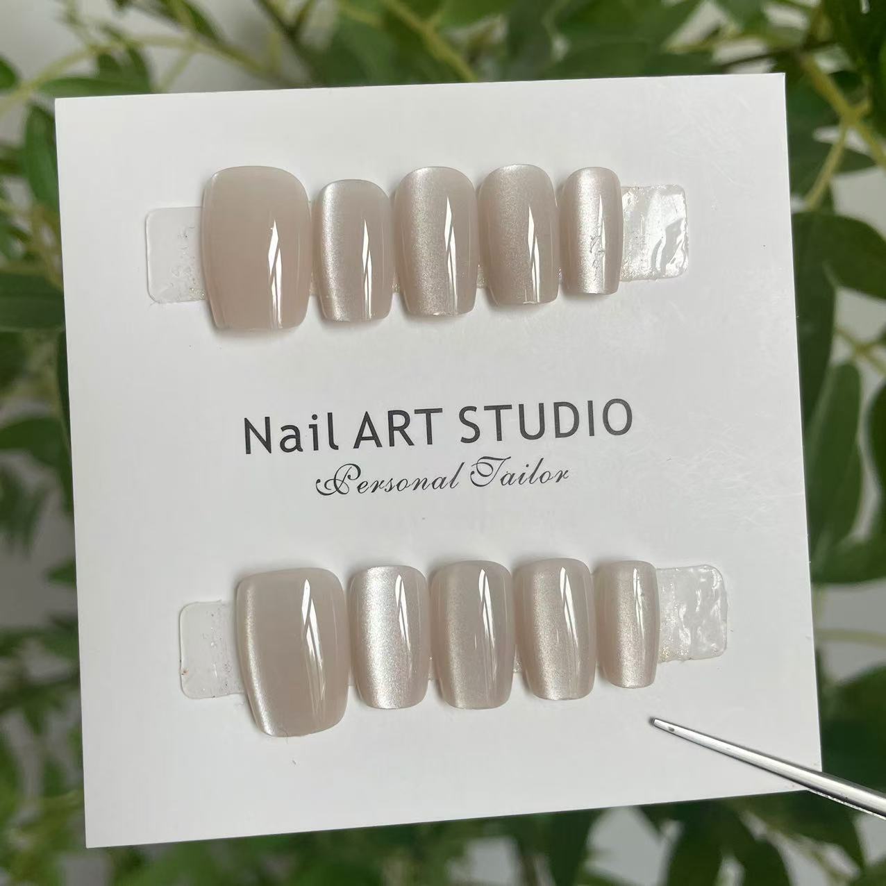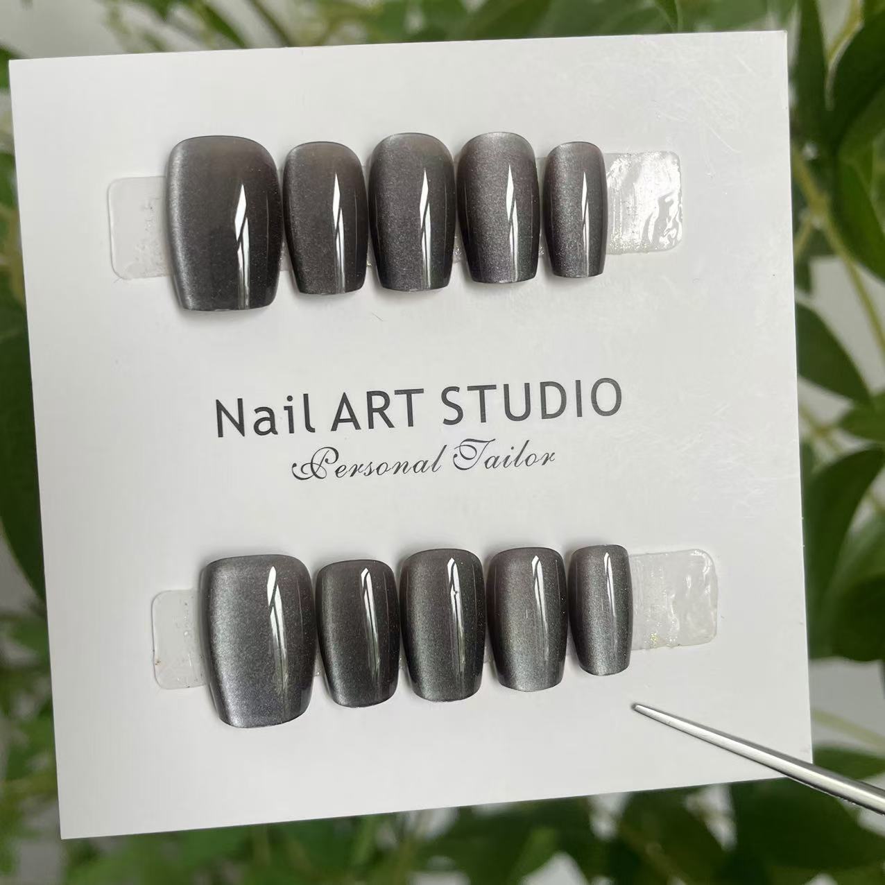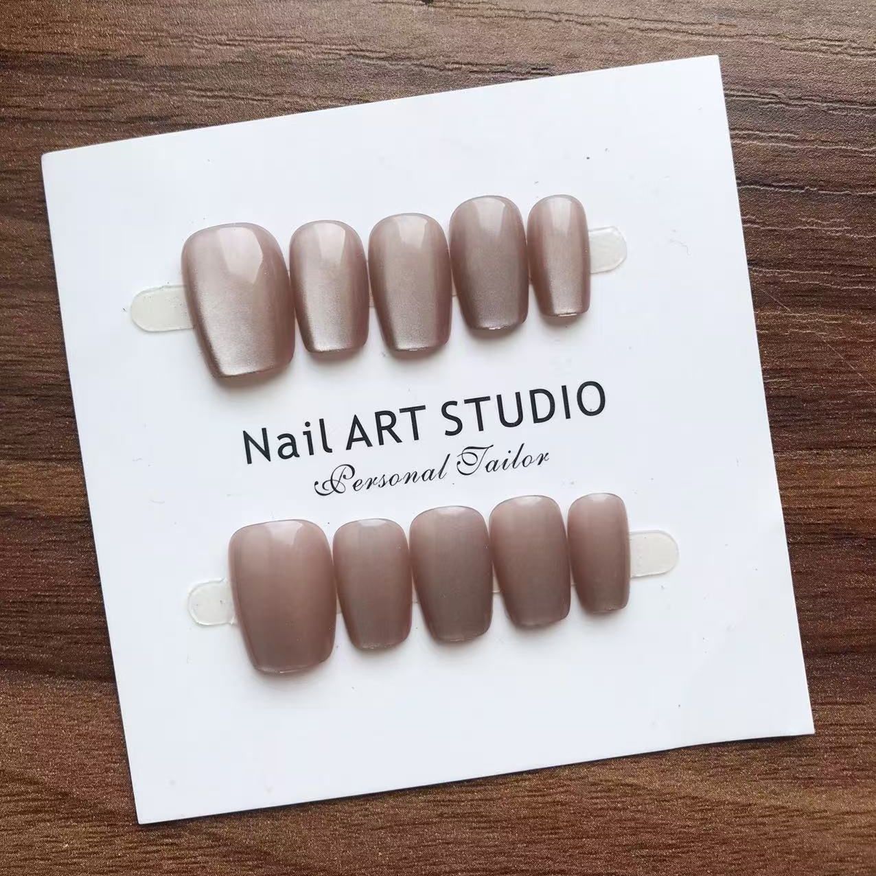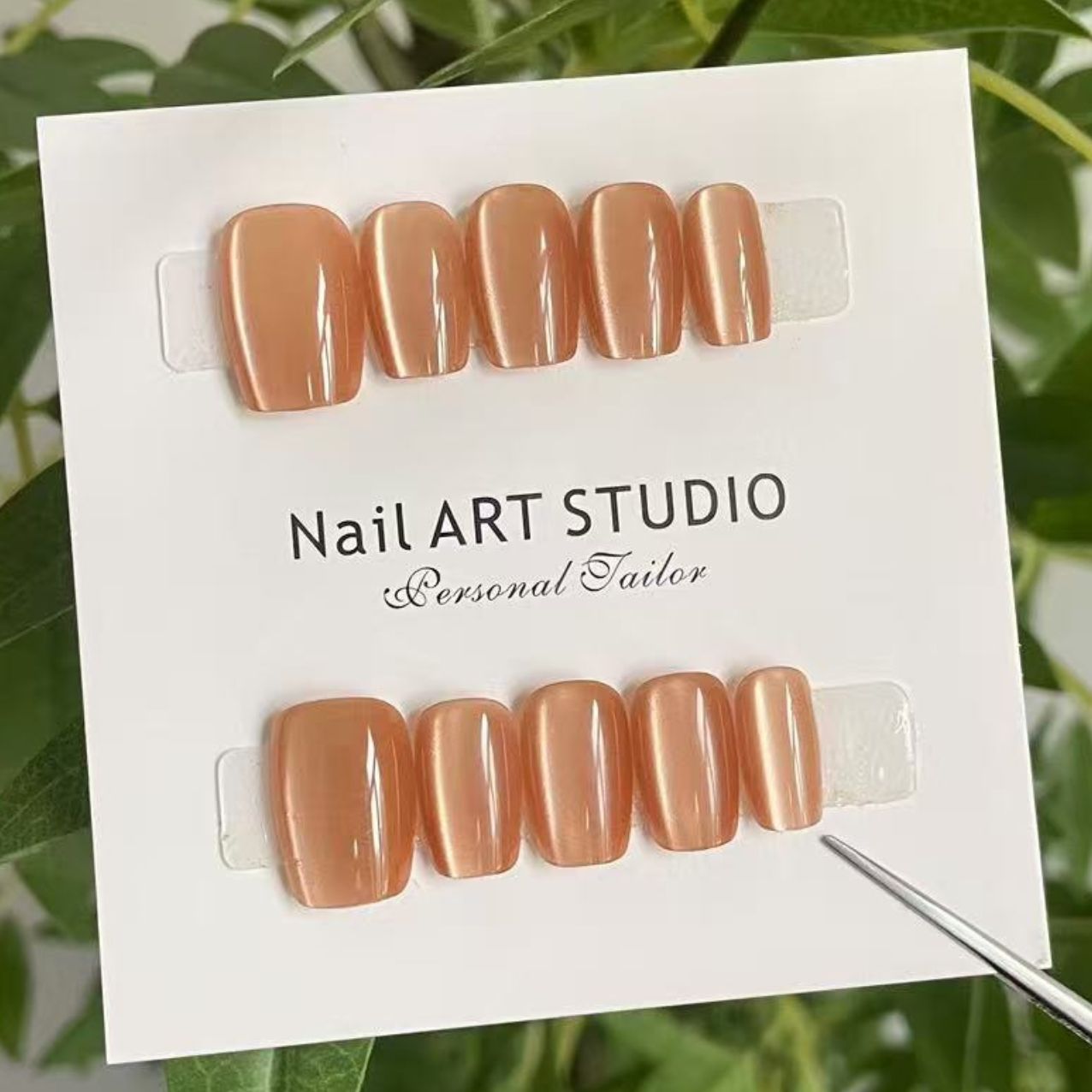 纯猫眼穿戴甲非纯手工可拆卸简约显白轻奢纯色超短梯甲型秋冬短款