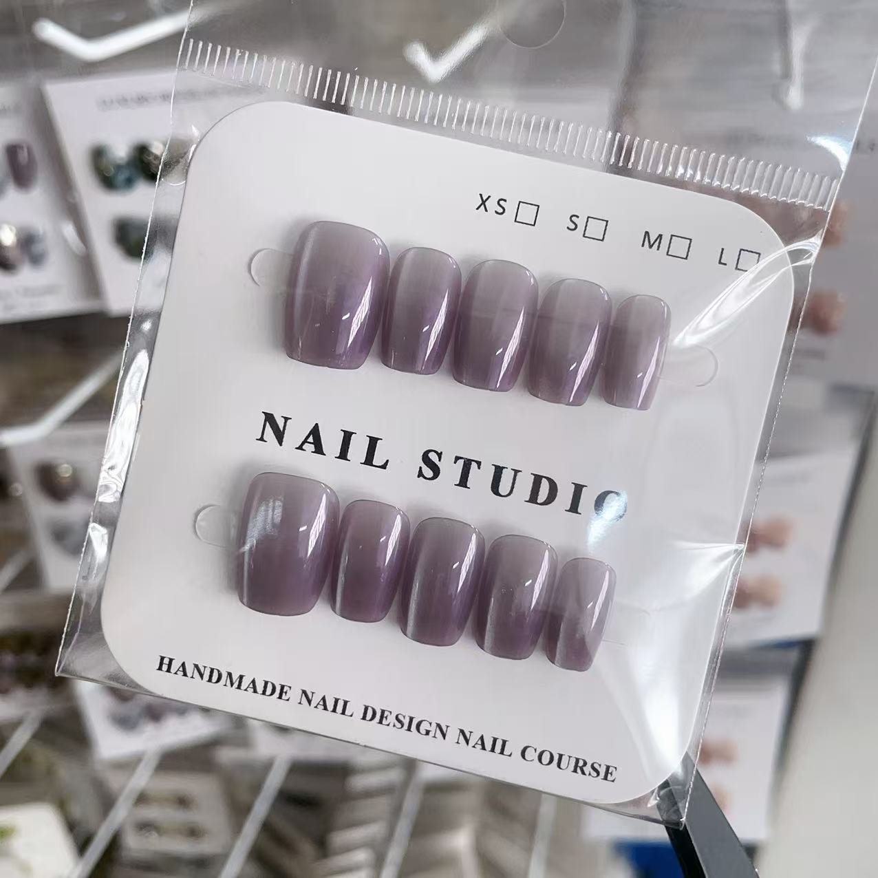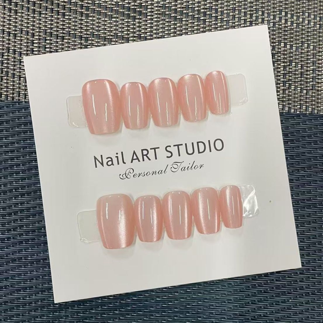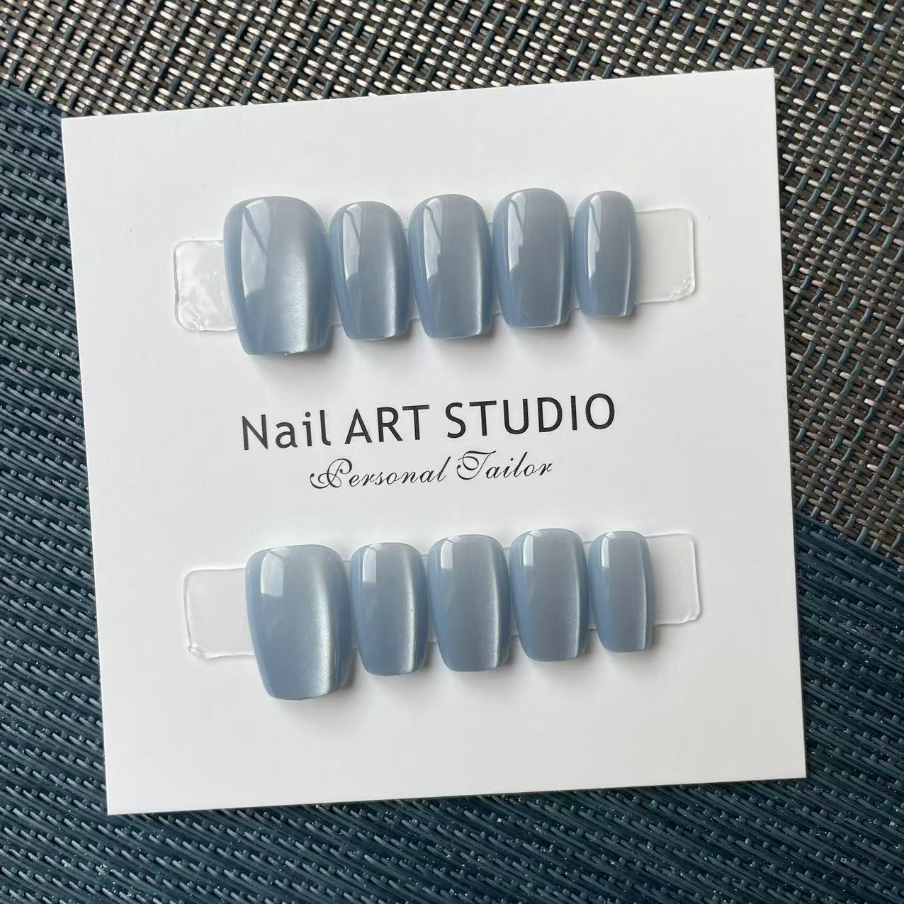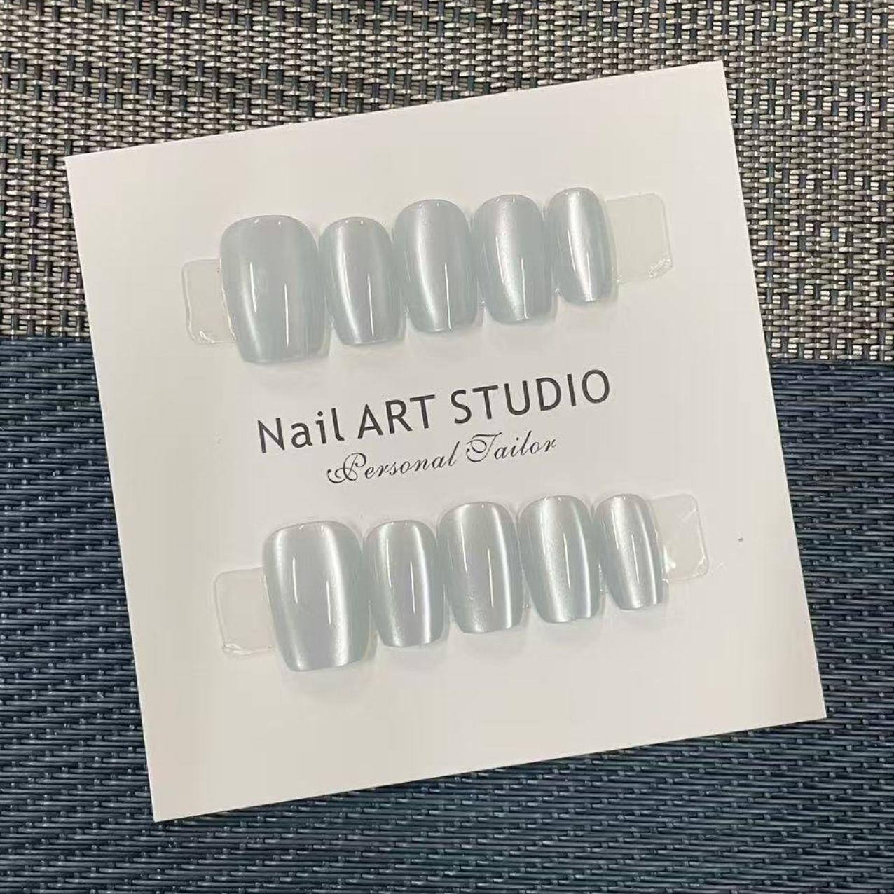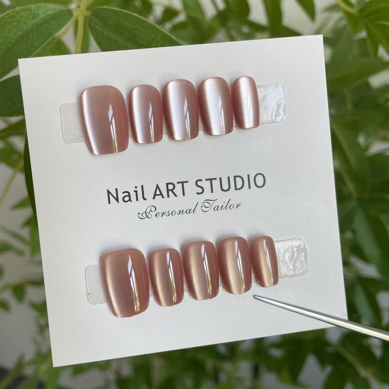 纯猫眼穿戴甲非纯手工可拆卸简约显白轻奢纯色超短梯甲型秋冬短款