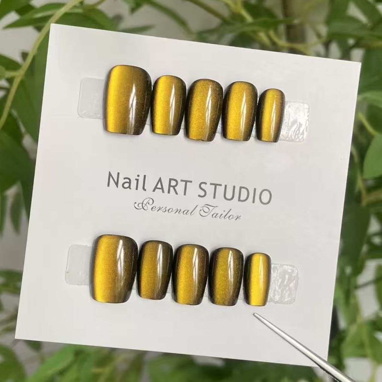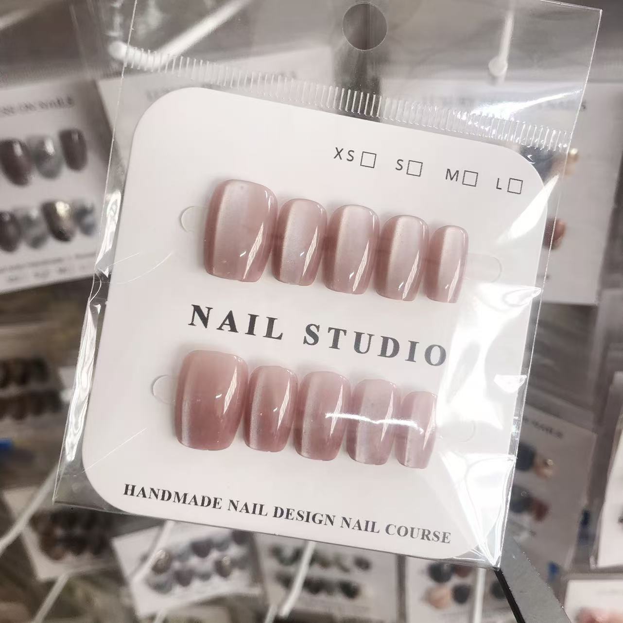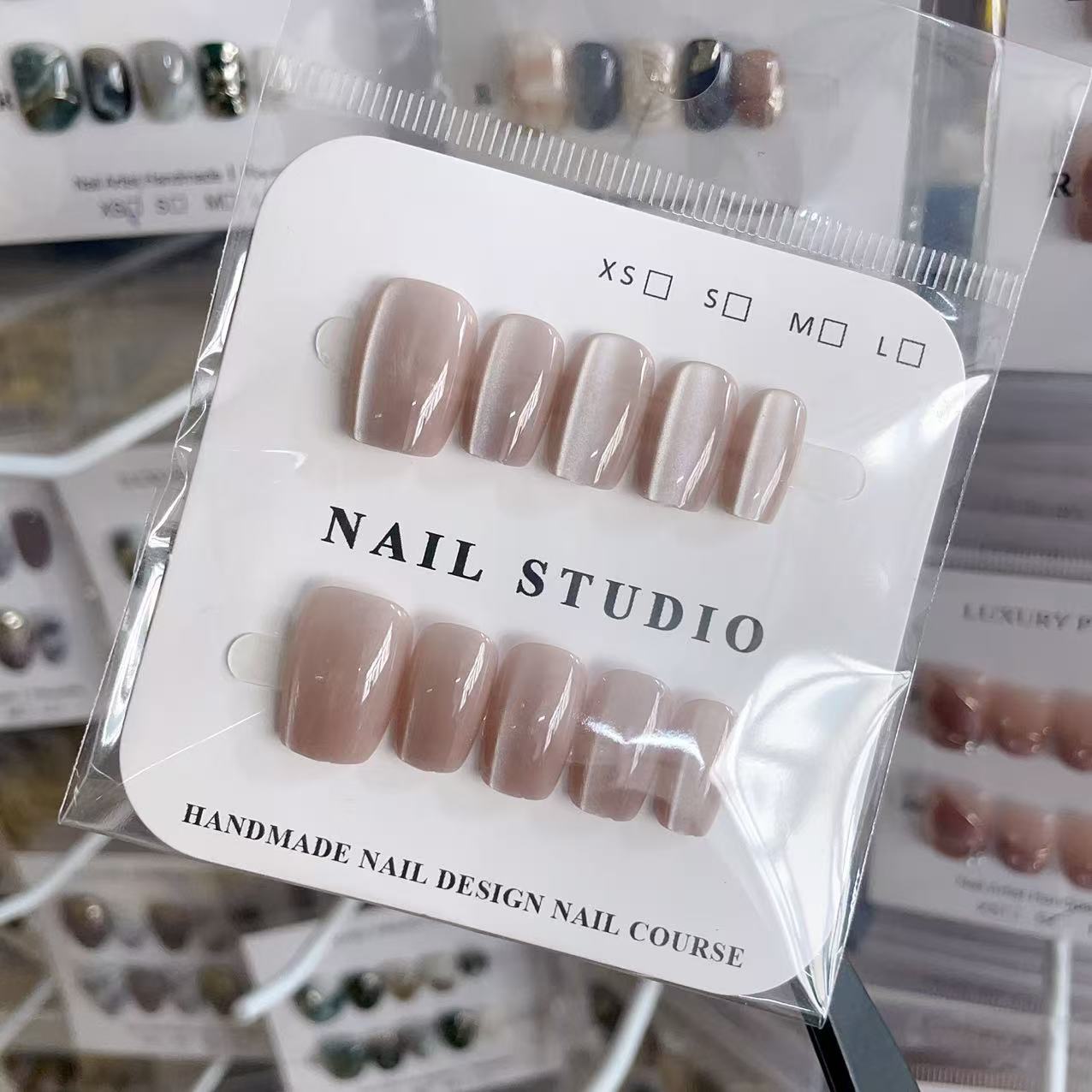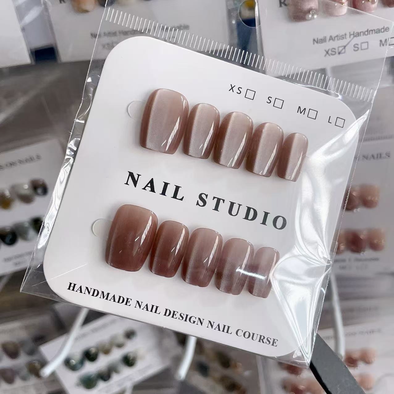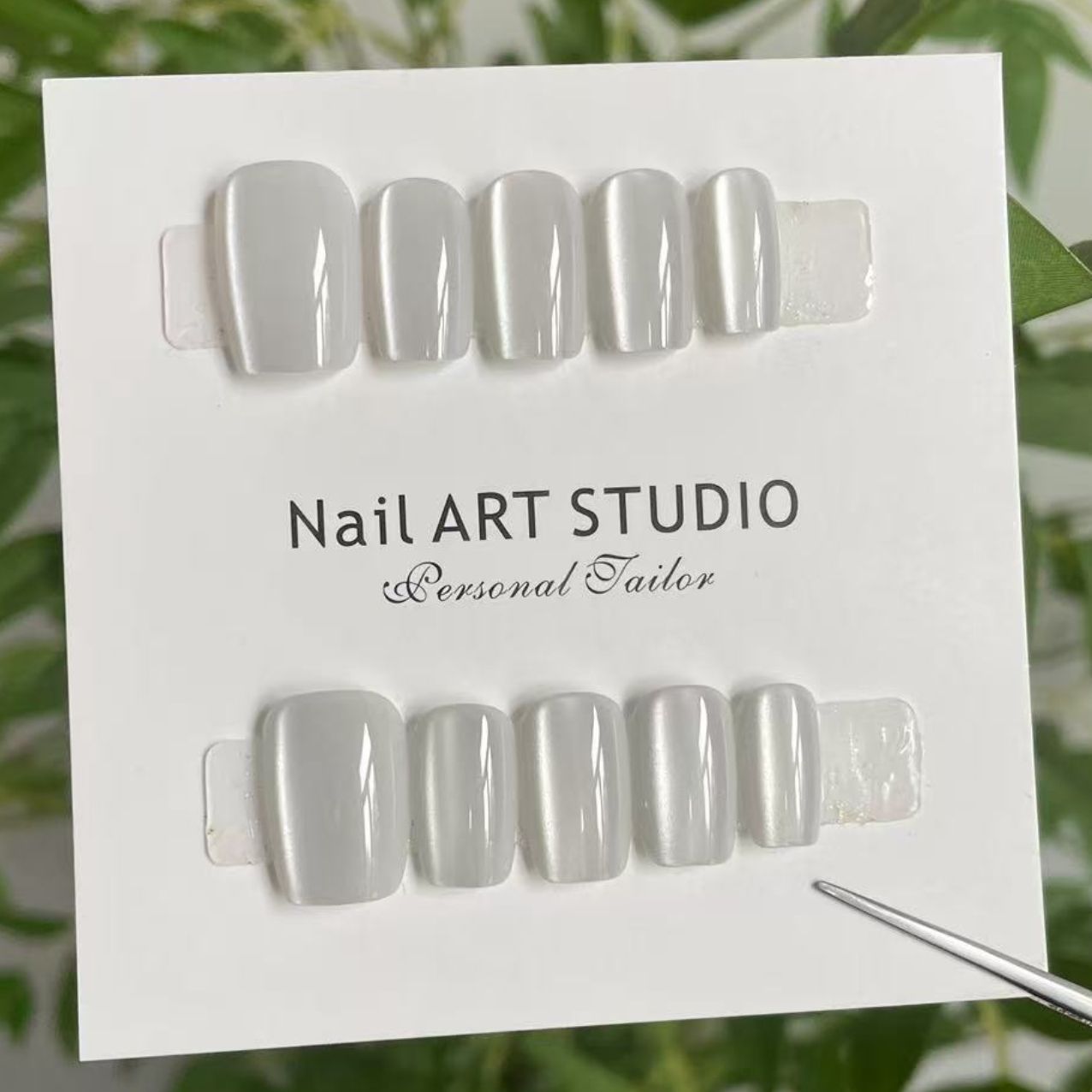 纯猫眼穿戴甲非纯手工可拆卸简约显白轻奢纯色超短梯甲型秋冬短款