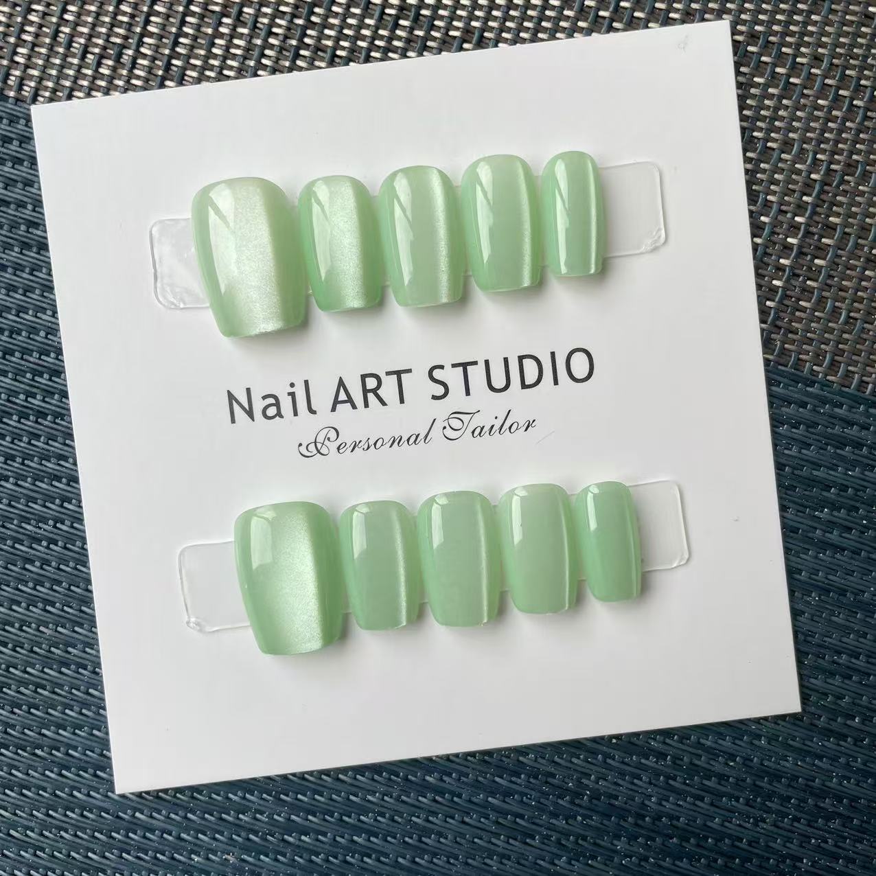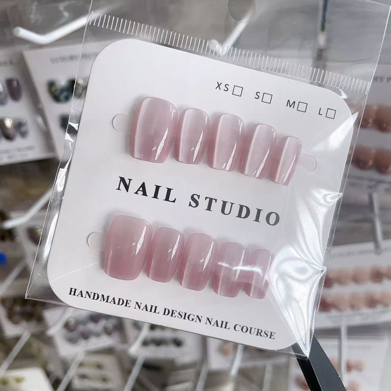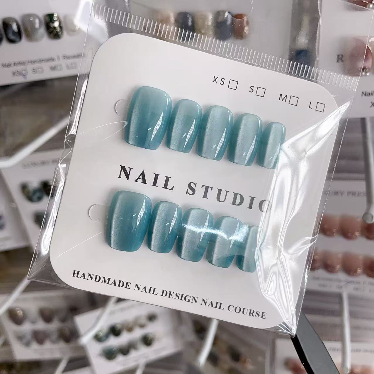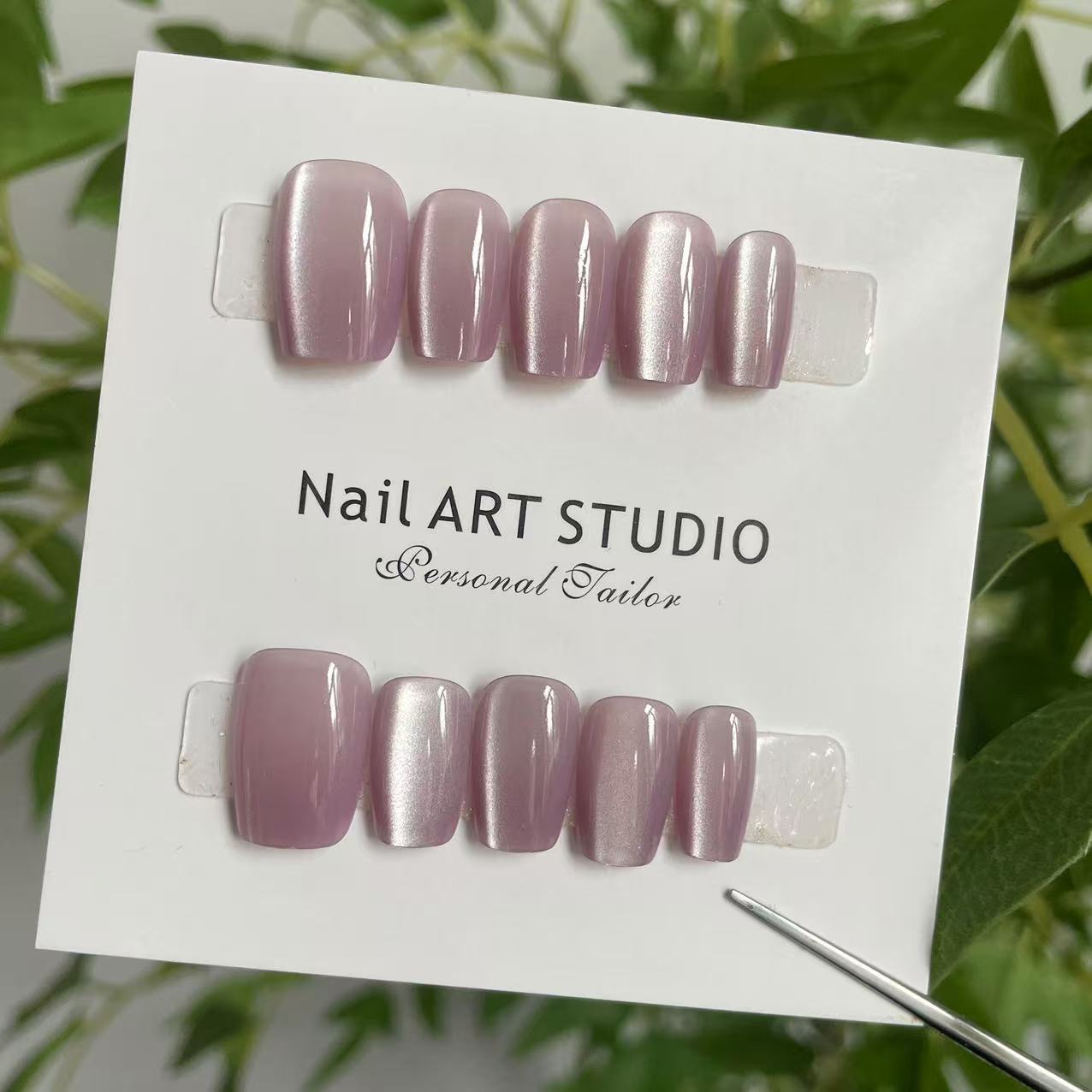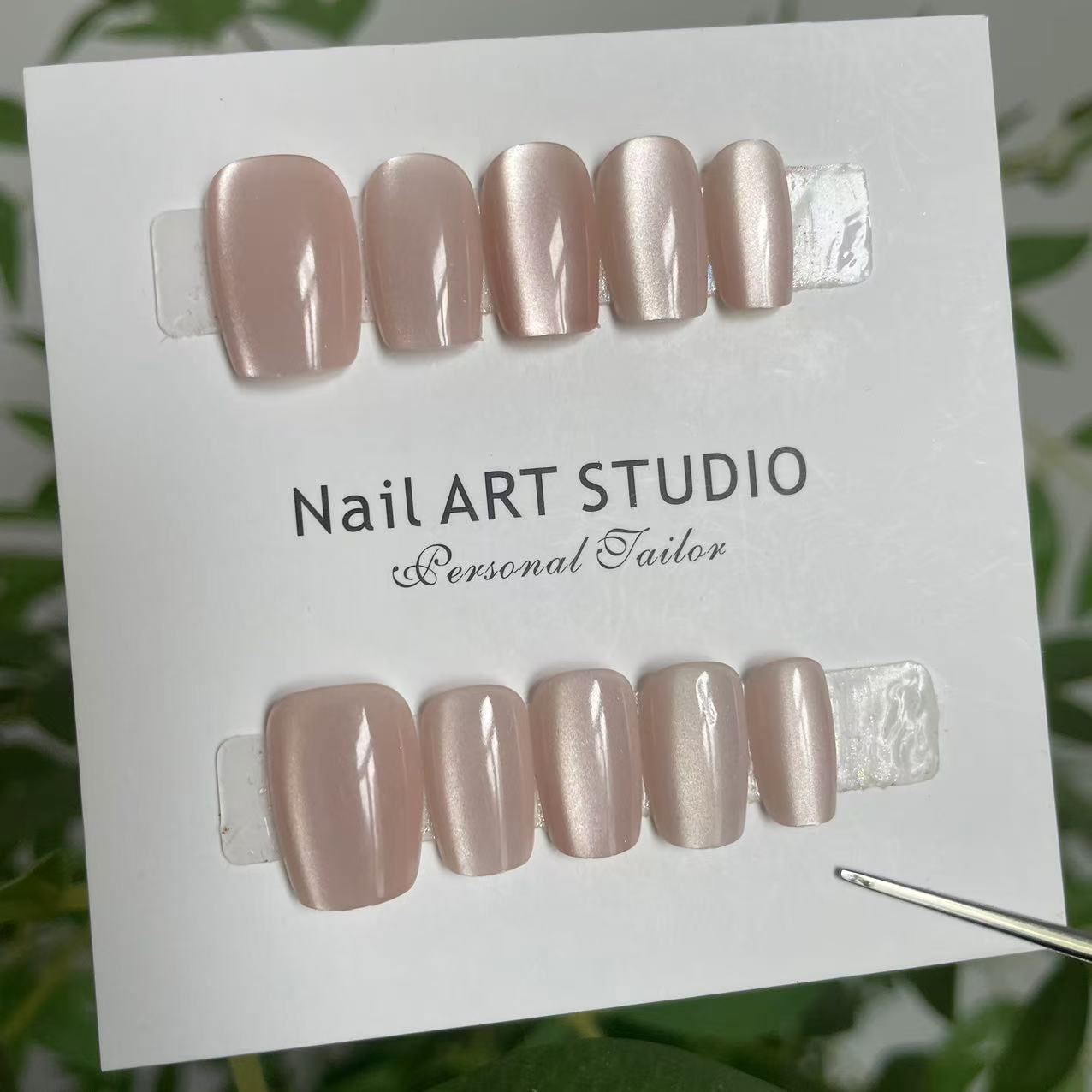 纯猫眼穿戴甲非纯手工可拆卸简约显白轻奢纯色超短梯甲型秋冬短款