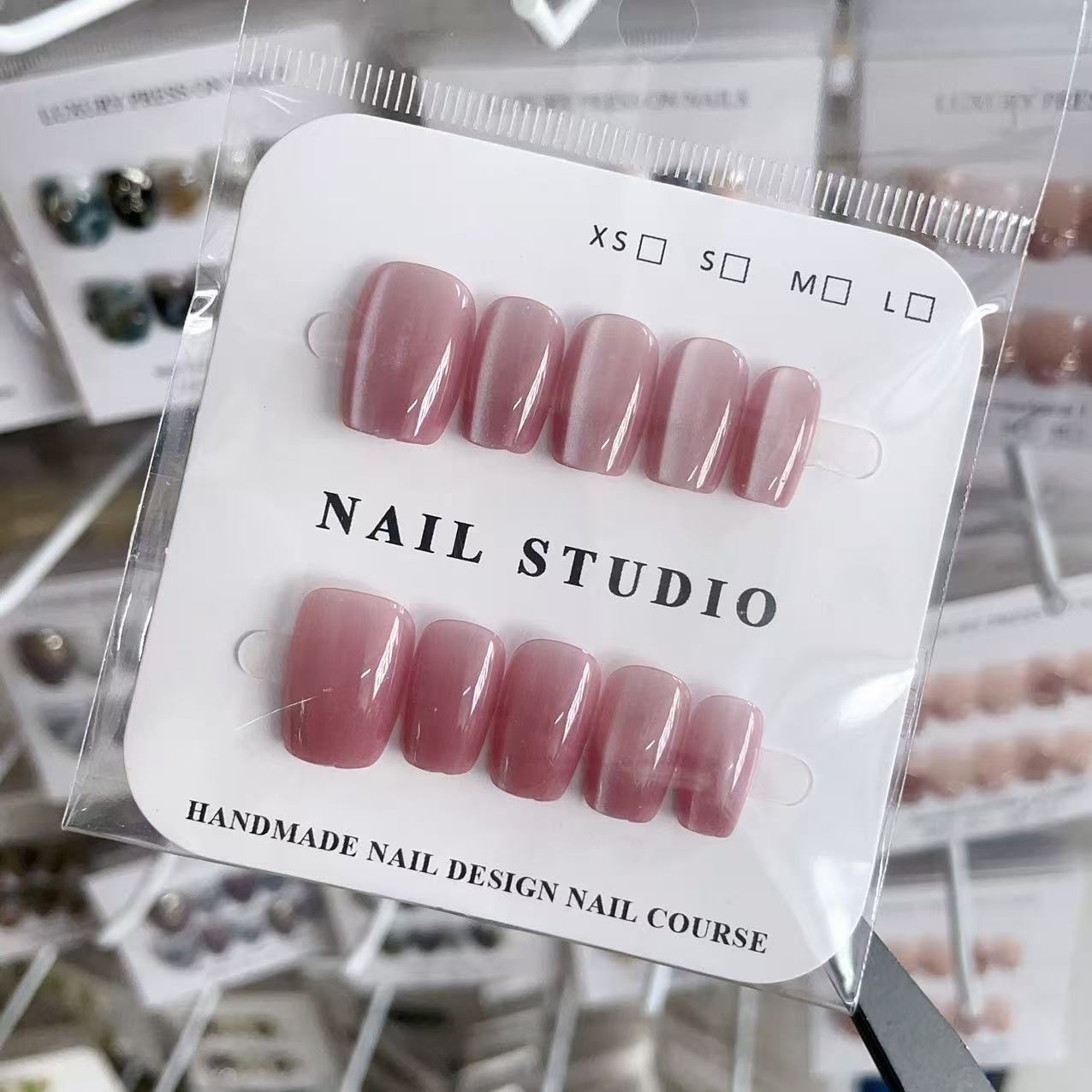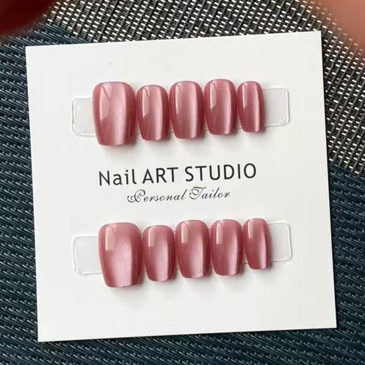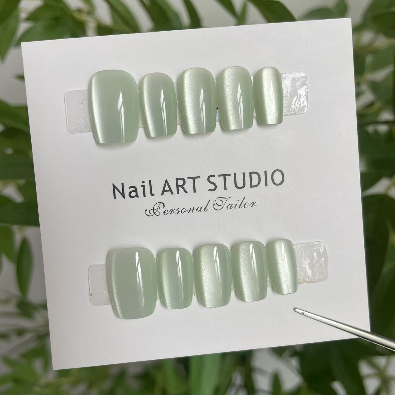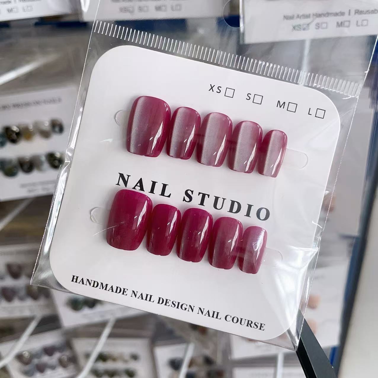 纯猫眼穿戴甲非纯手工可拆卸简约显白轻奢纯色超短梯甲型秋冬短款