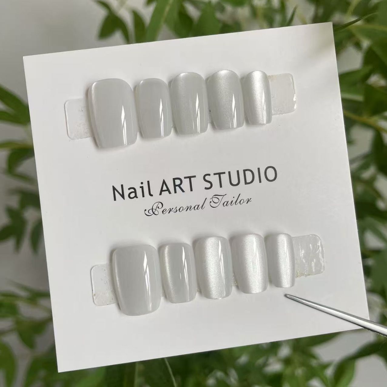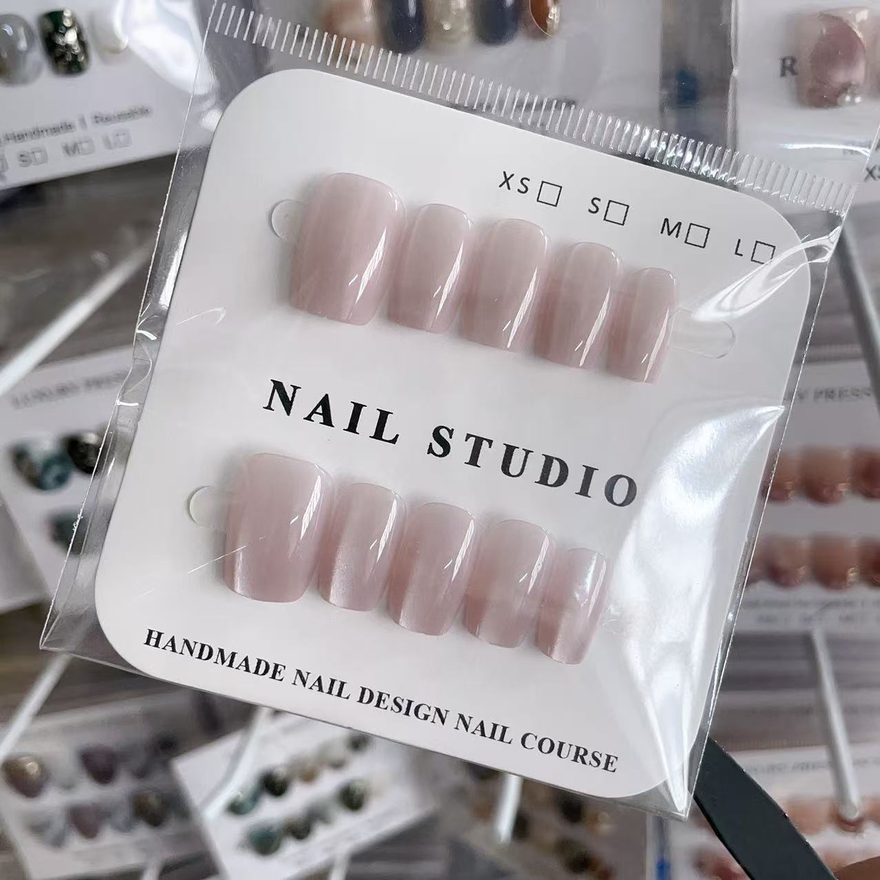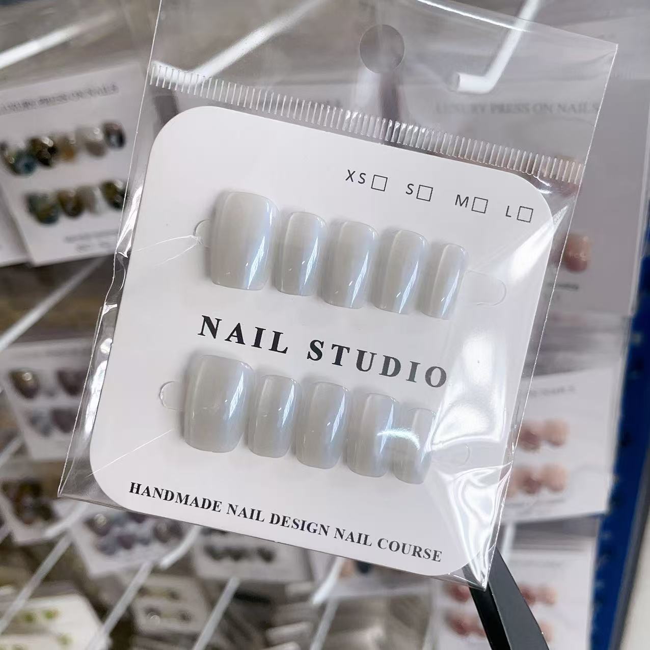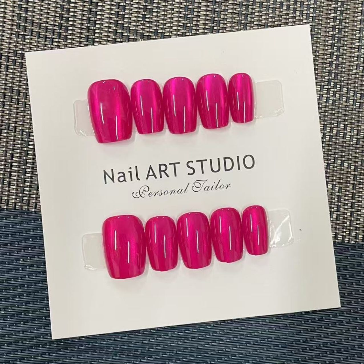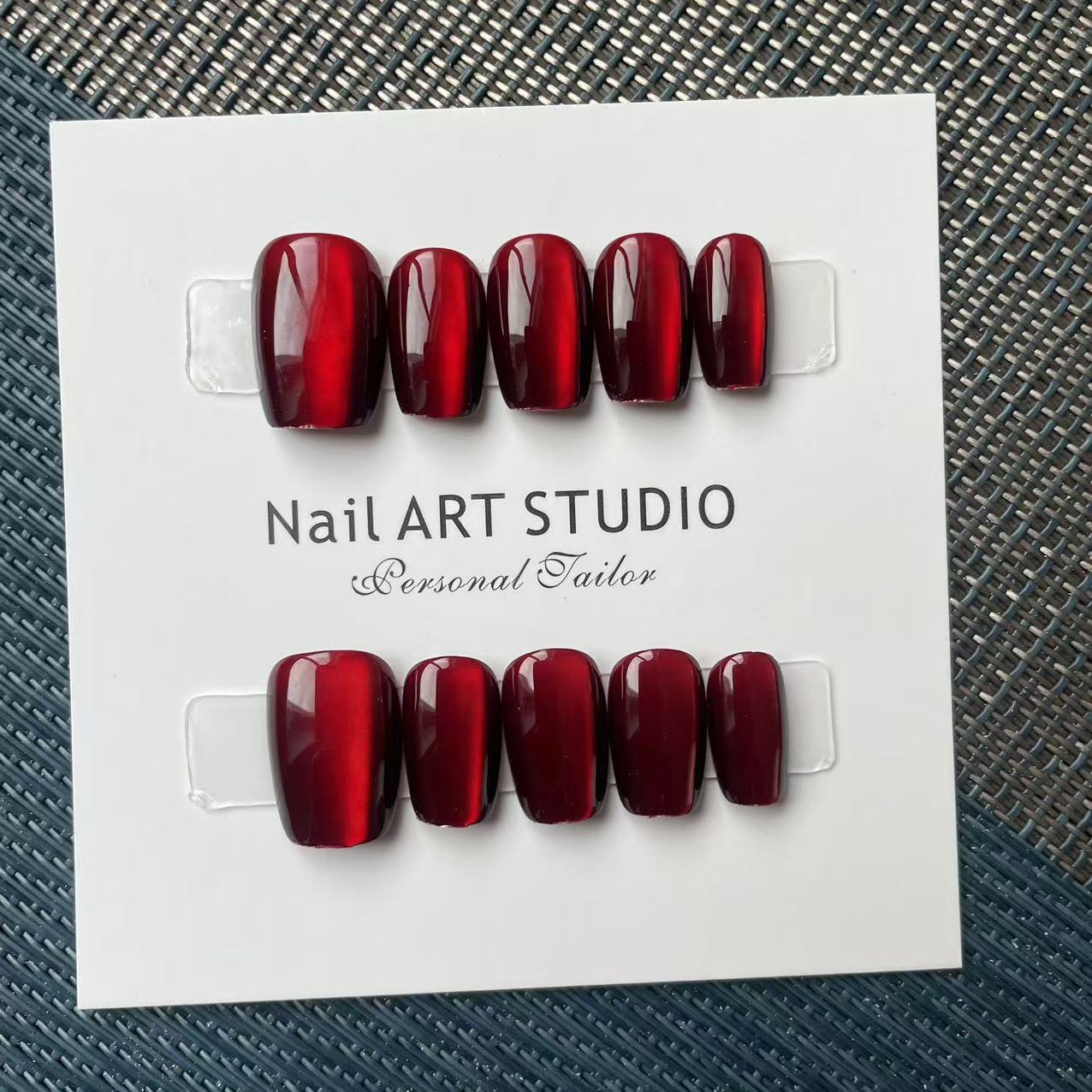 纯猫眼穿戴甲非纯手工可拆卸简约显白轻奢纯色超短梯甲型秋冬短款