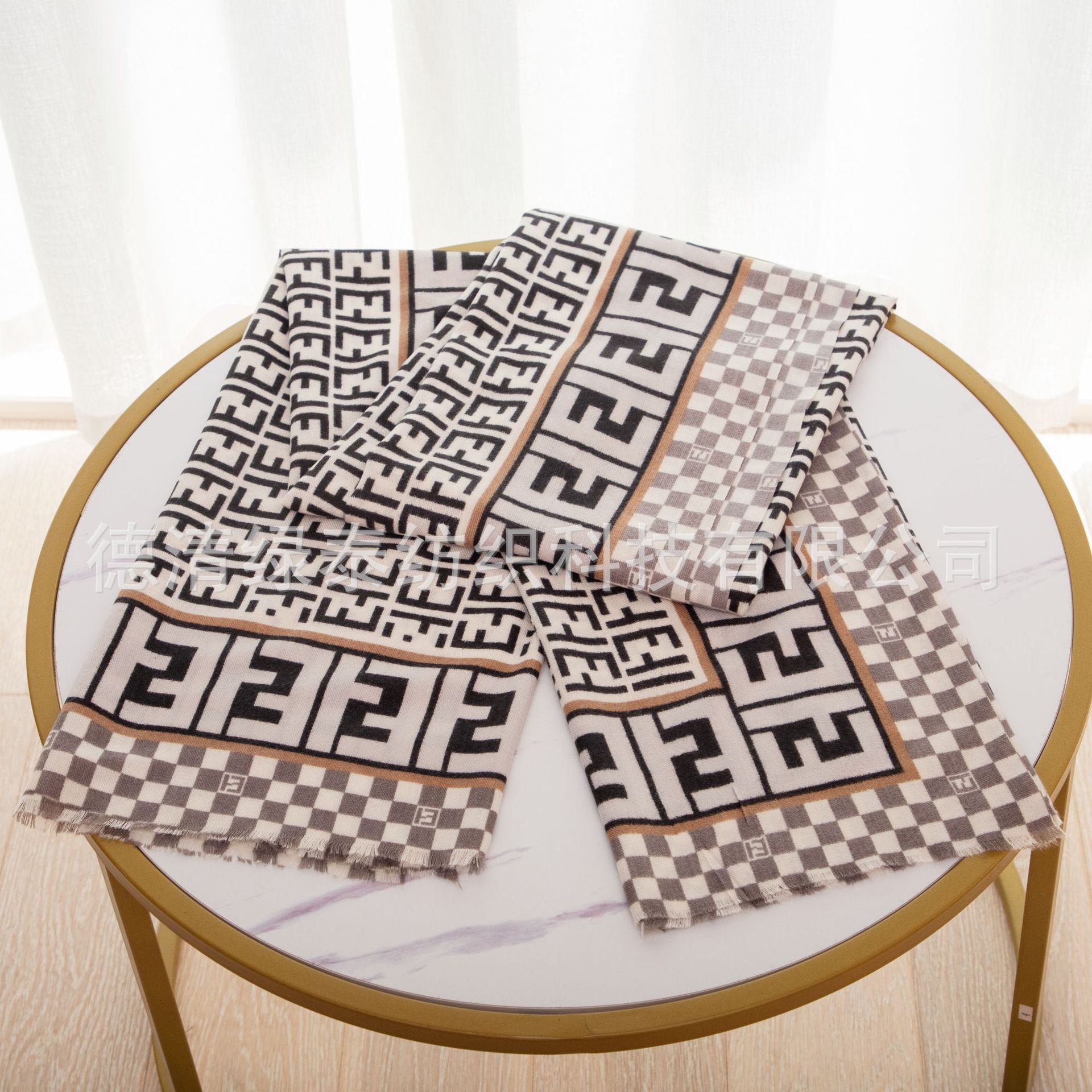 秋冬现货仿羊绒印花围巾F字母装饰平纹长方形围巾披肩网红款