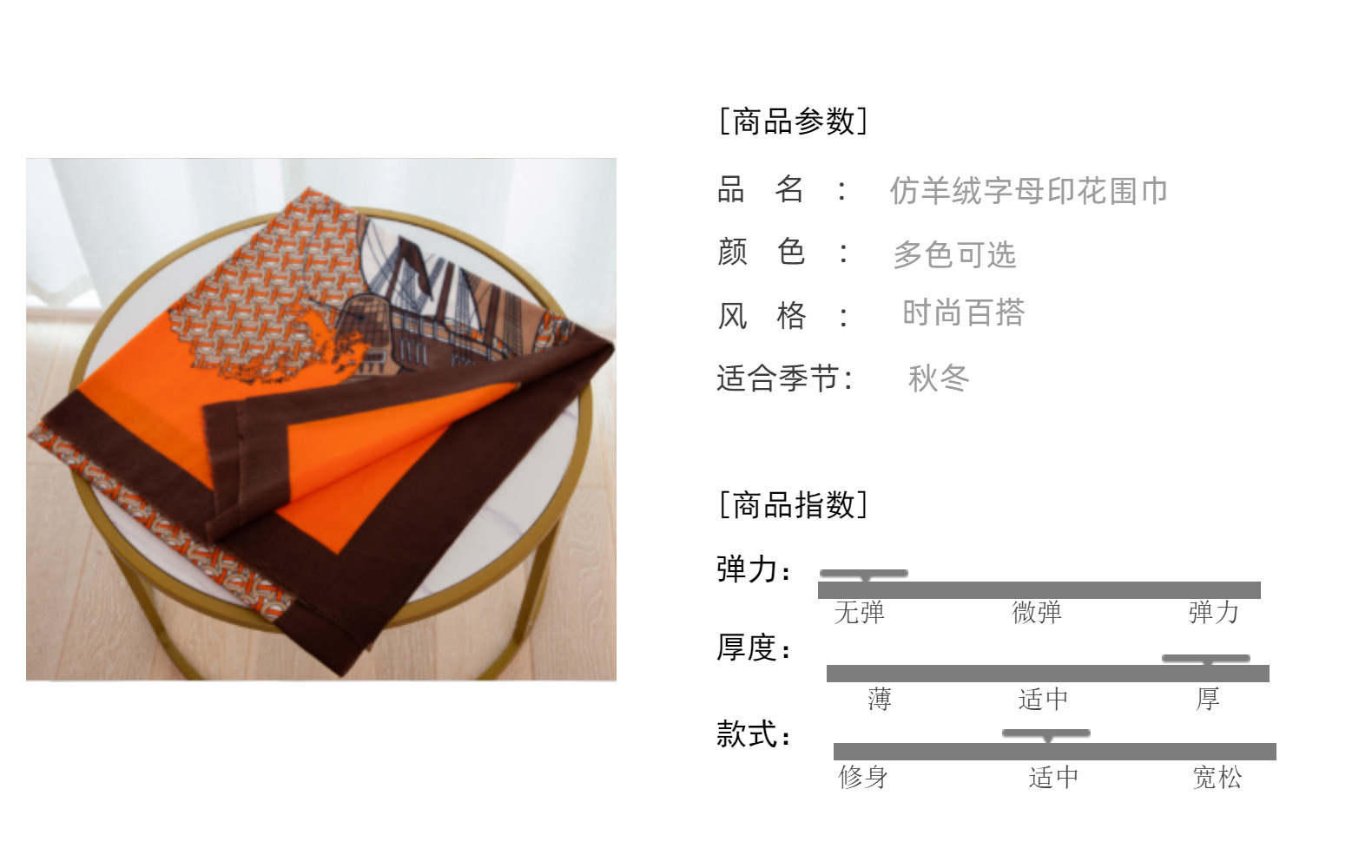 厂家直销秋冬仿羊绒印花围巾斜纹女士长巾B家字母围巾披肩礼品