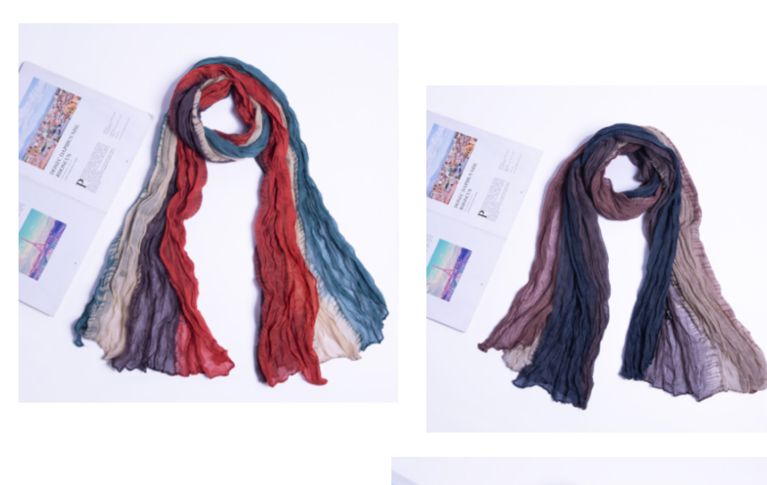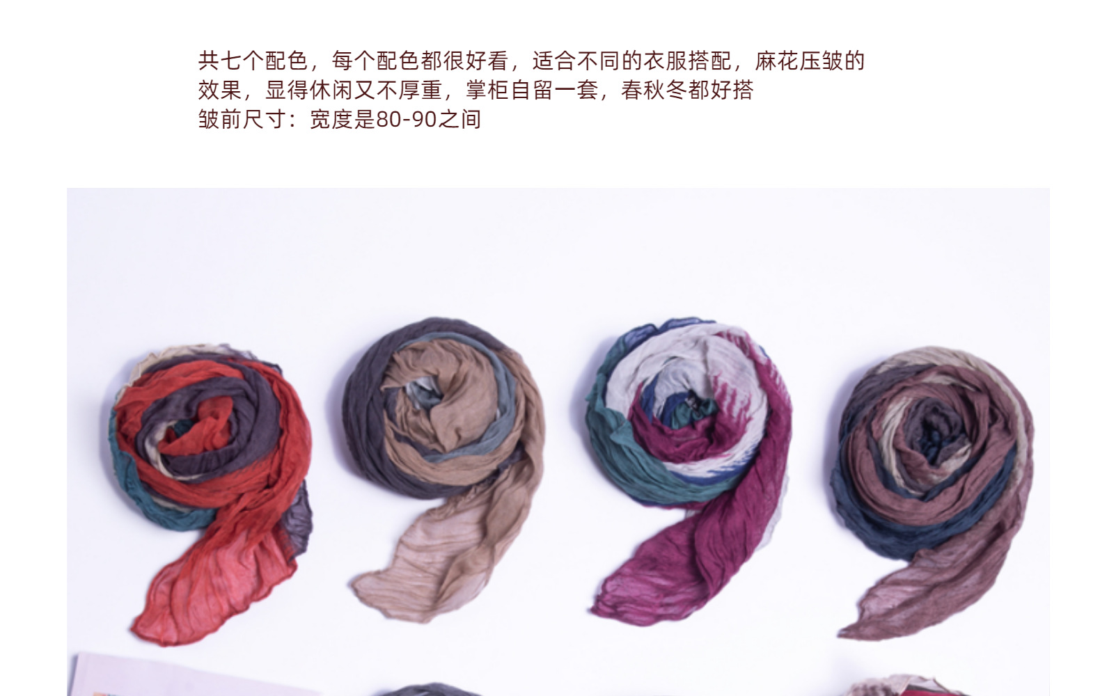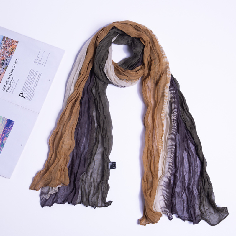 2022春款现货外贸巴厘纱印花围巾拼色撞色仿手绘扎染麻花压皱围巾